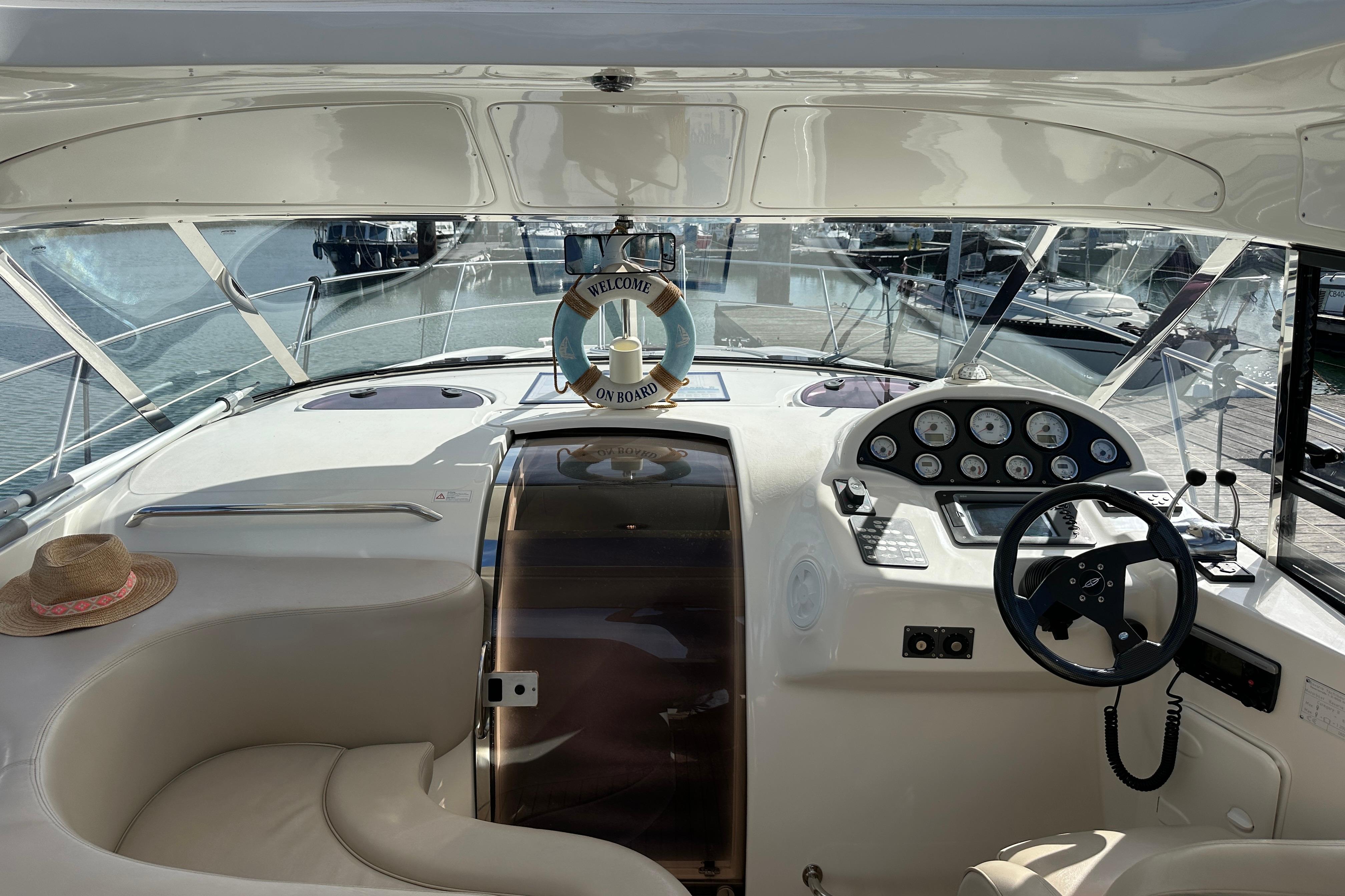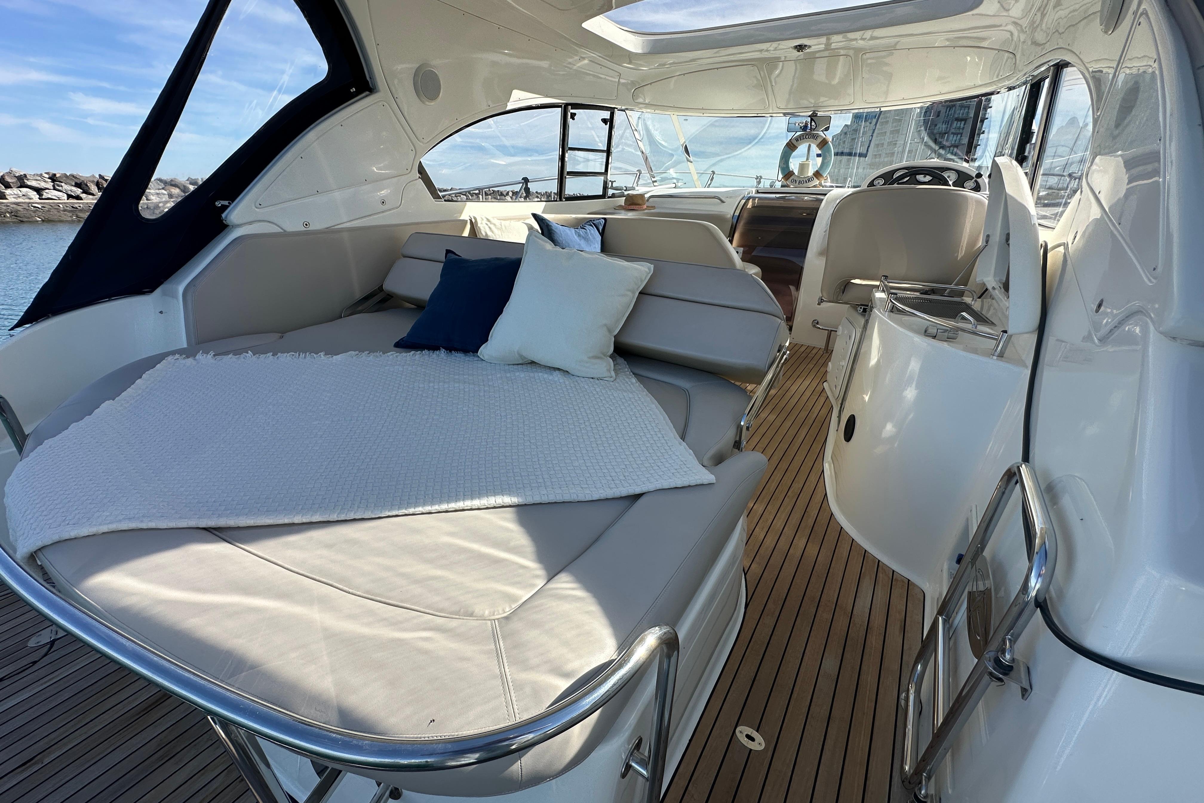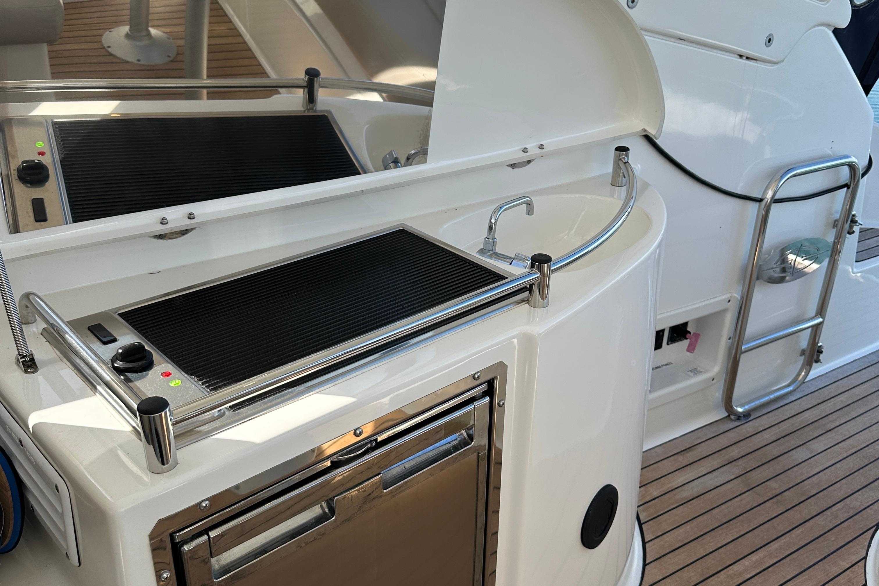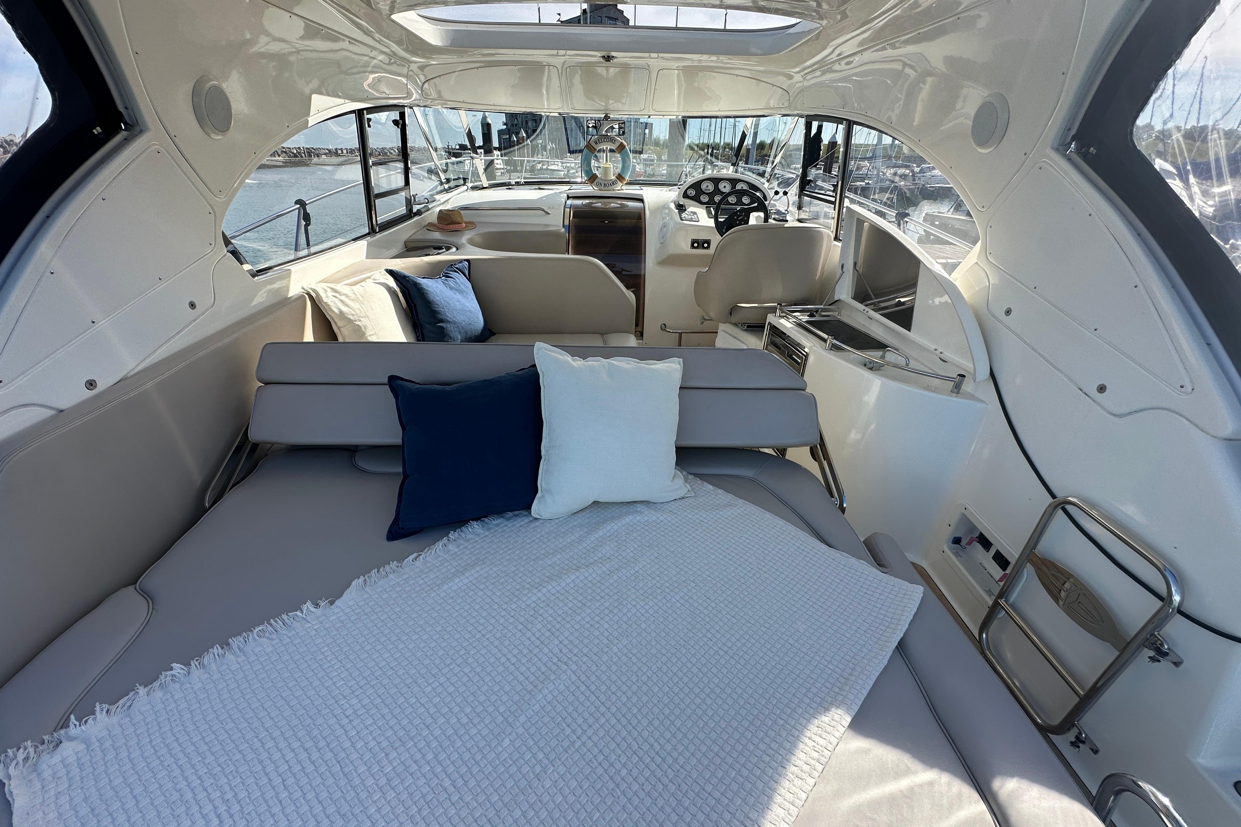 This yacht is in exceptional condition. Recent upgrades include a new canopy, freshly resprayed blue hull band, a new stern thruster, and more.