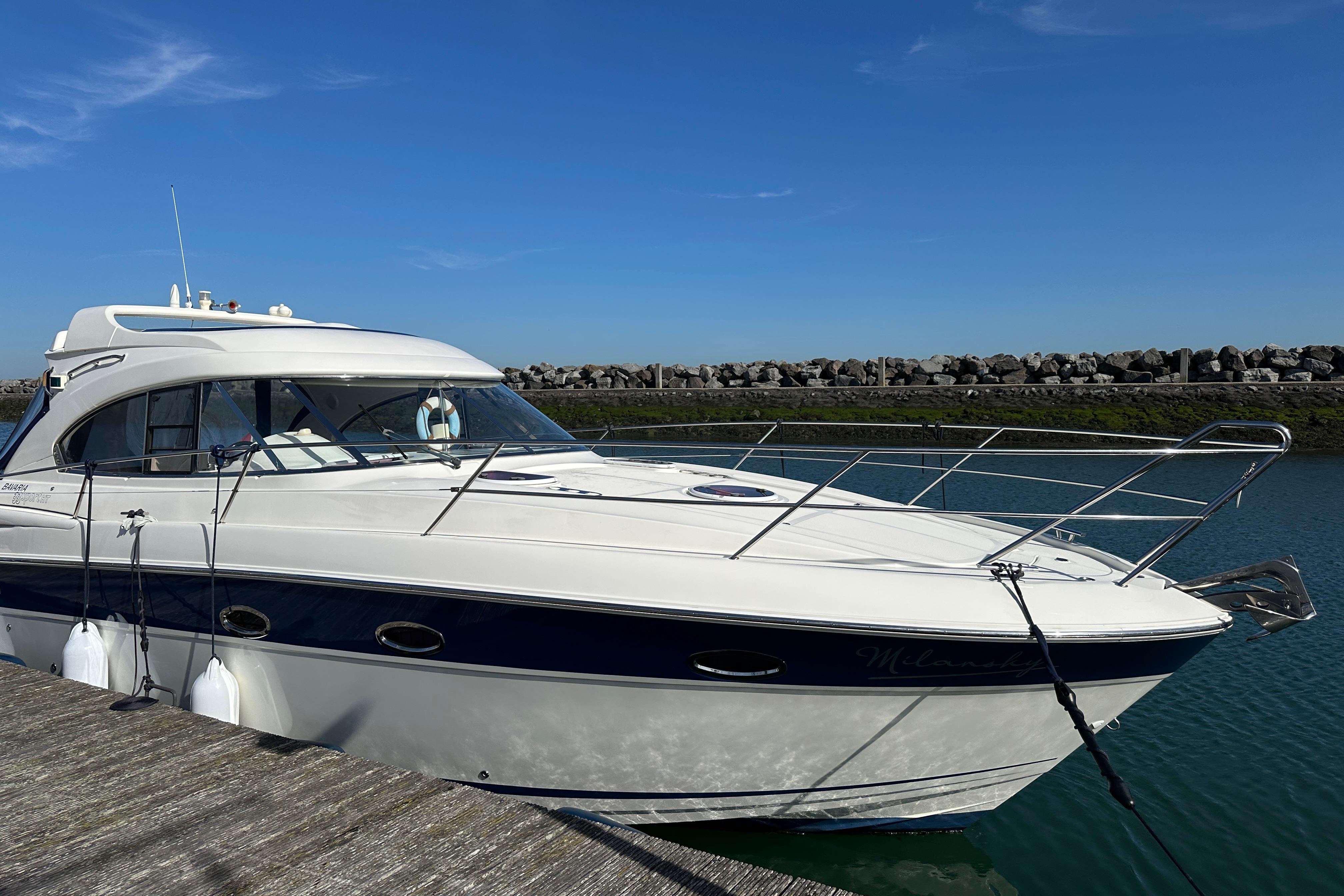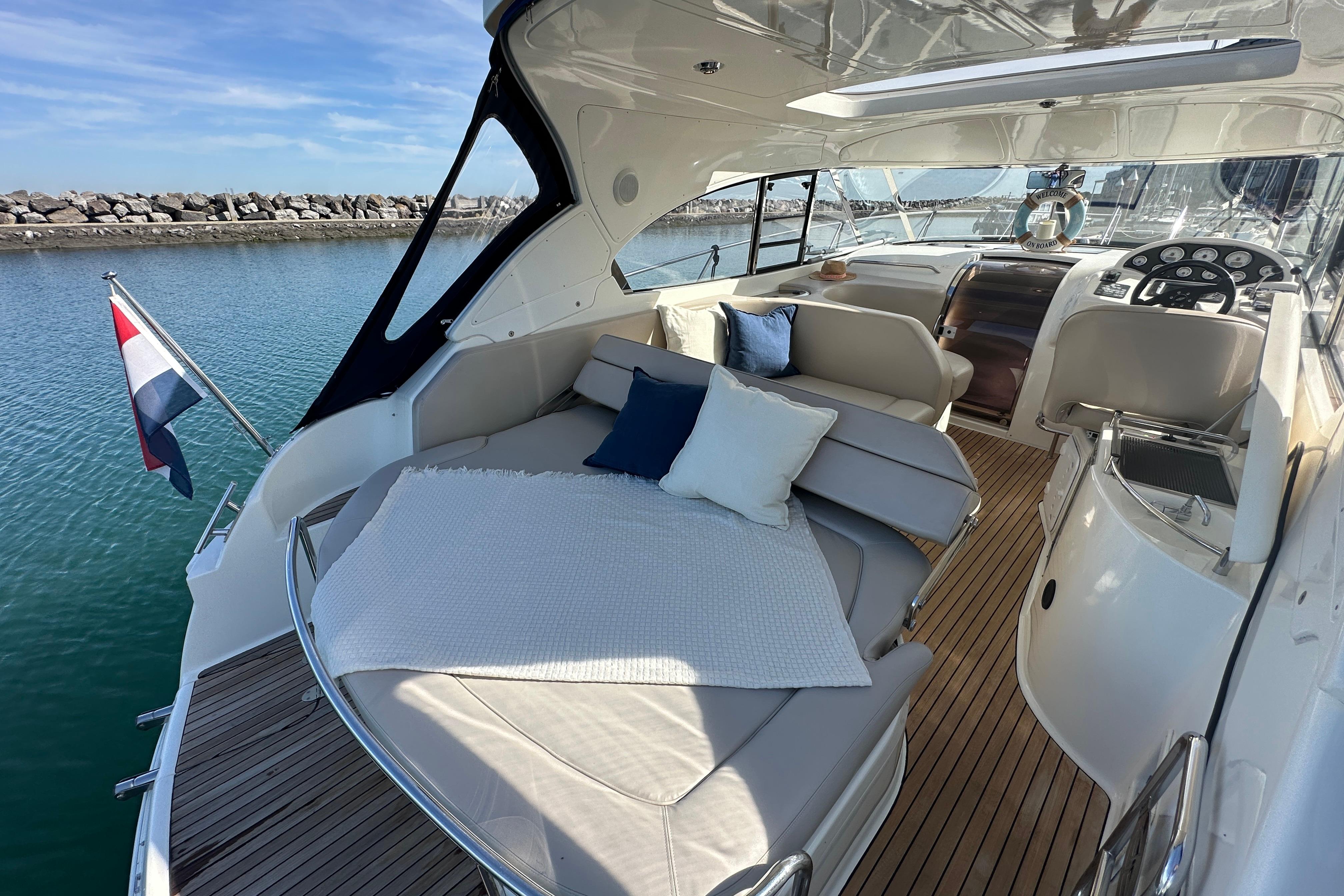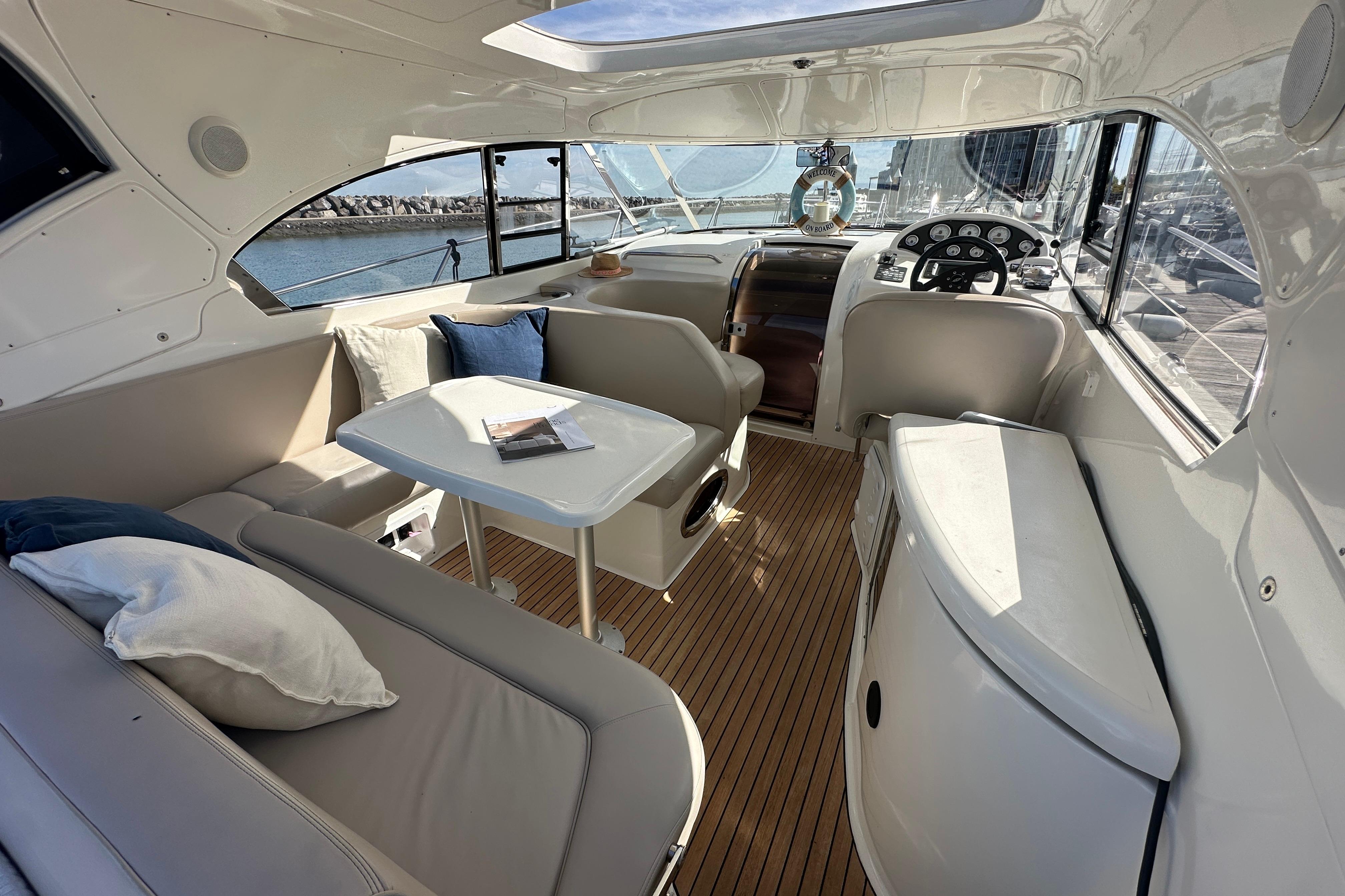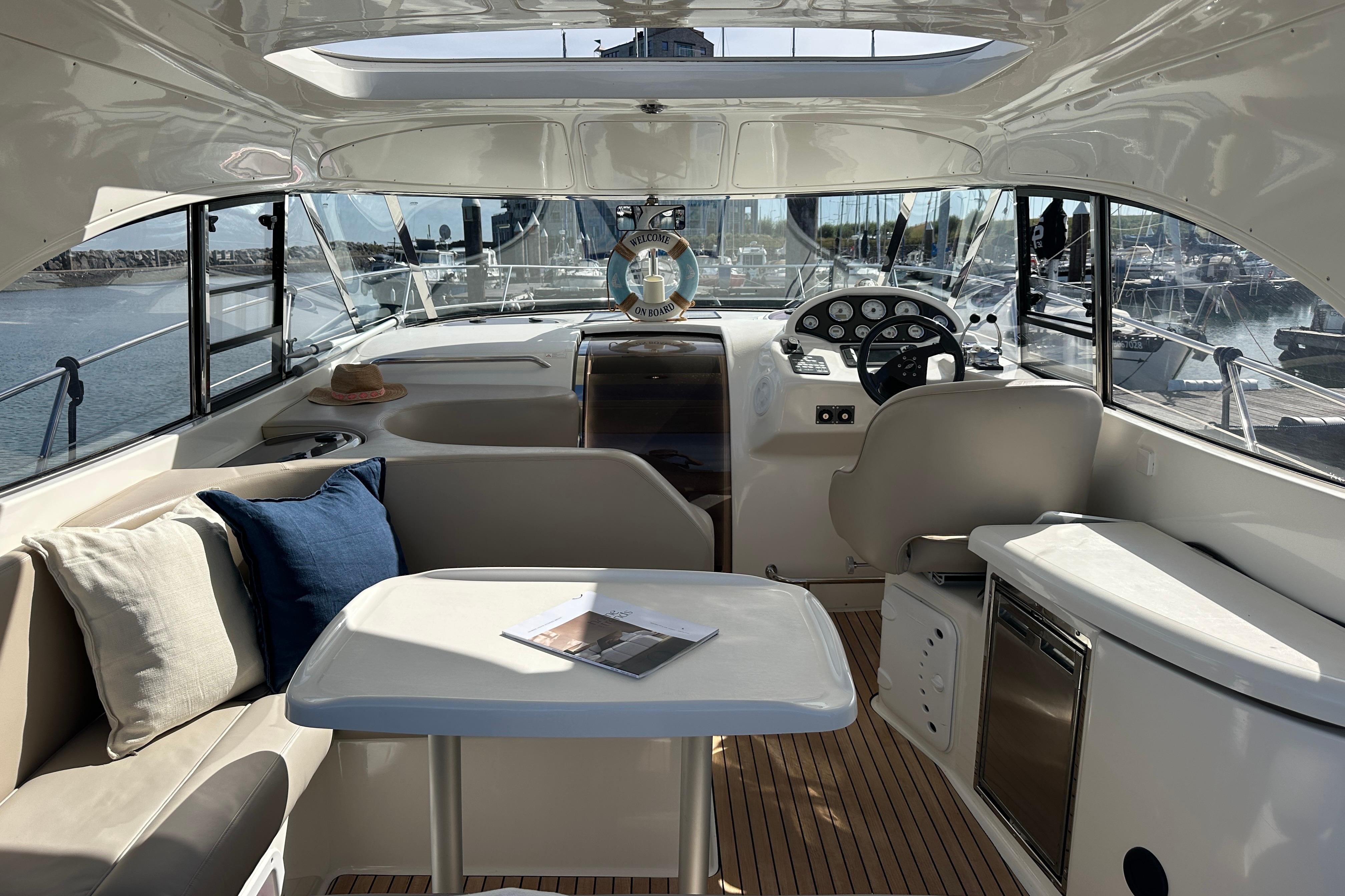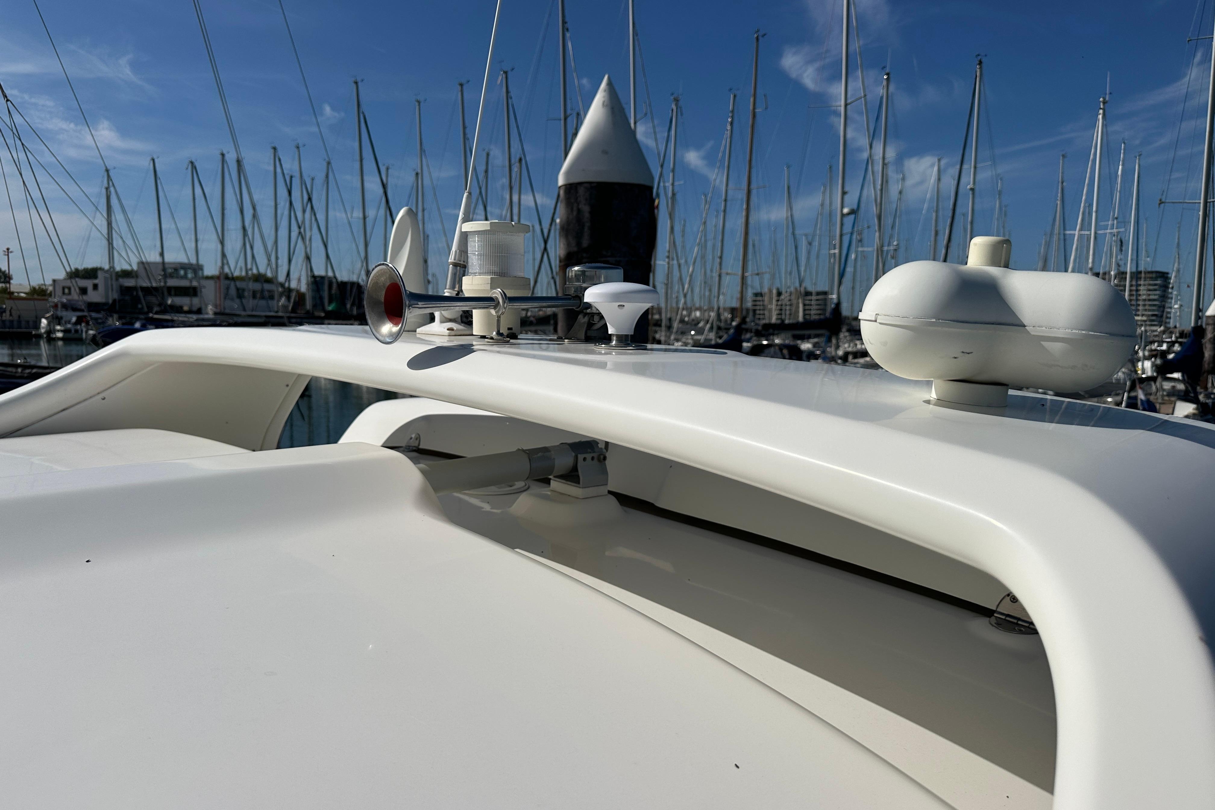 This yacht is in exceptional condition. Recent upgrades include a new canopy, freshly resprayed blue hull band, a new stern thruster, and more.