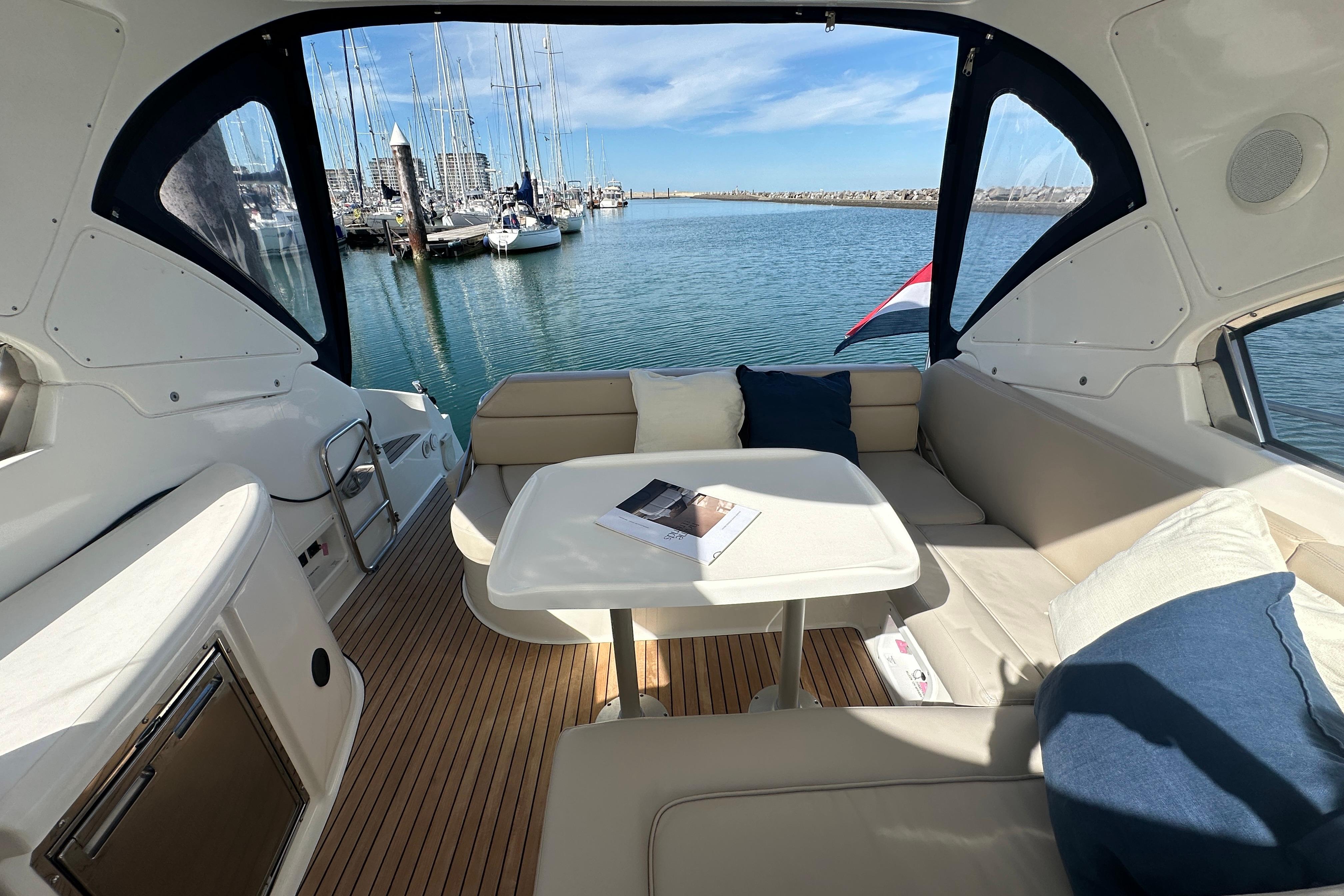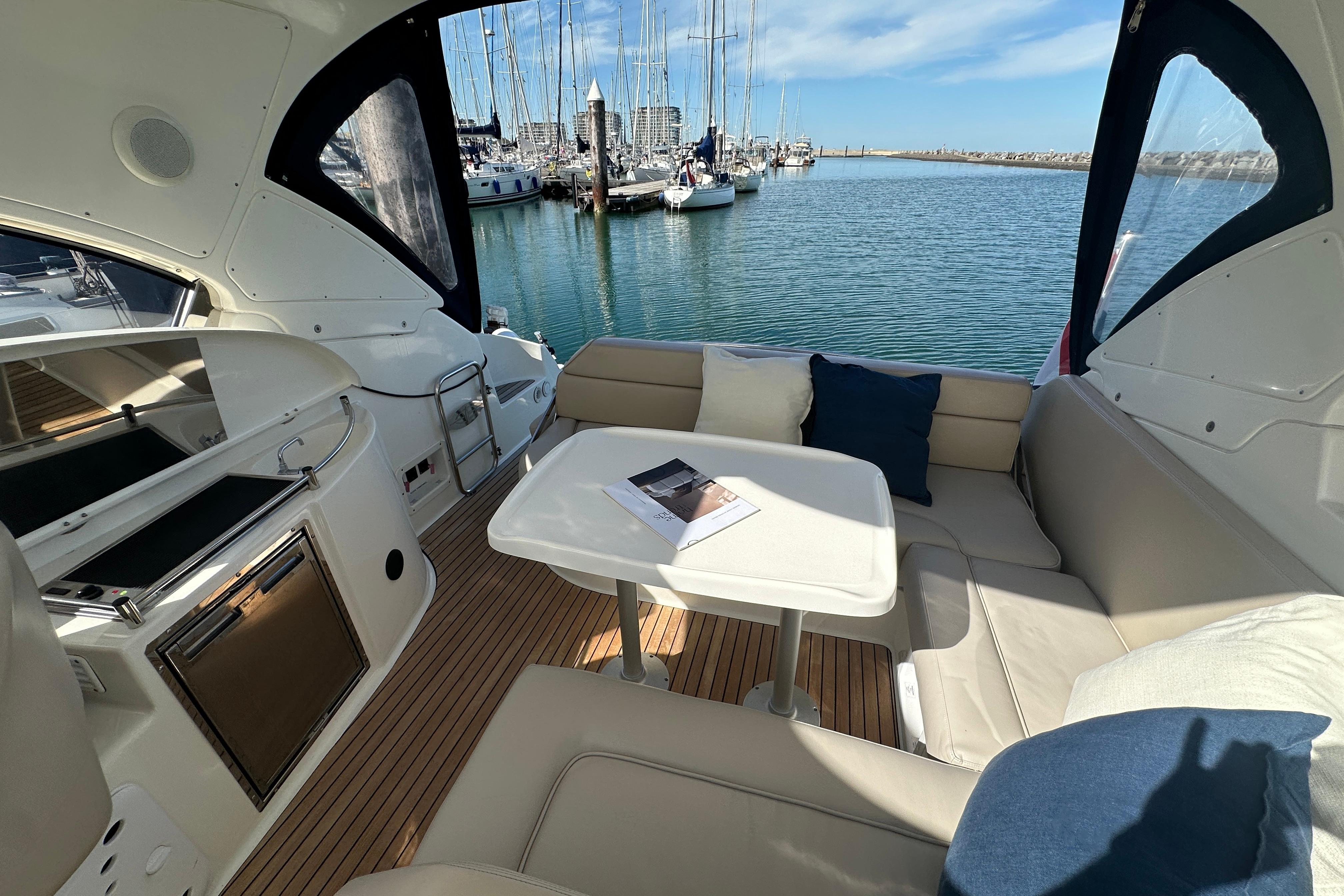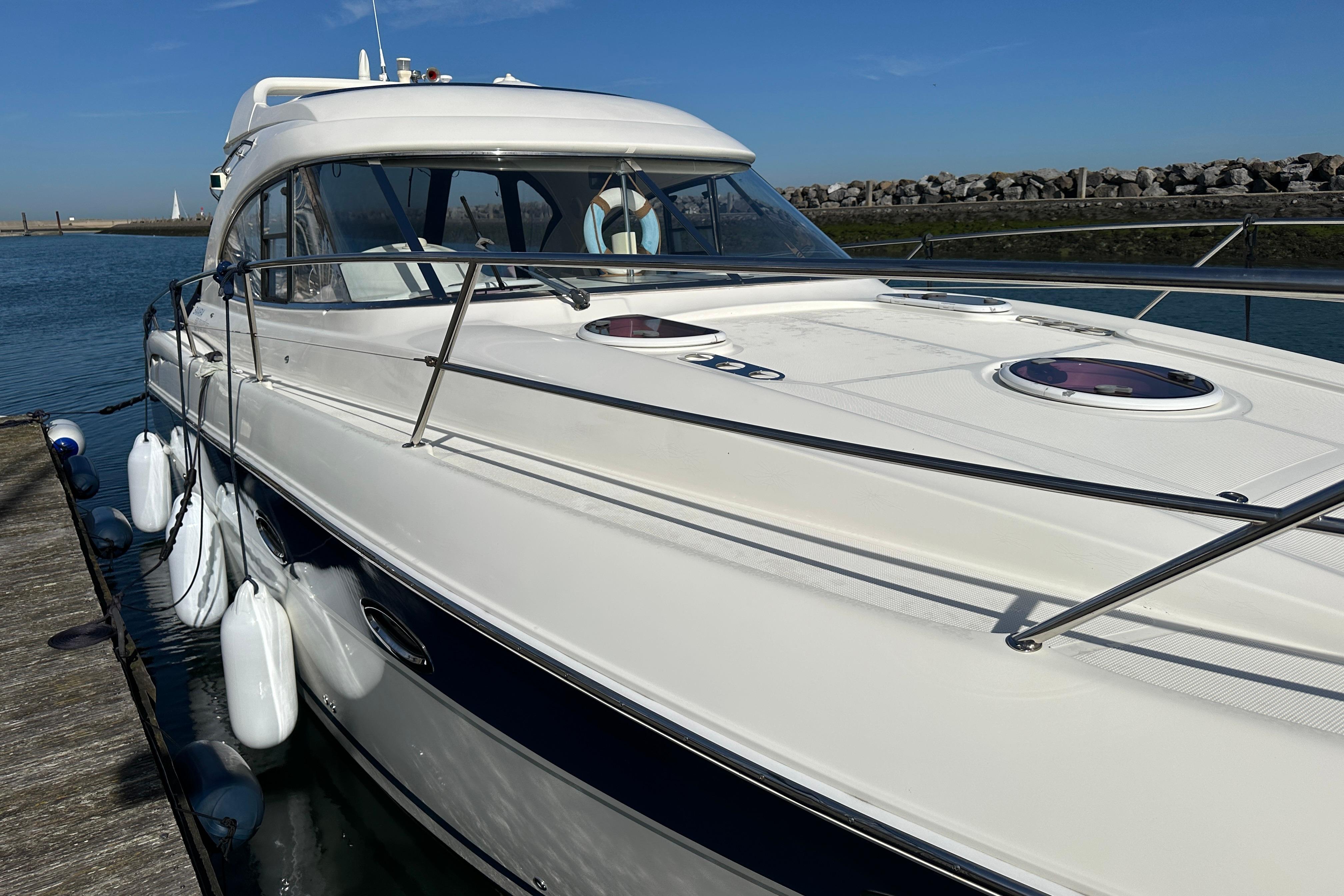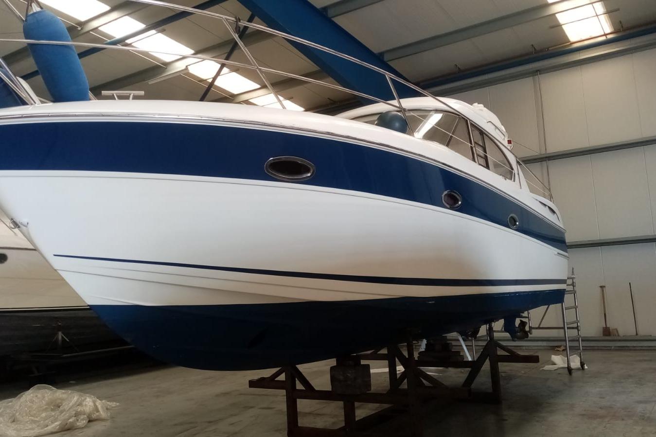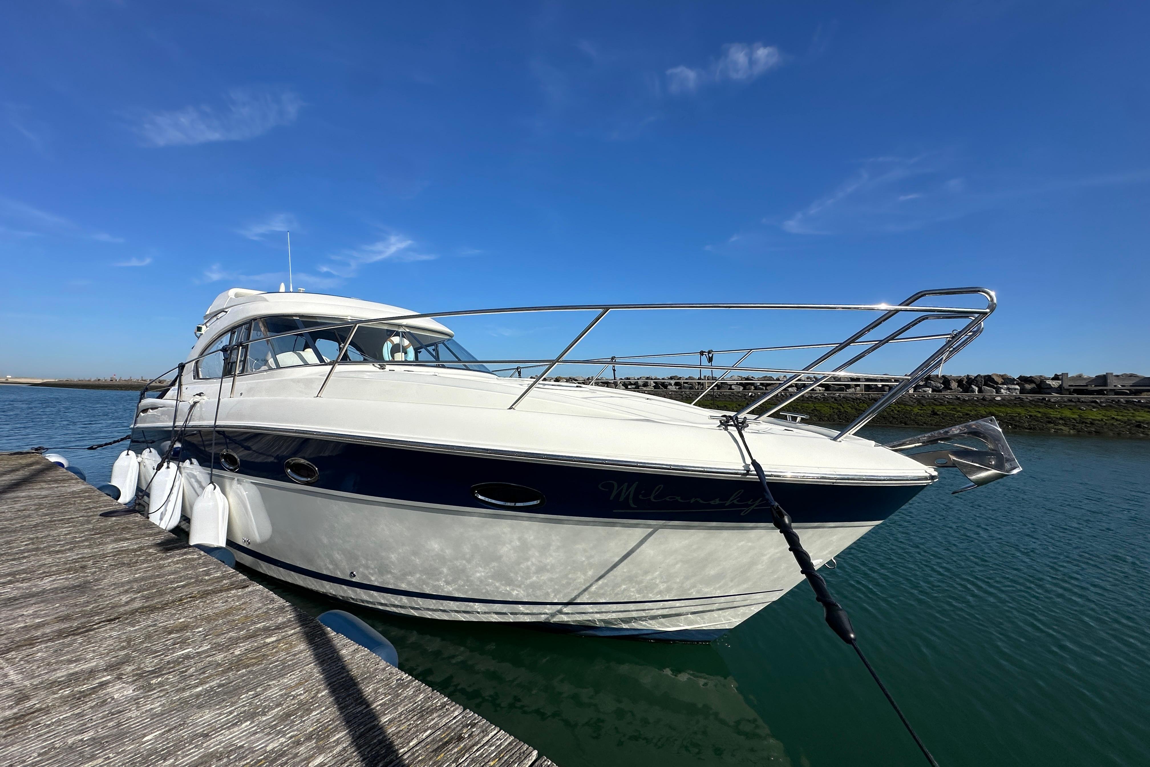 This yacht is in exceptional condition. Recent upgrades include a new canopy, freshly resprayed blue hull band, a new stern thruster, and more.