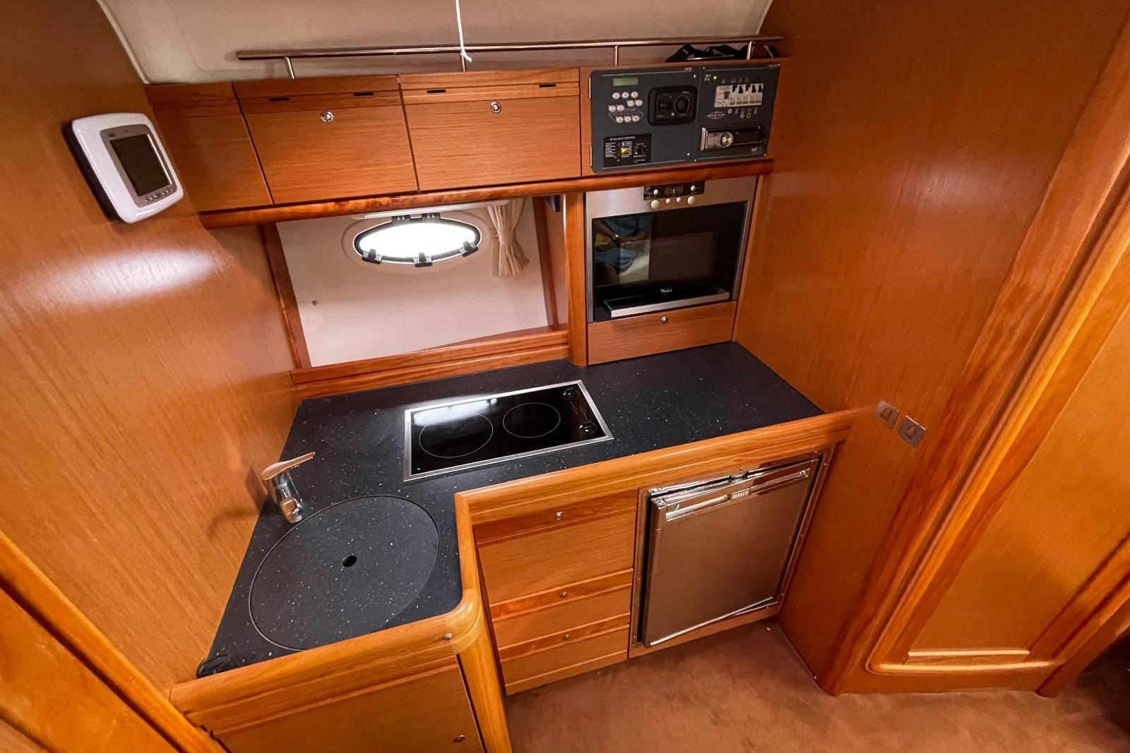 On deck, you’ll enjoy a large forward sunbathing area, while the cockpit is cleverly laid out to provide plenty of seating for family and friends. The aft canopy can even be converted into a generous sunpad, perfect for lazy afternoons at anchor.