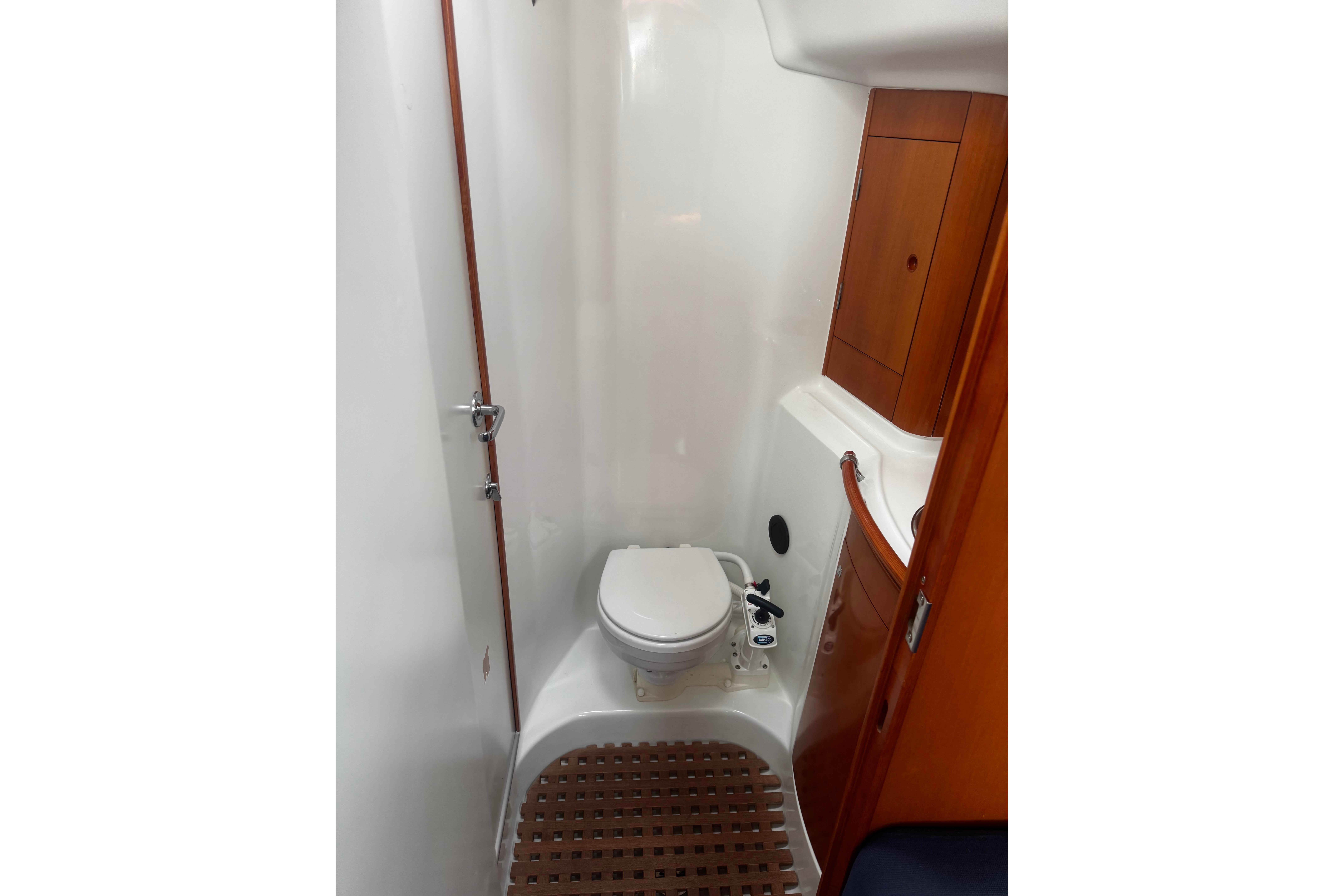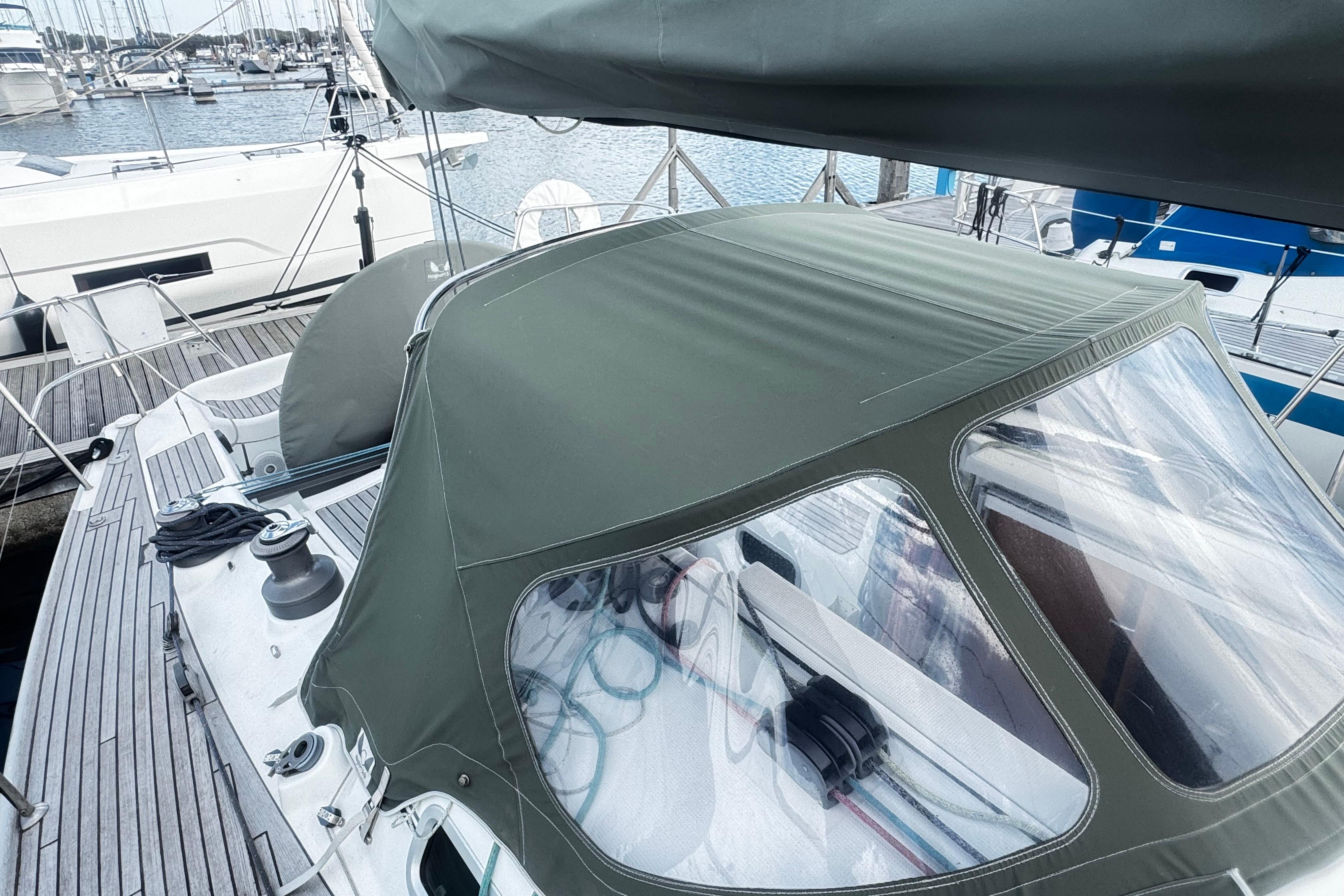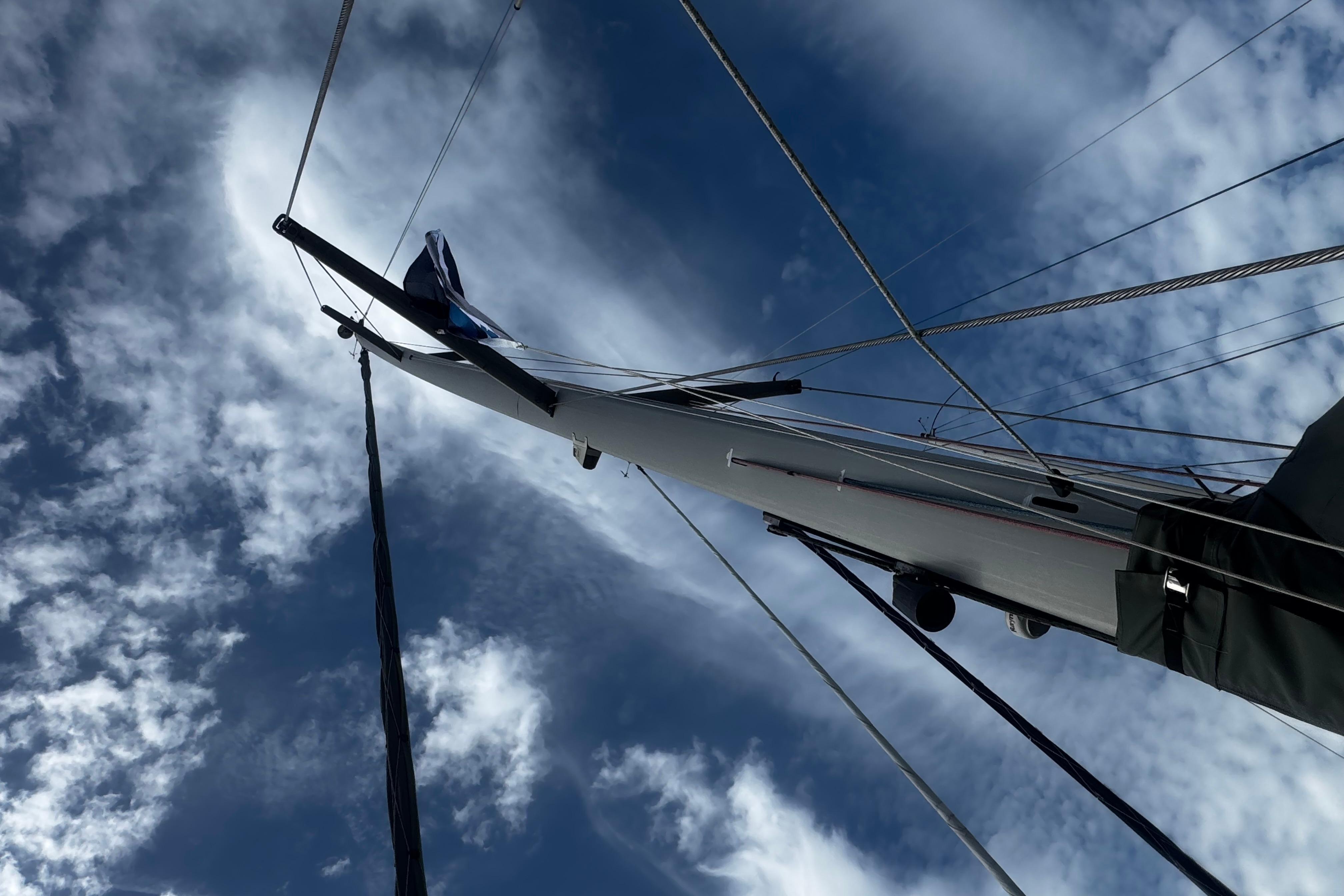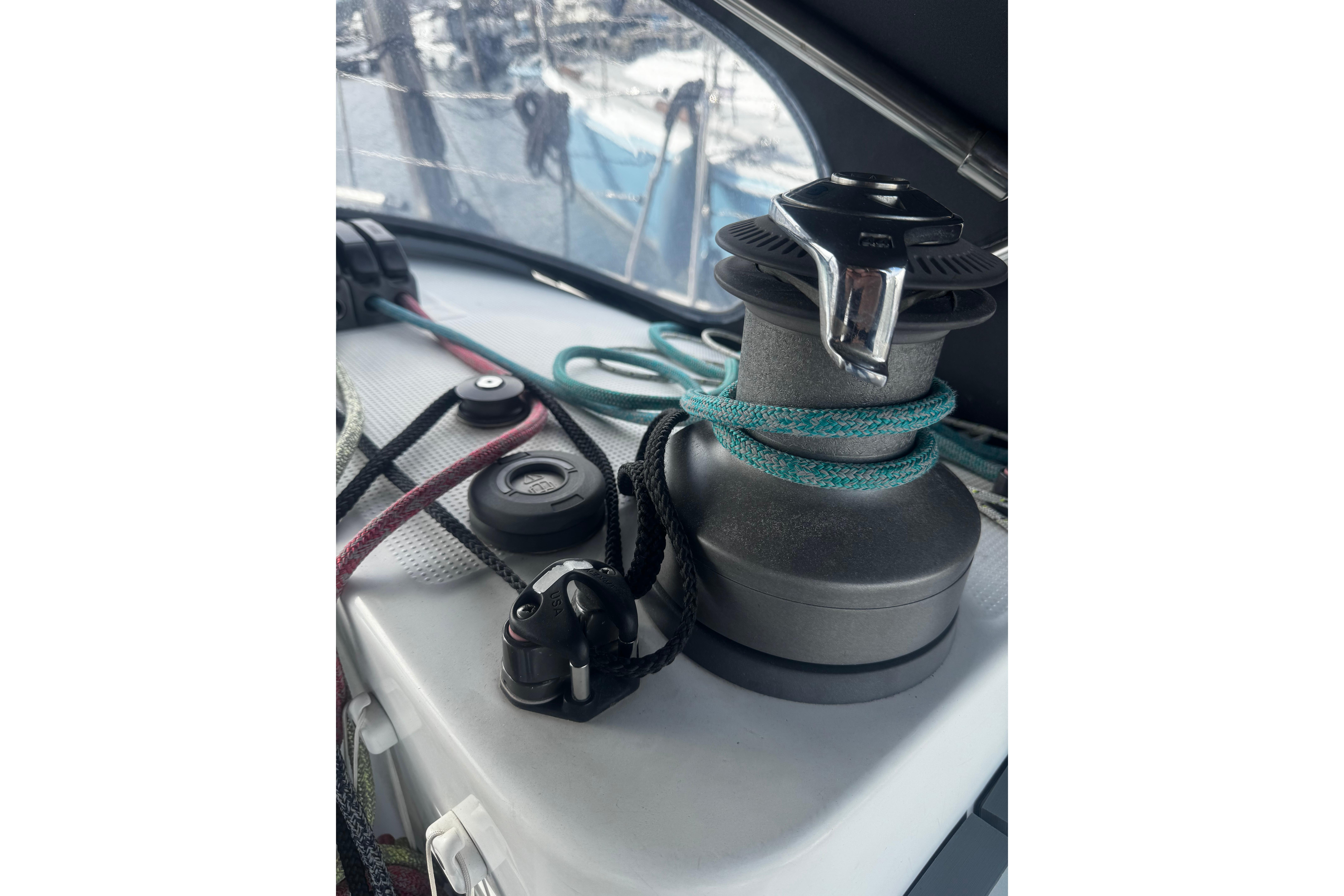 Reliable deck hardware: Lewmar winches and fittings, quality rigging, and a robust keel-stepped mast make the boat strong and seaworthy.