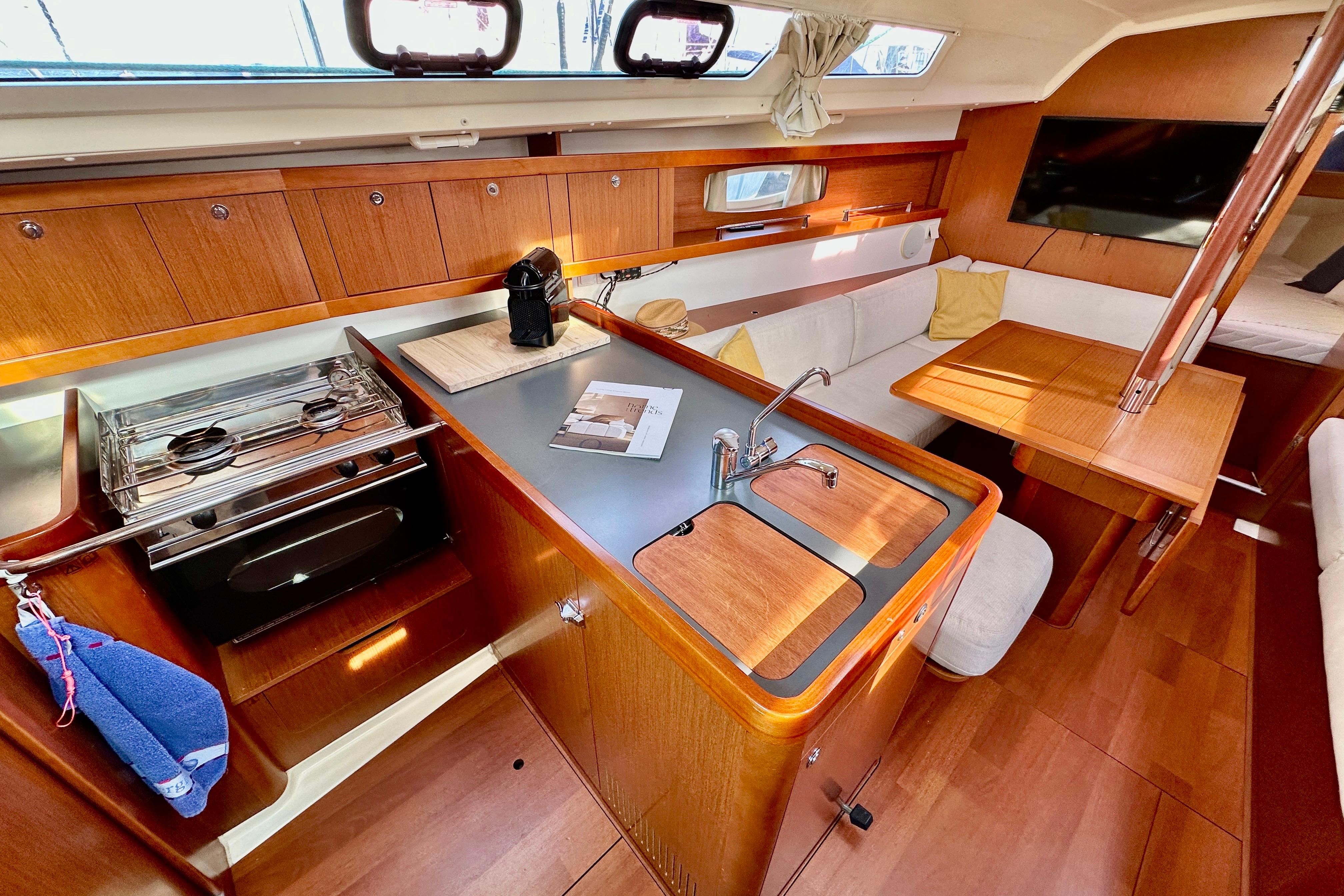 ‘Naster’ is a limited Edition is a versatile cruiser that offers a balance of comfort, performance, and modern equipment. This 2013 model has been well maintained and is fully equipped for both leisure cruising and extended voyages. Whether you sail as a family, a couple or with friends, this yacht is a dream for everyone who loves to get away from it all. With its welcoming, light-filled living space, life is good aboard the Océanis 34. The Finot-Conq design keeps its promise of maximum performance from this elegant thoroughbred cruiser.
