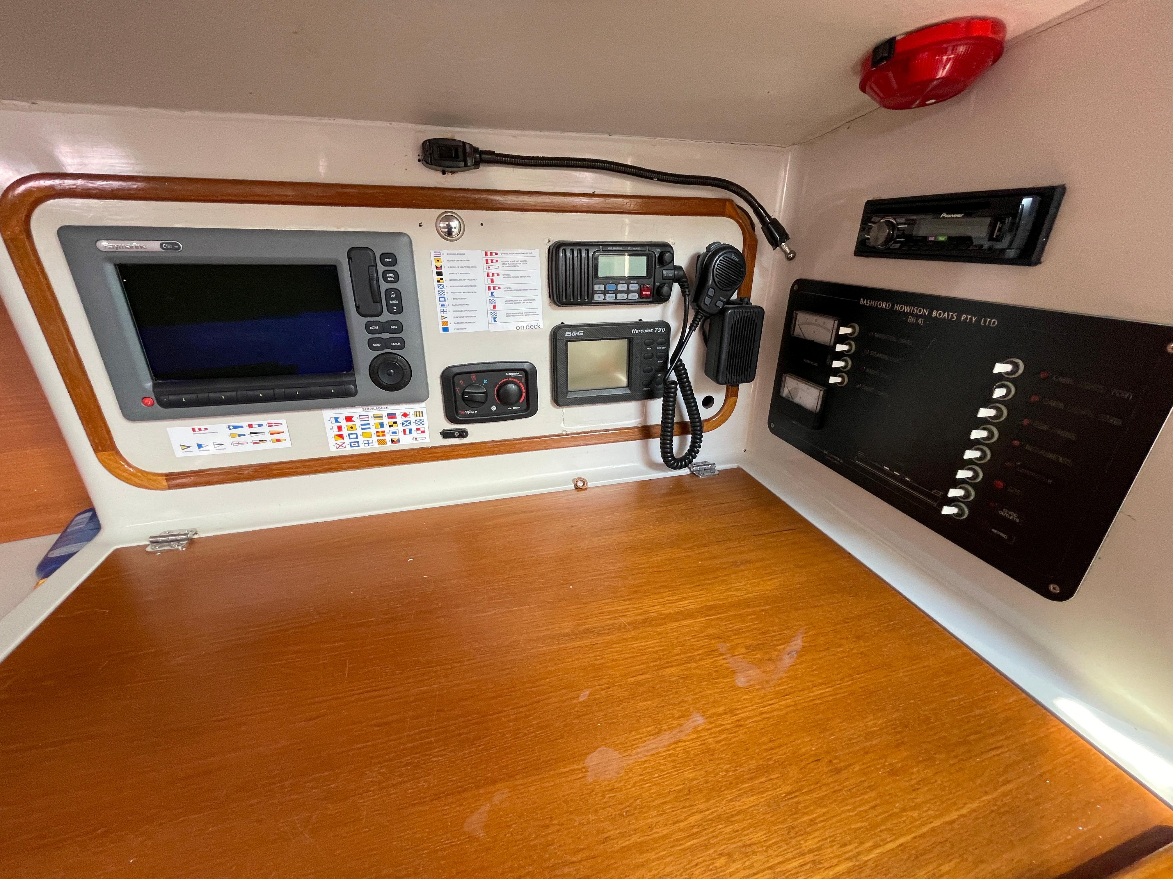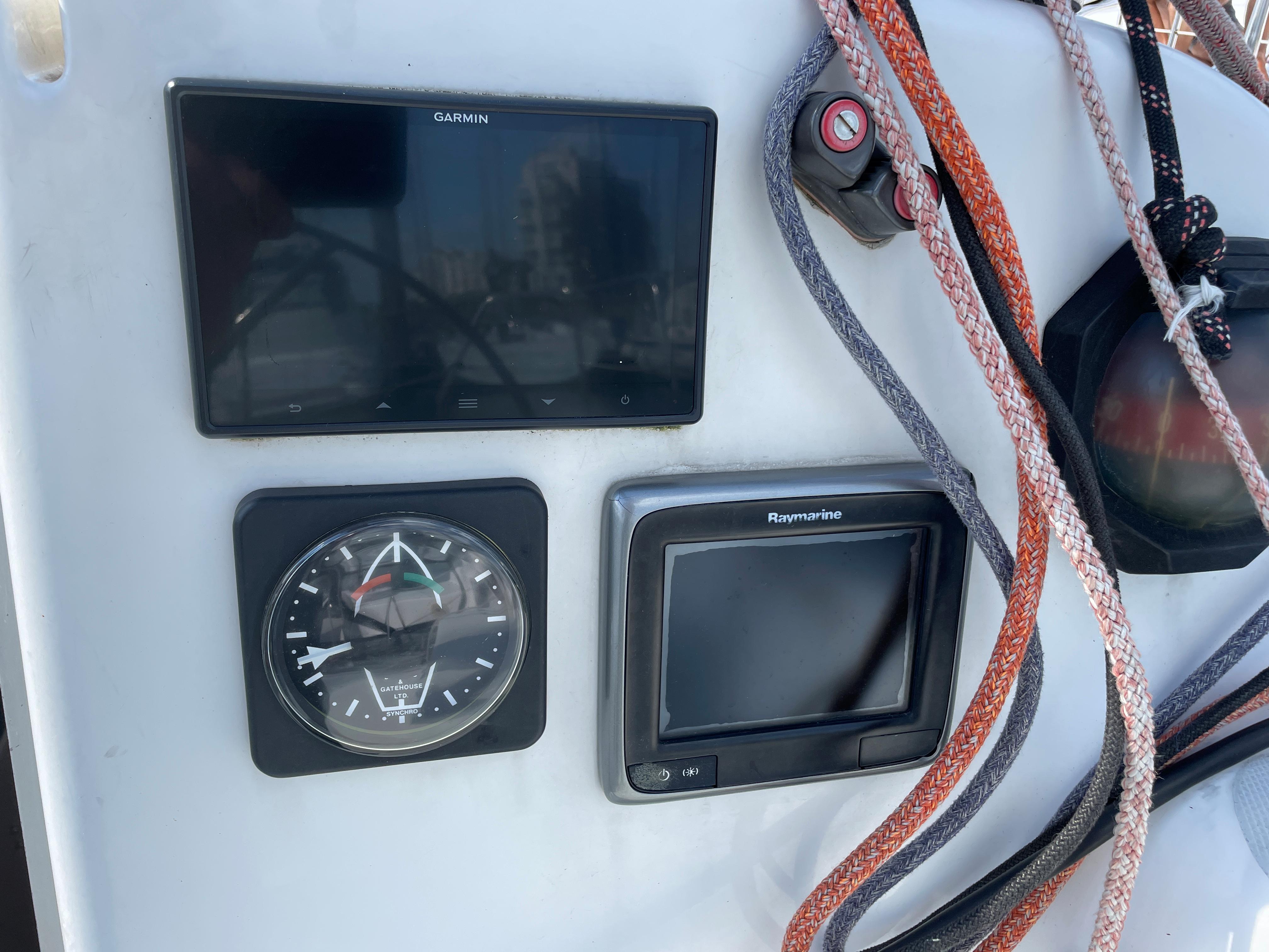 Navigation: Recent Garmin instruments and autopilot, Raymarine plotter C120w dual chartplotters, Icom VHF
