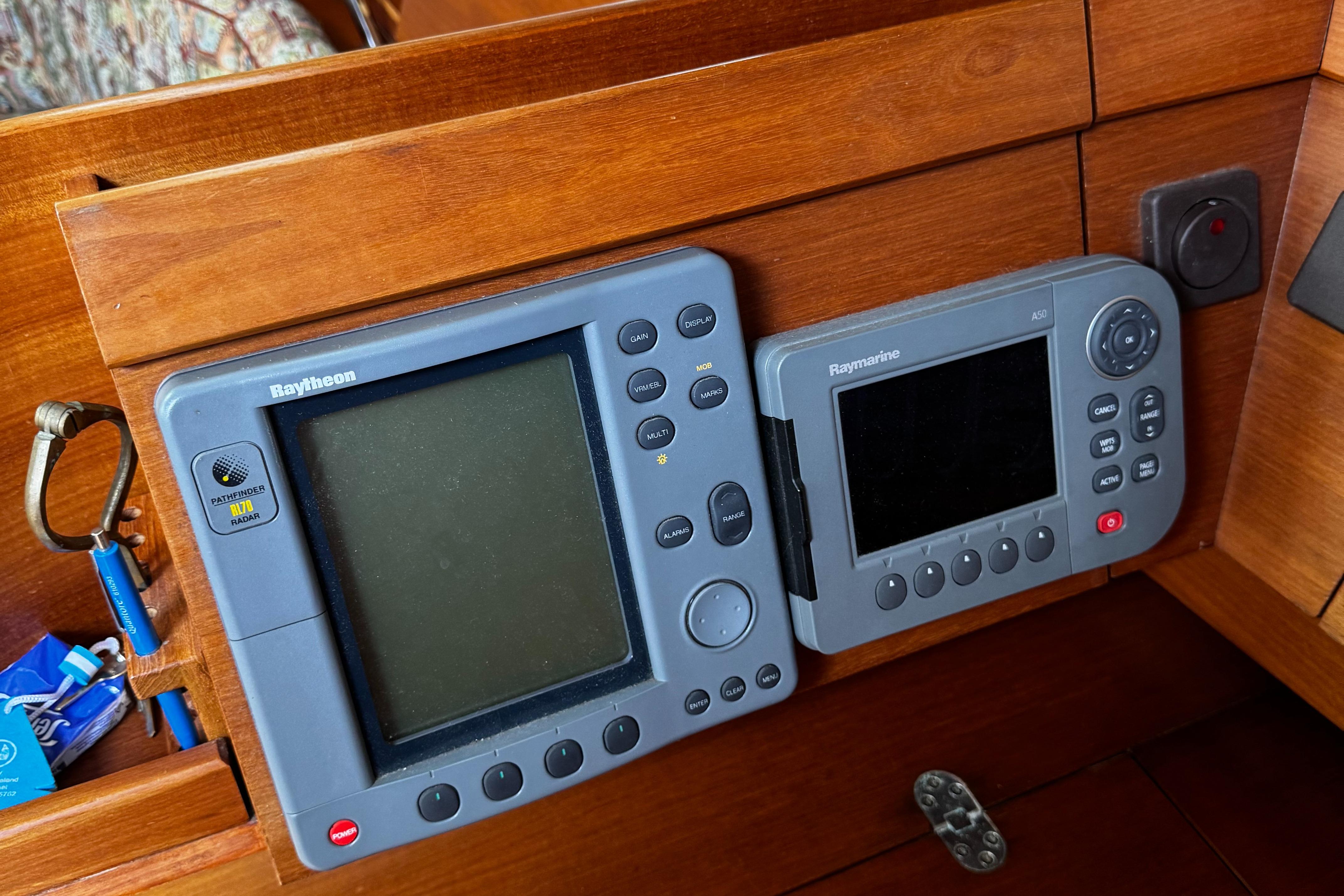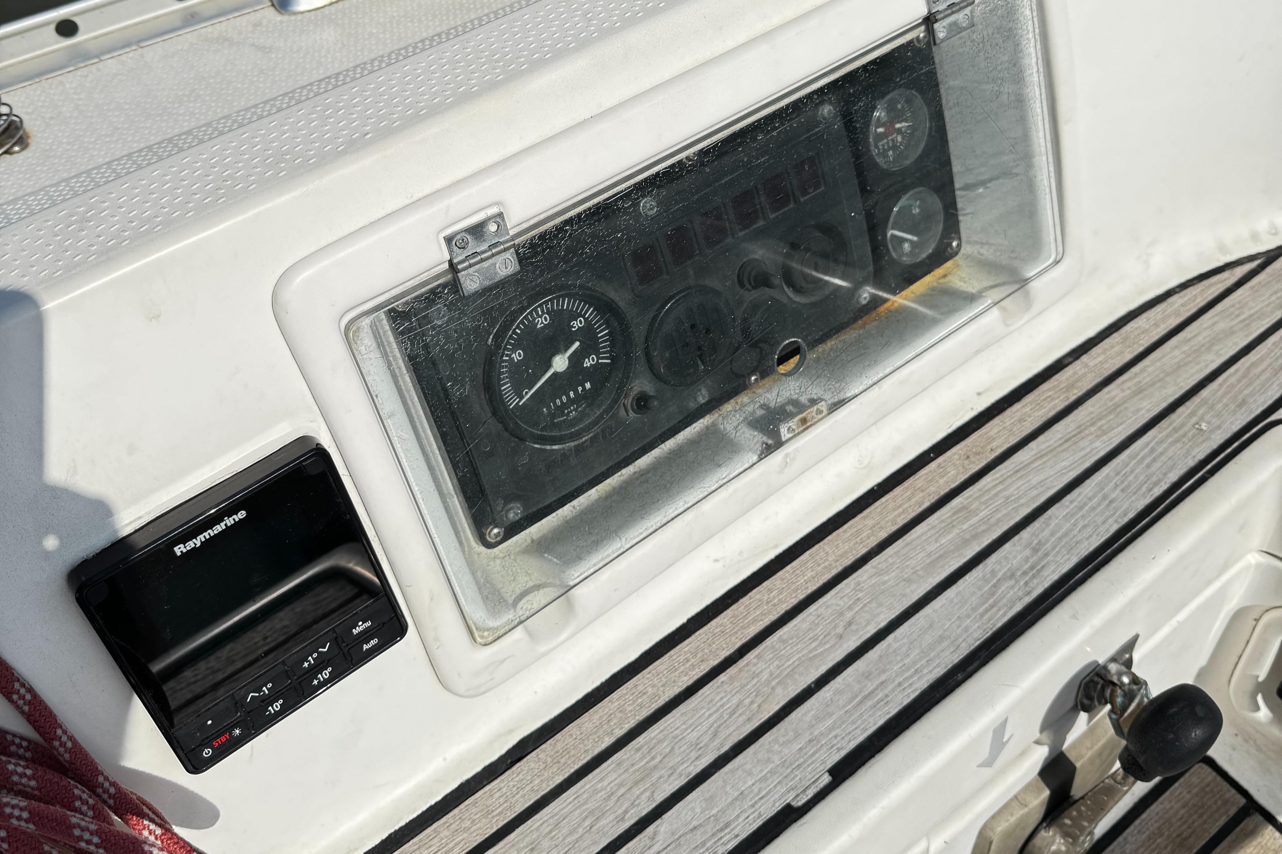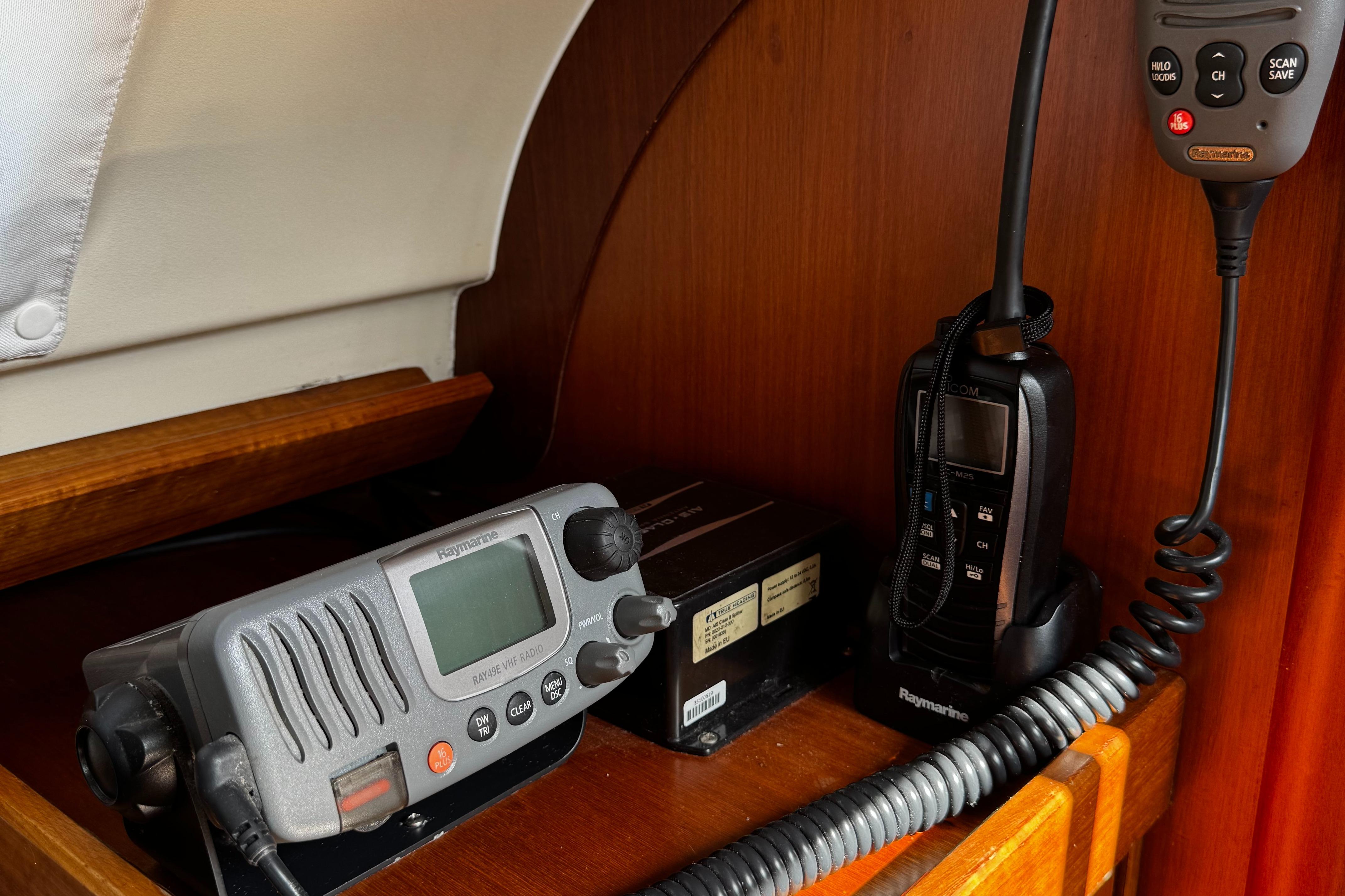 Raymarine navigation equiped incl autopilot(new display 2025), Radar (not working), depth, speed and windset. Chartplotter and GPS. VHF and extra 2021 handheld VHF by Icom