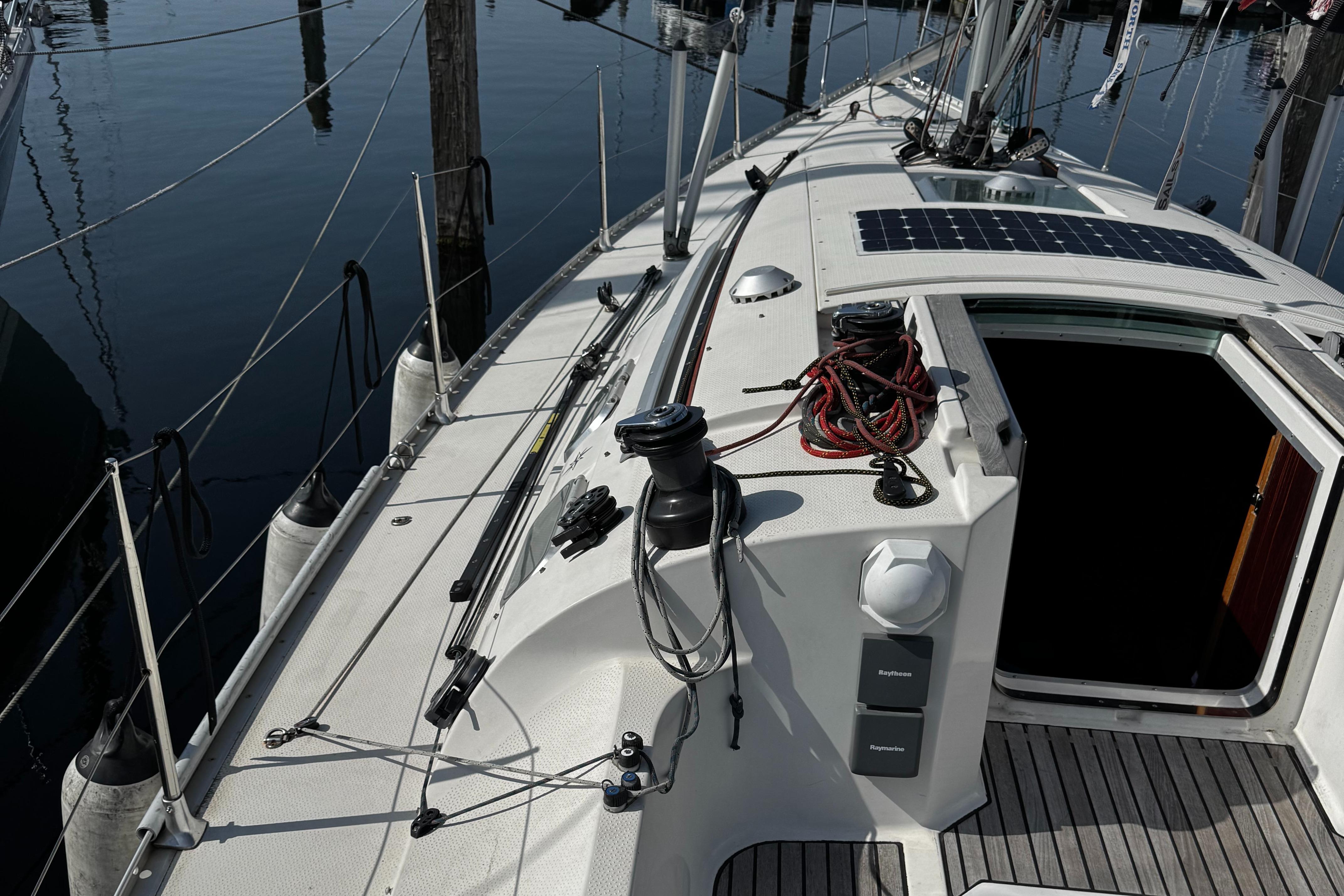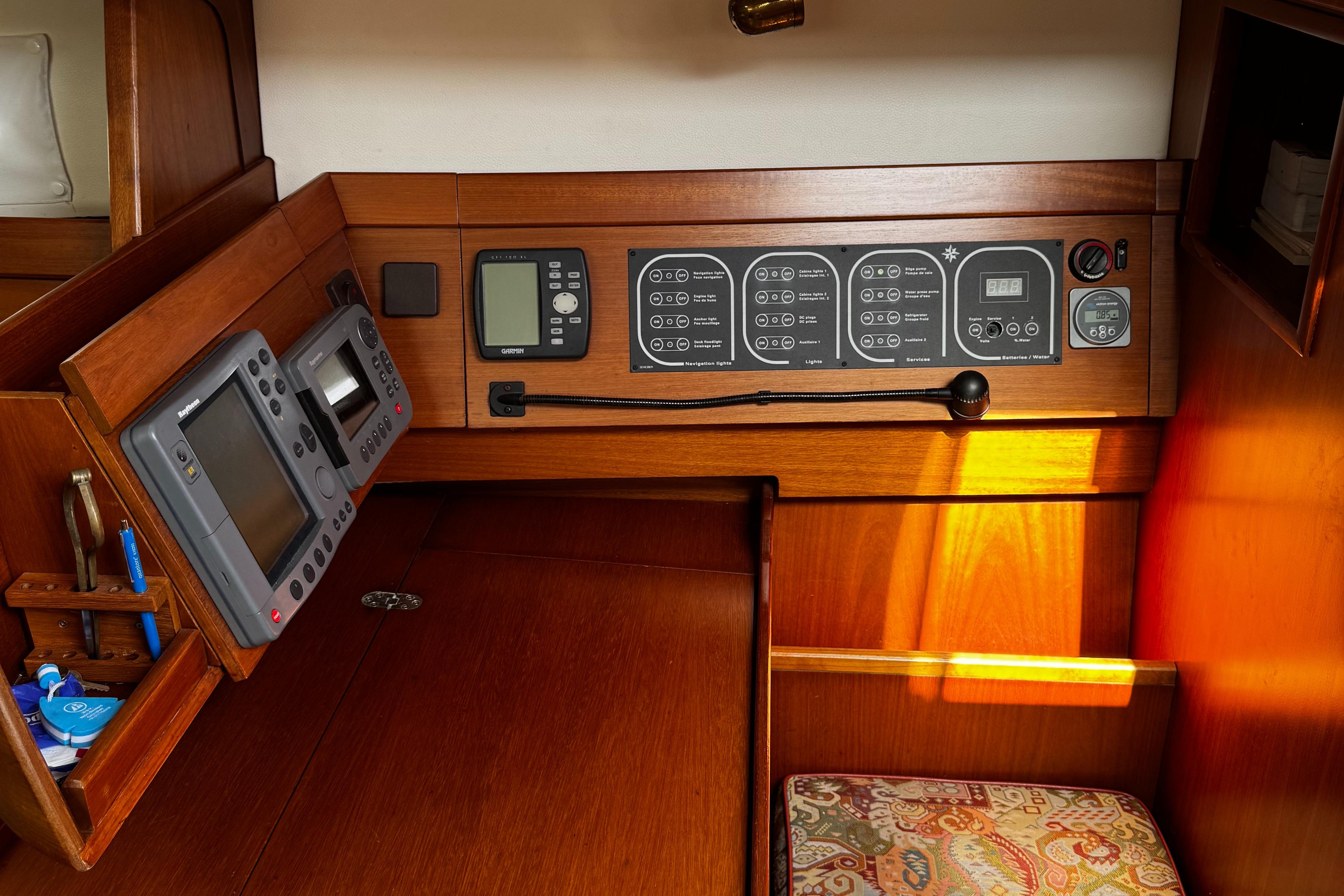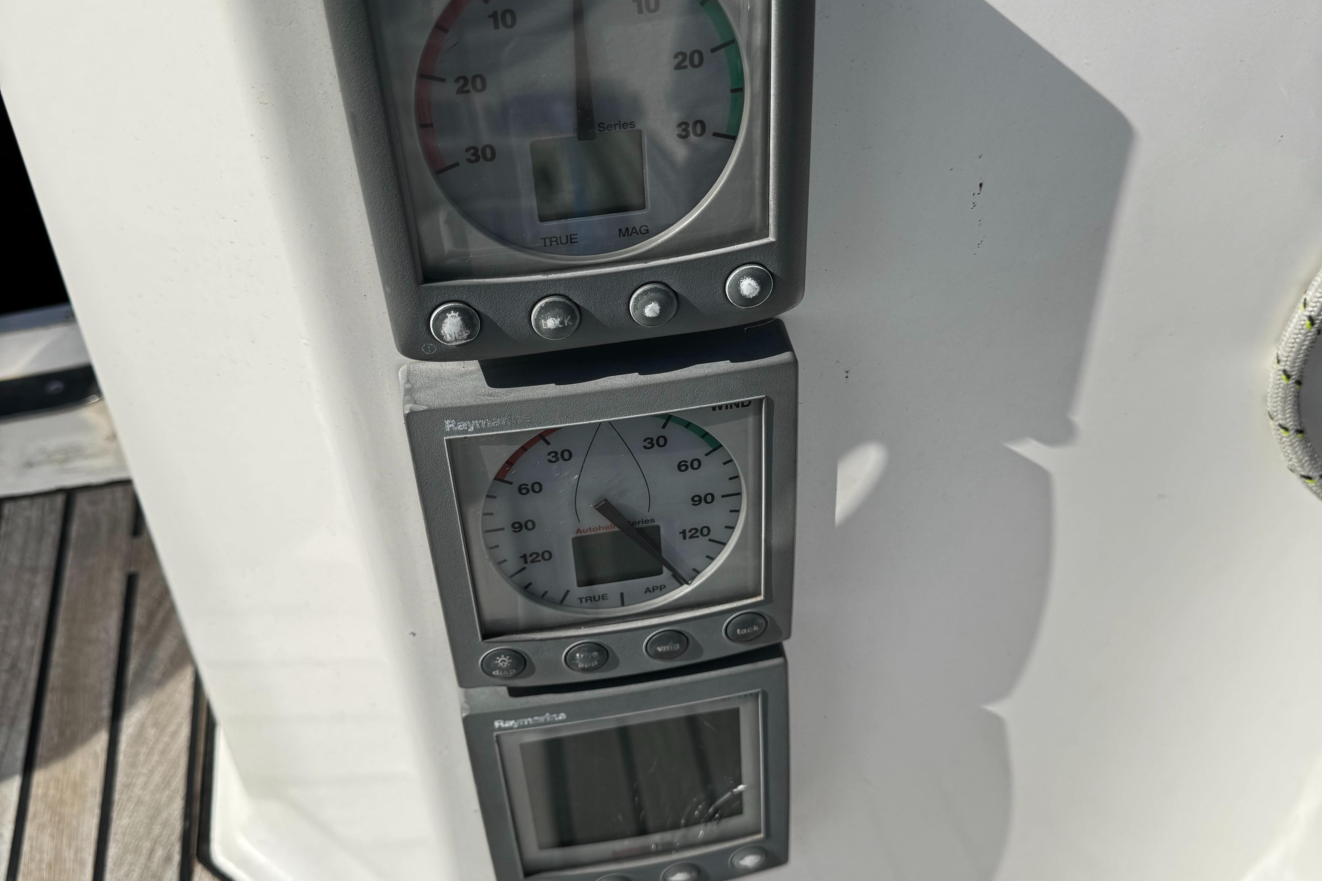 Raymarine navigation equiped incl autopilot(new display 2025), Radar (not working), depth, speed and windset. Chartplotter and GPS. VHF and extra 2021 handheld VHF by Icom