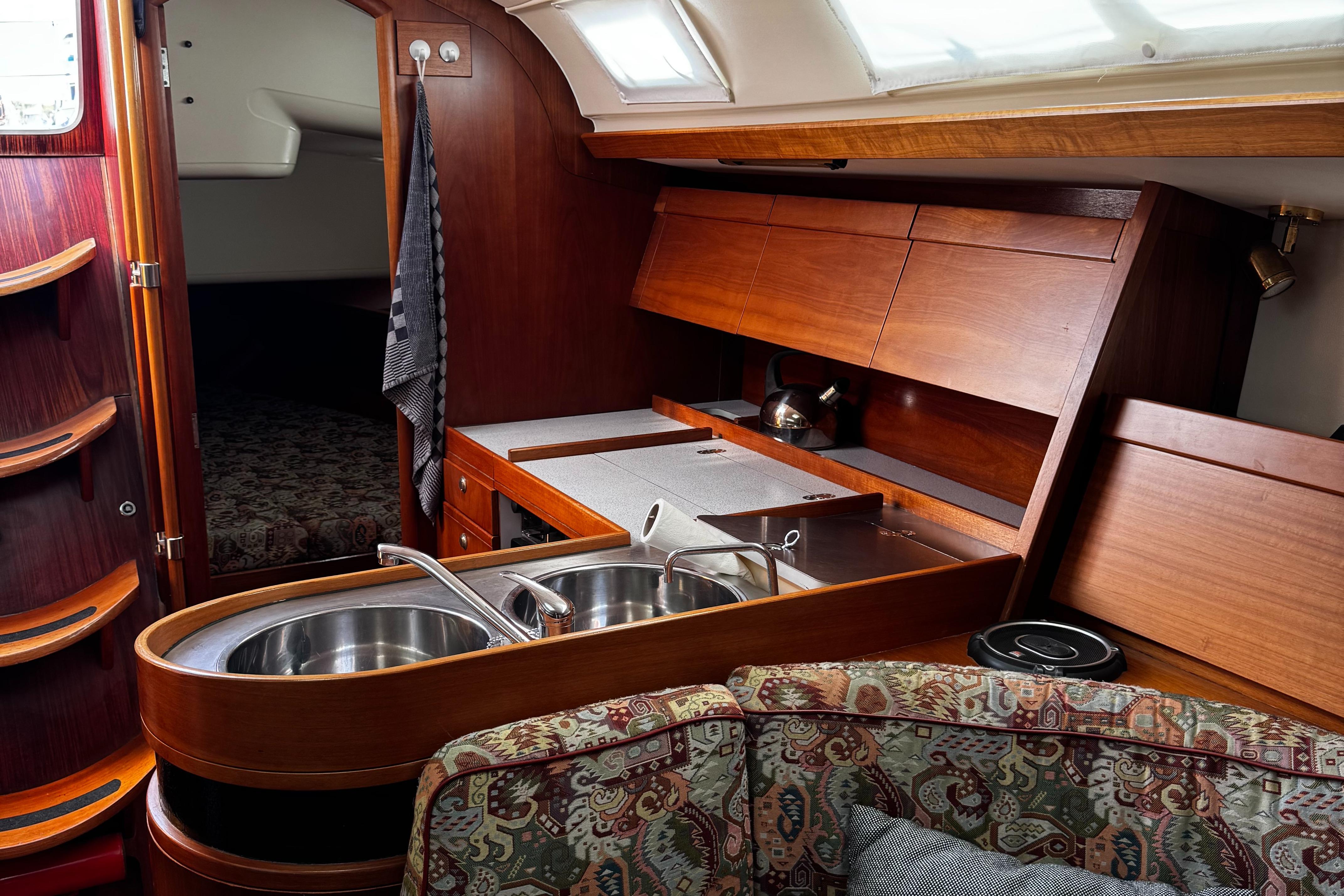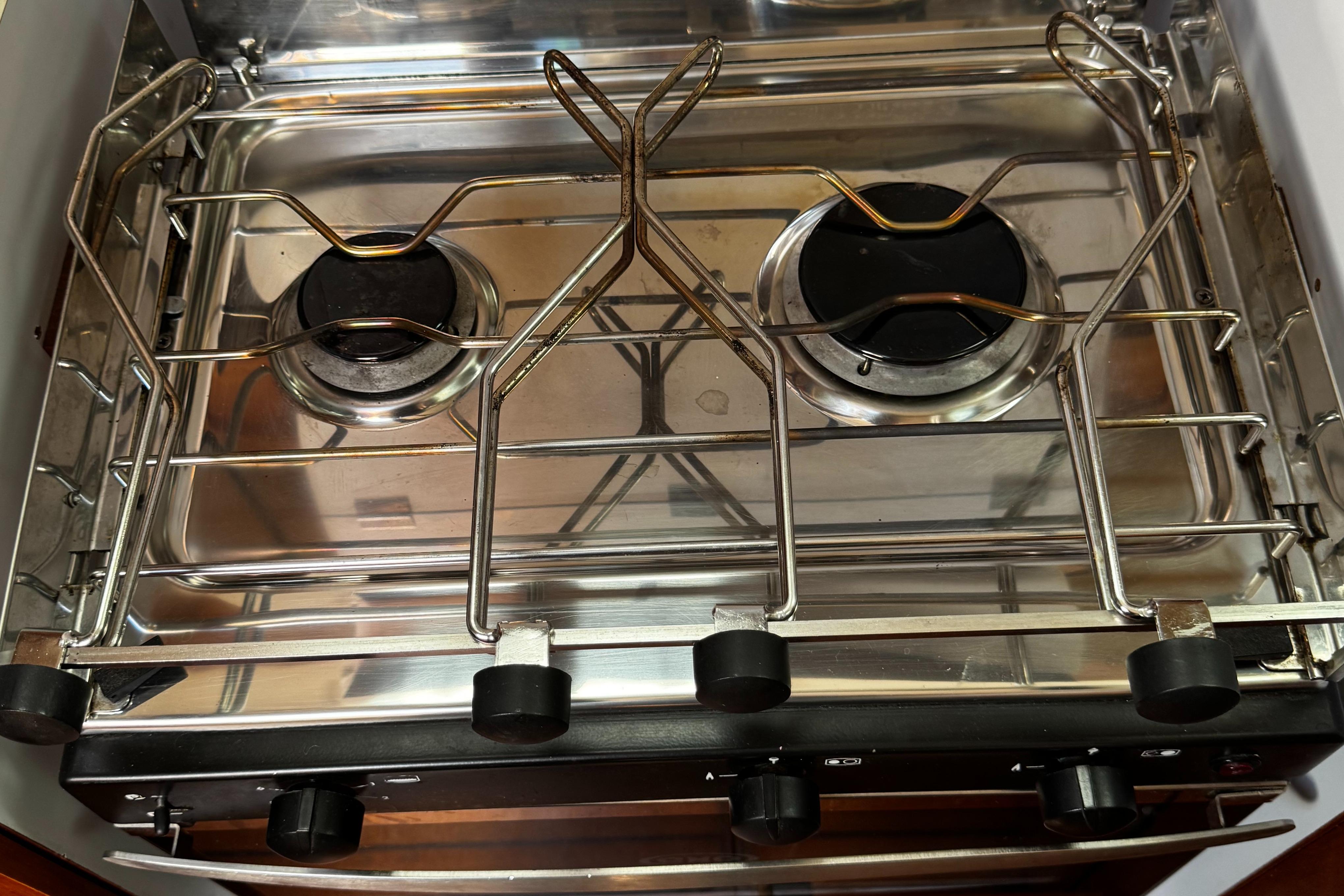 galley with recent oven and 2 burener stove and large fridge compartment