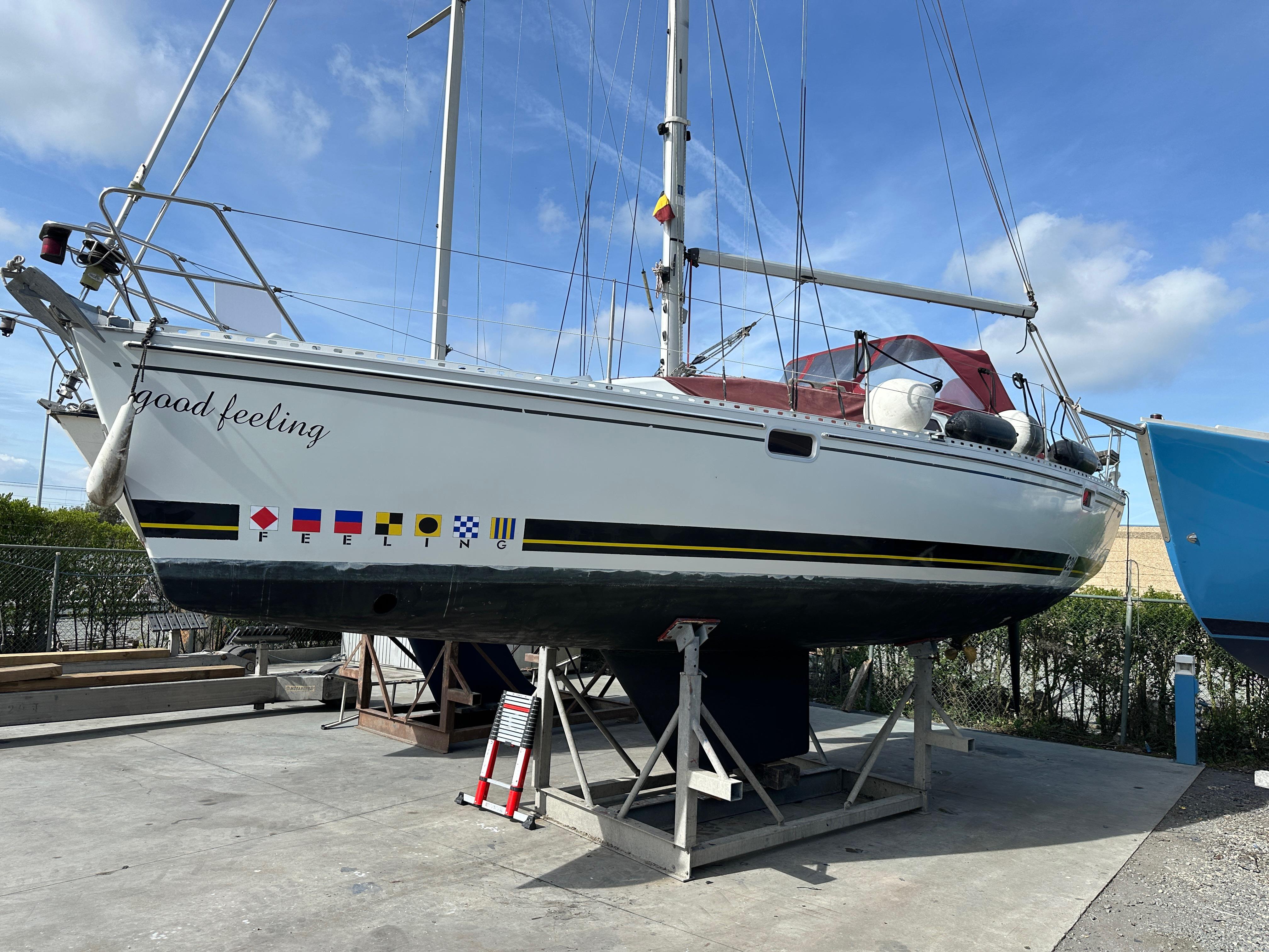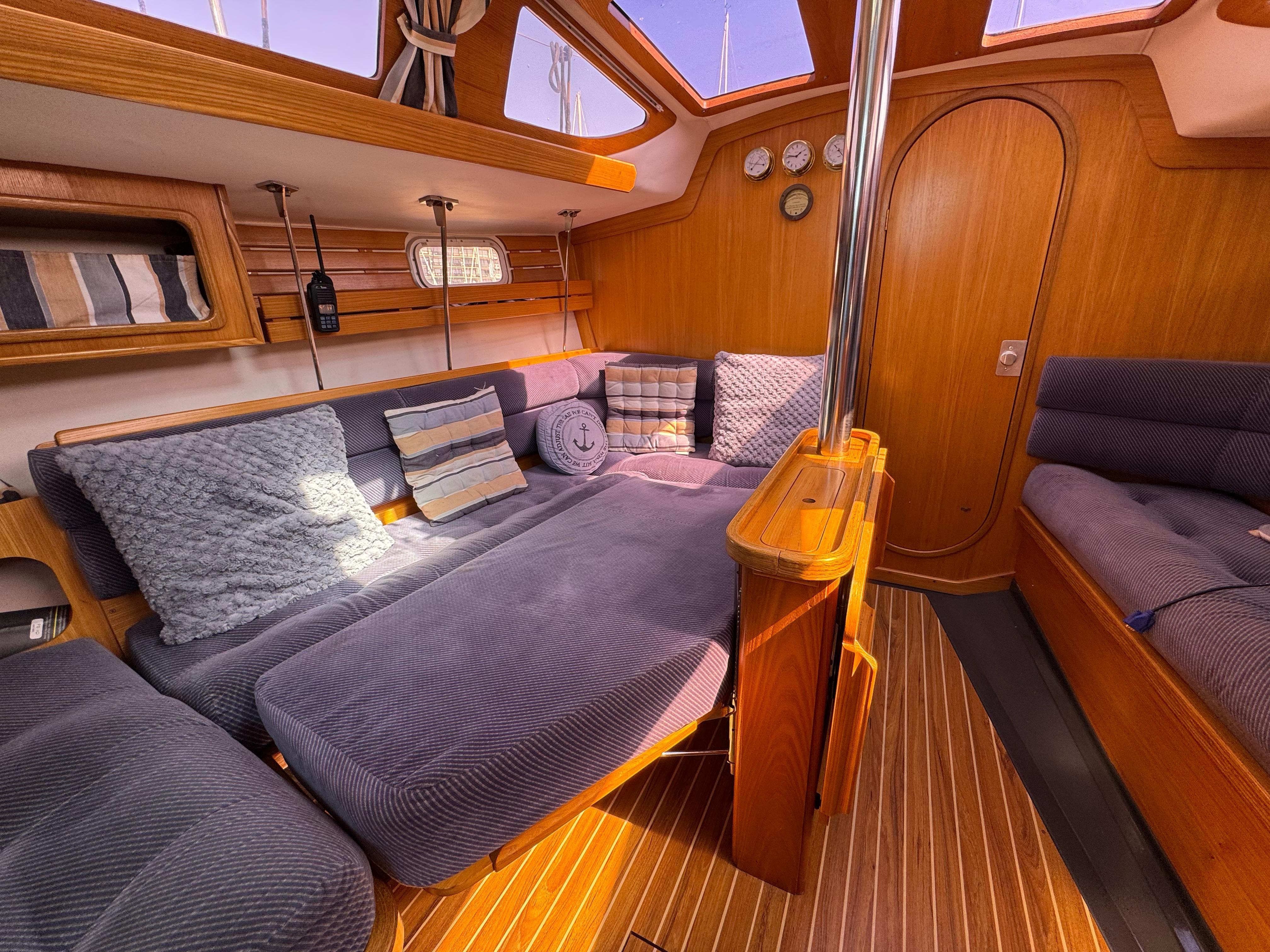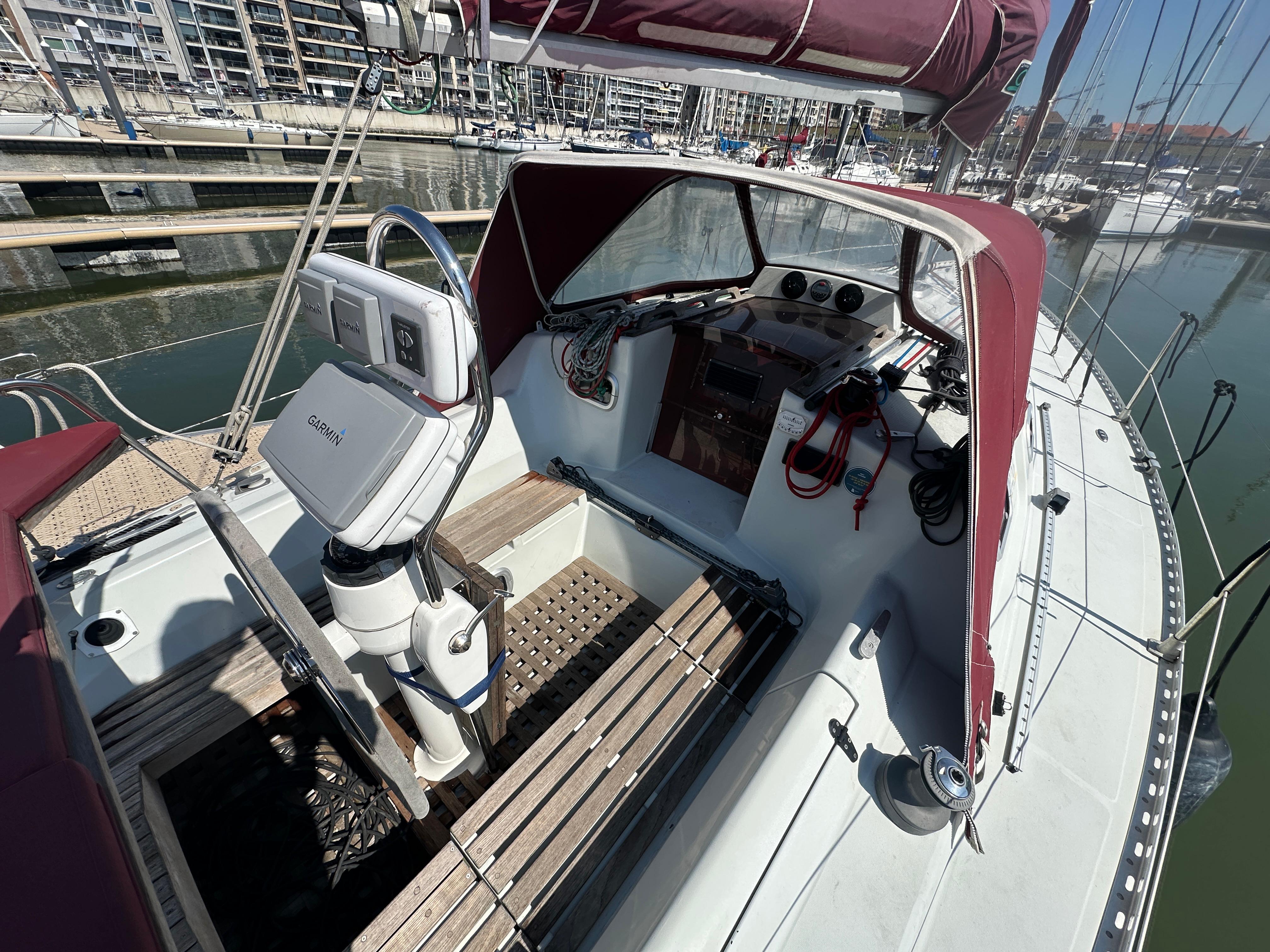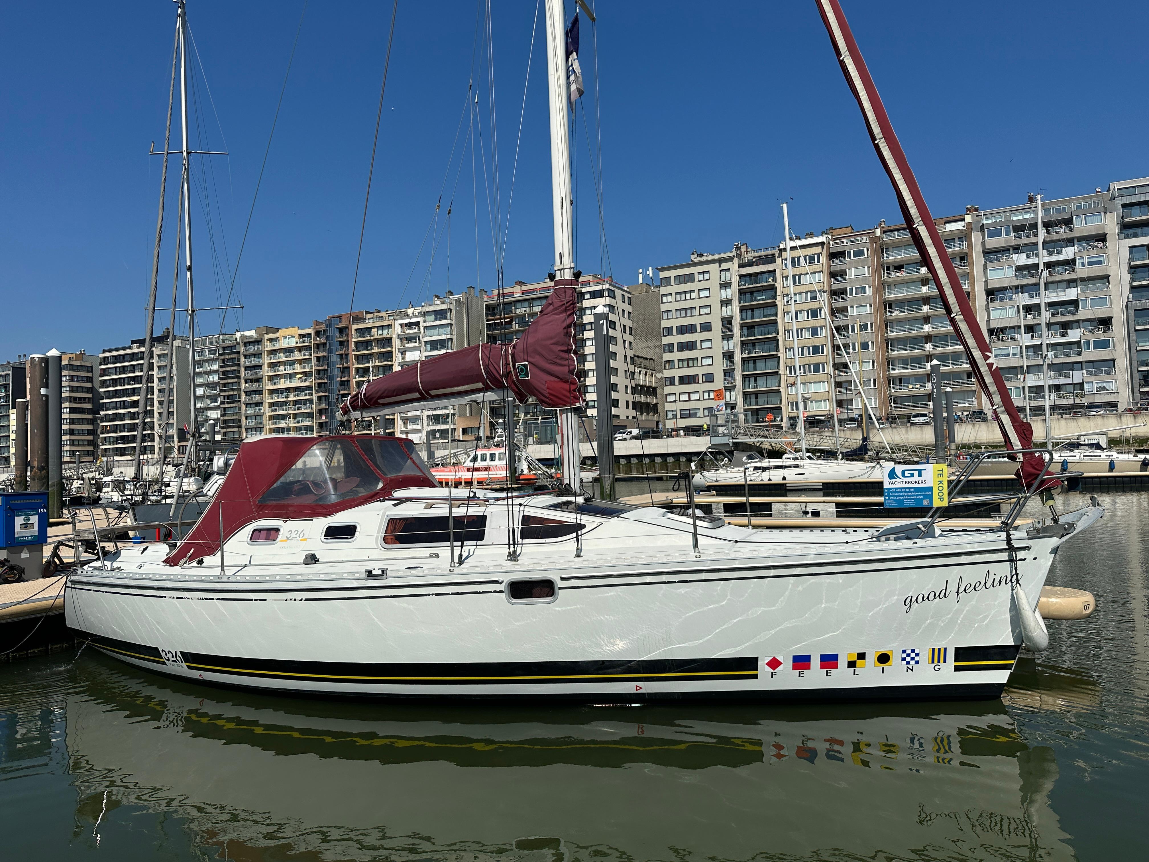Good Feeling is a Kirie 326 from 1994, carefully maintained by her current owner, a professional mechanic. With a custom-made cockpit bench and all exterior canvas in Bordeaux red, she stands out with character and thoughtful comfort features.