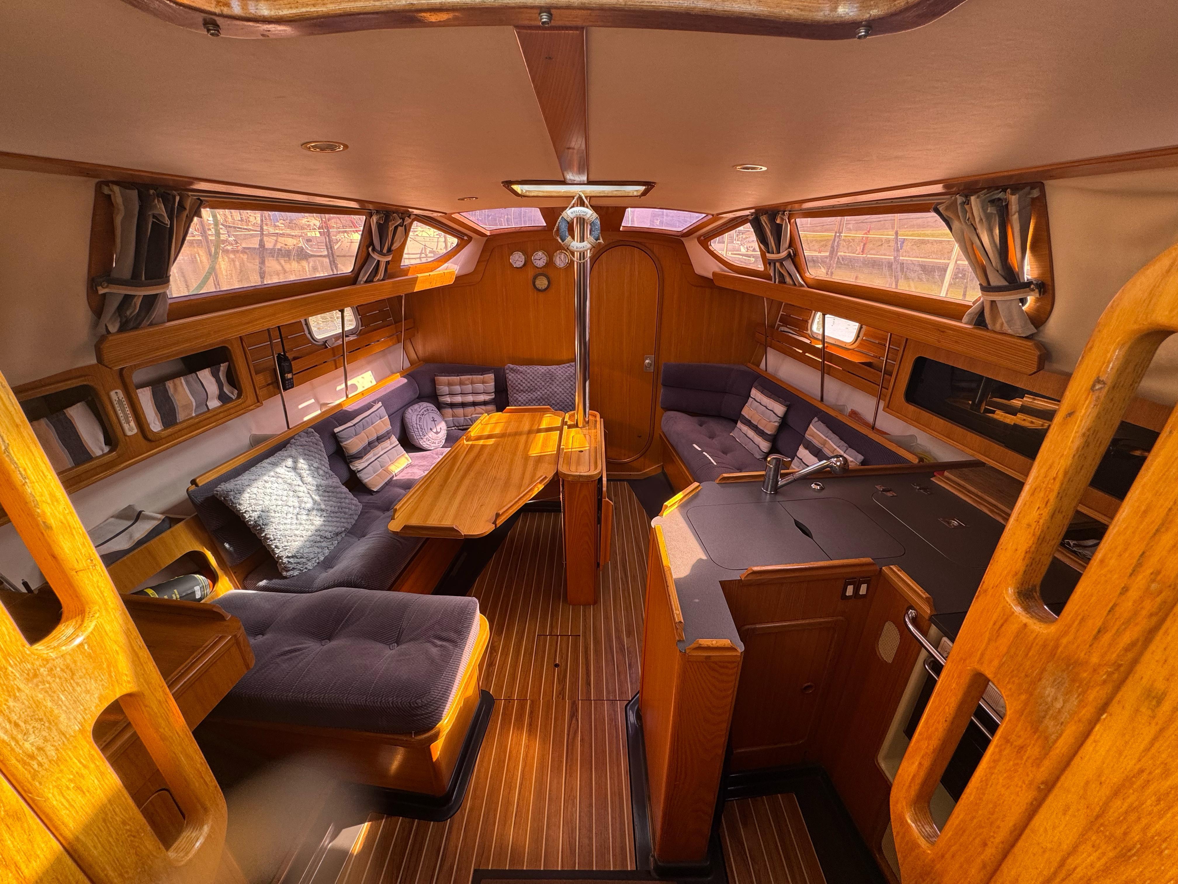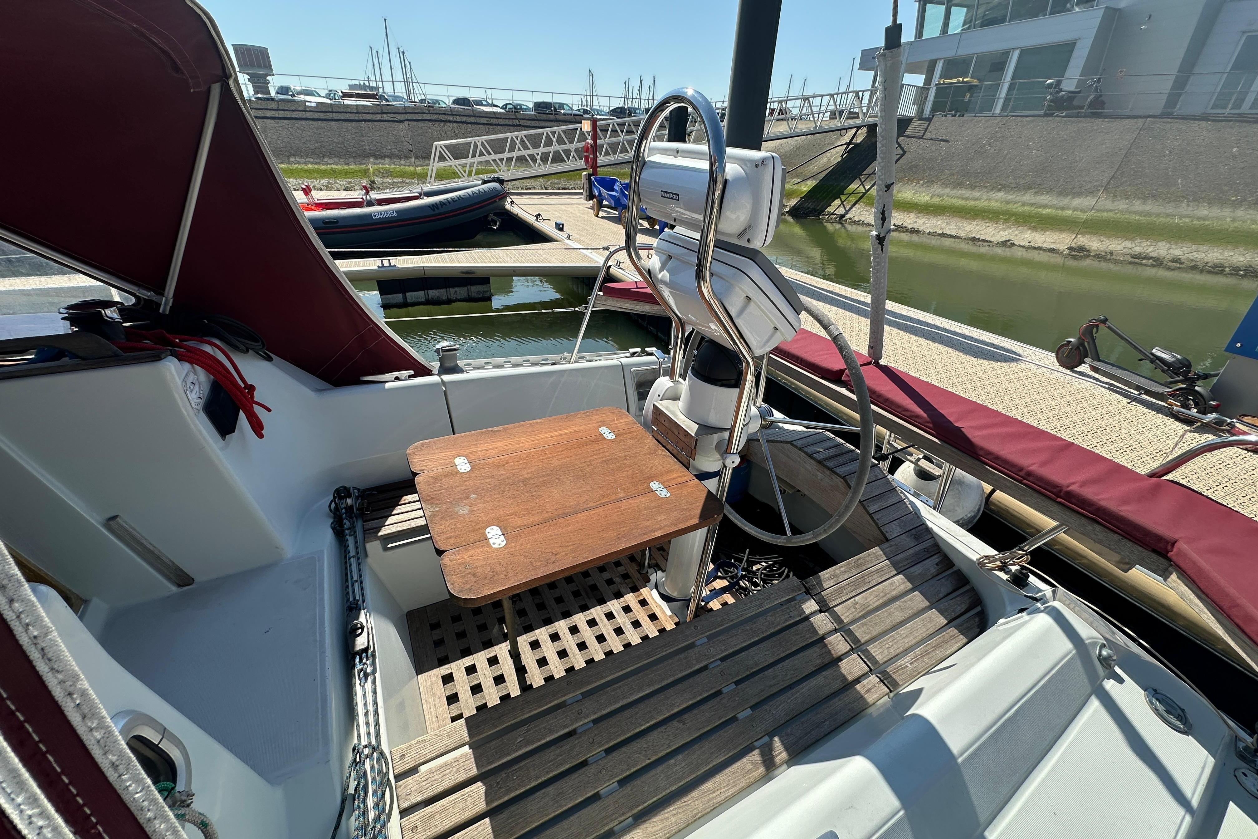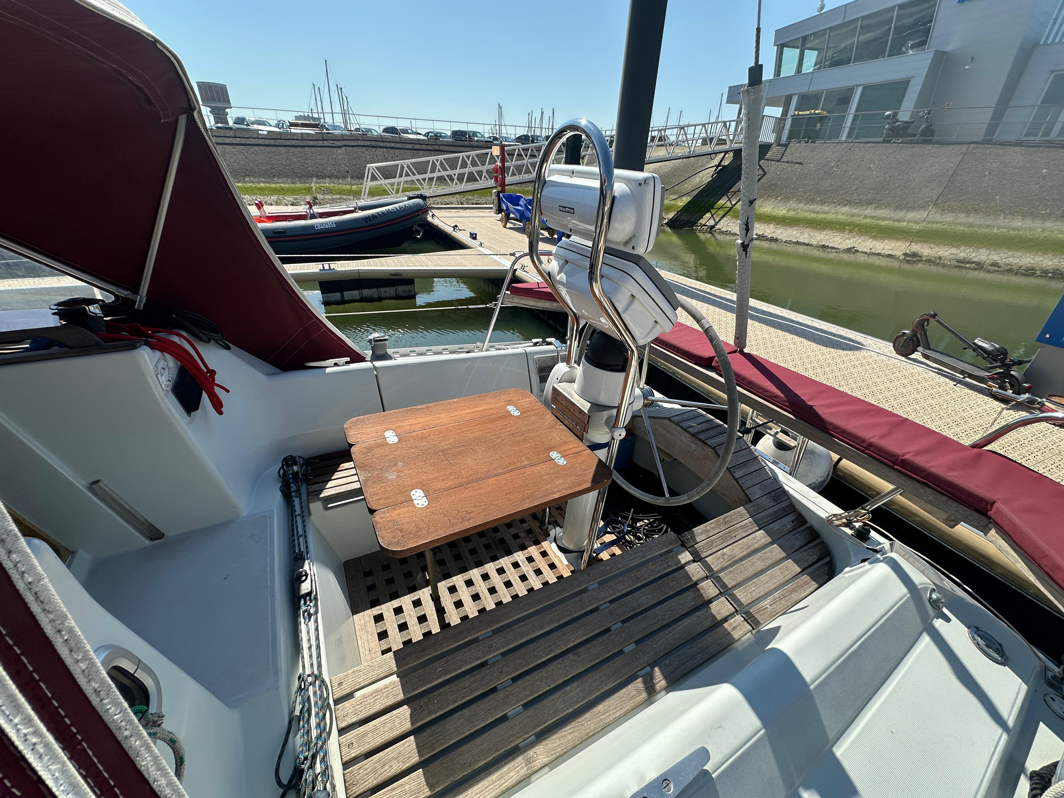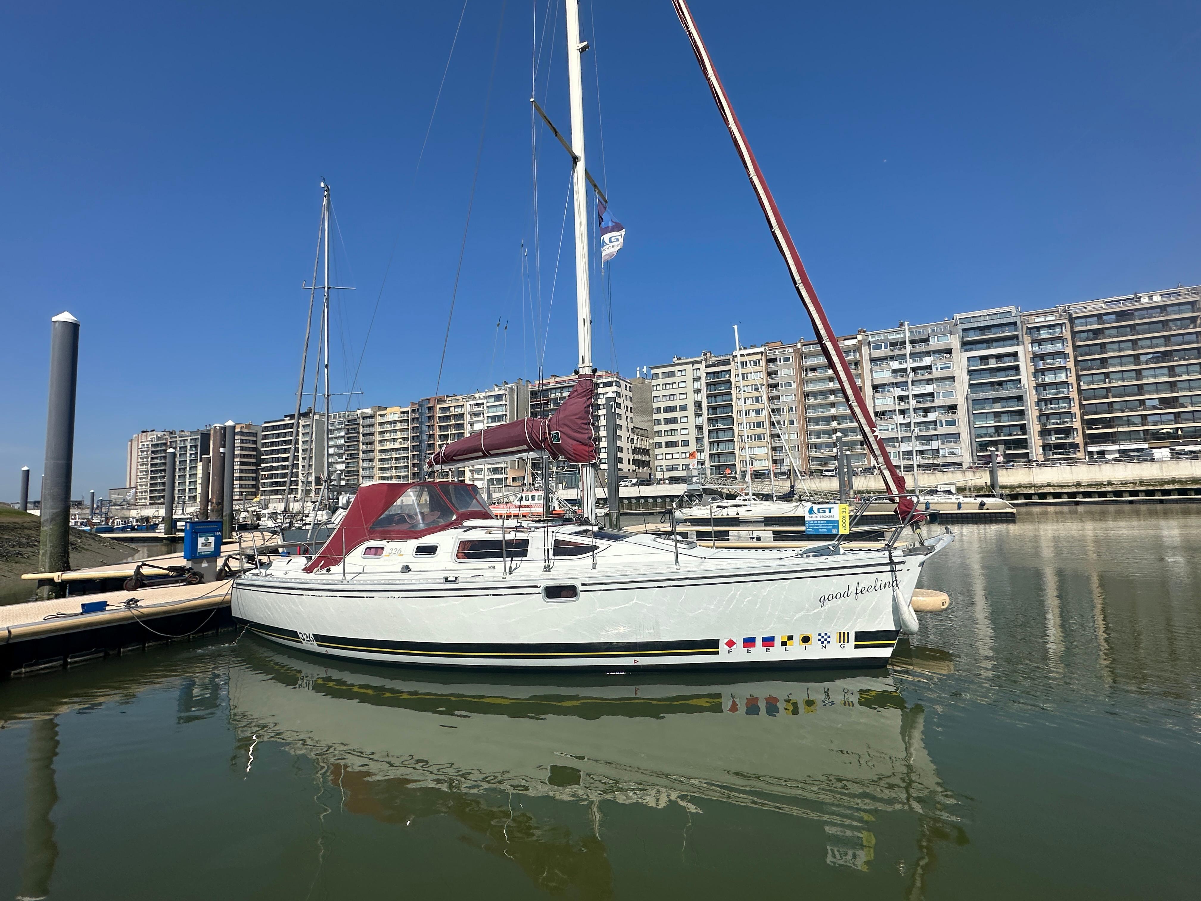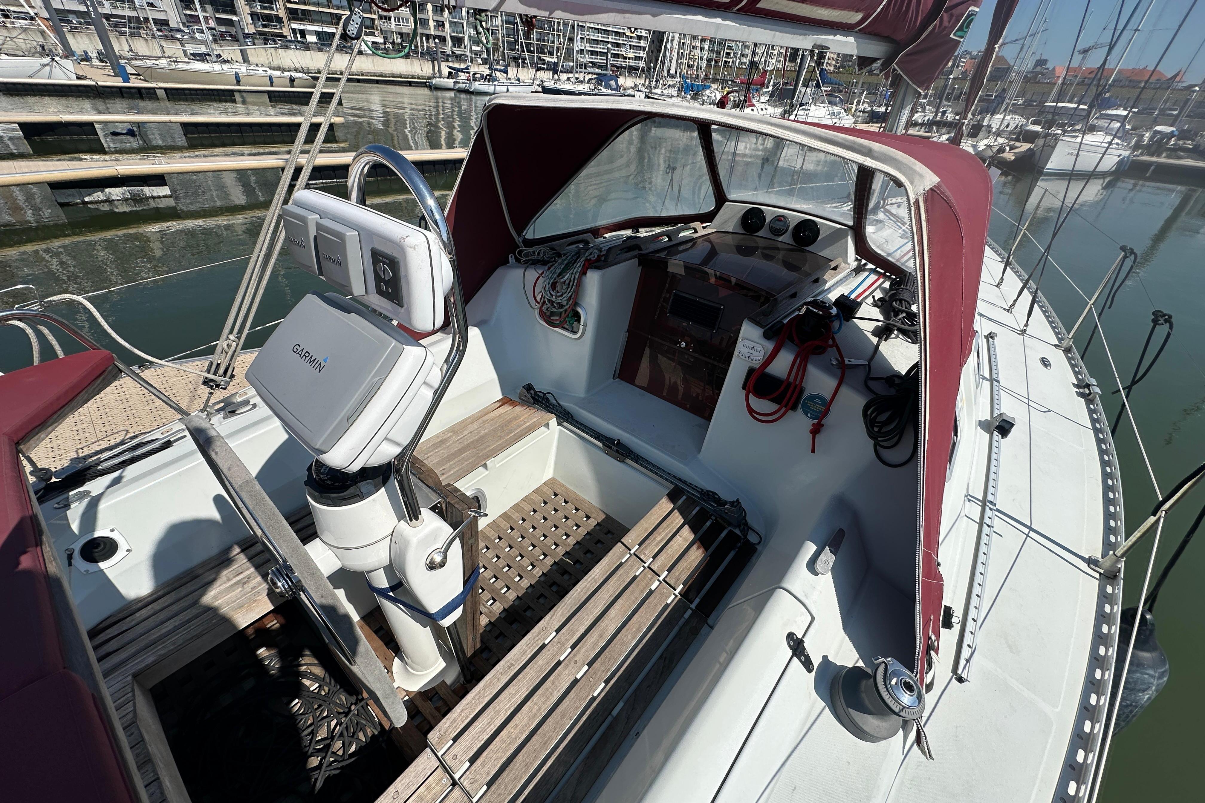 Good Feeling is a Kirie 326 from 1994, carefully maintained by her current owner, a professional mechanic. With a custom-made cockpit bench and all exterior canvas in Bordeaux red, she stands out with character and thoughtful comfort features.