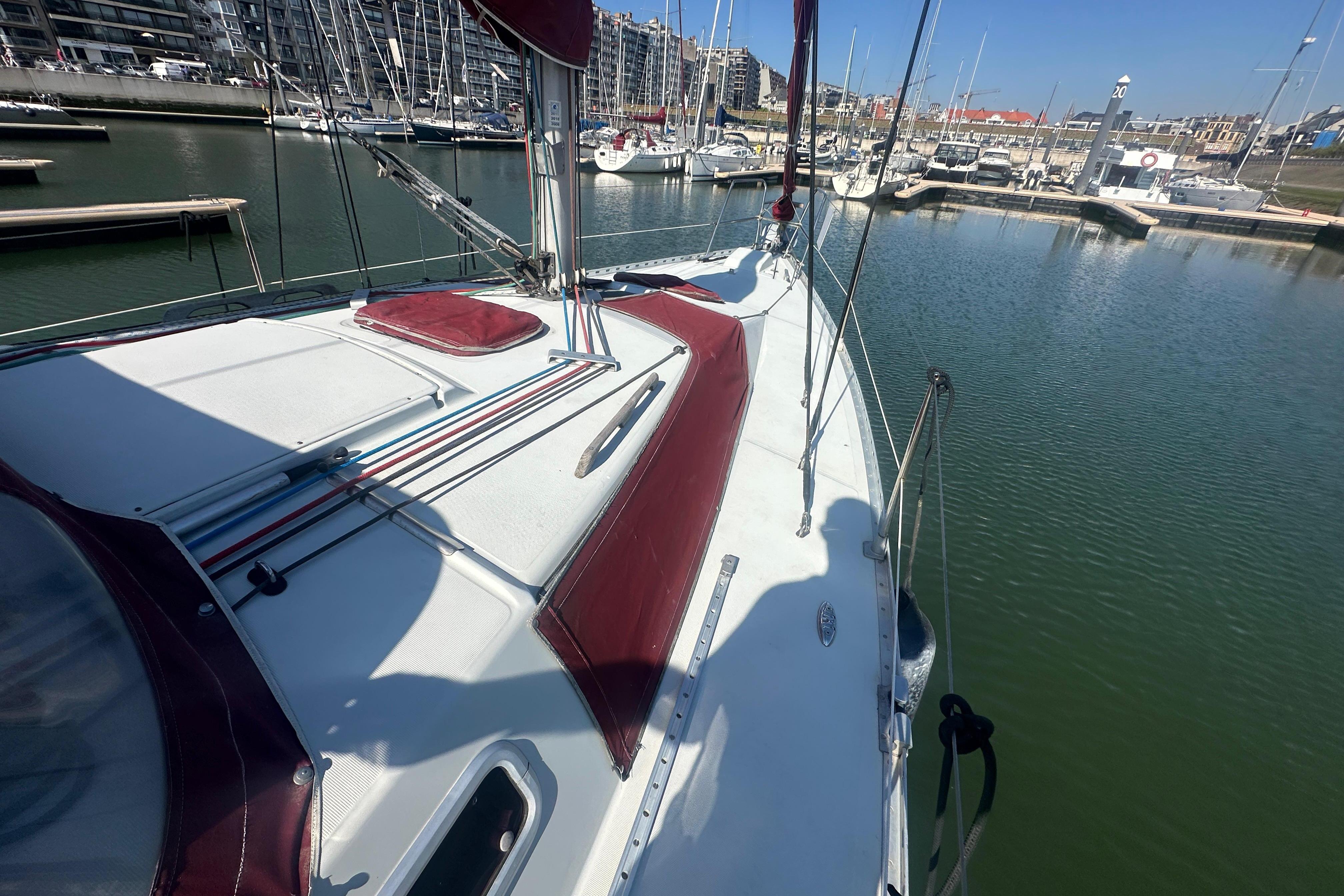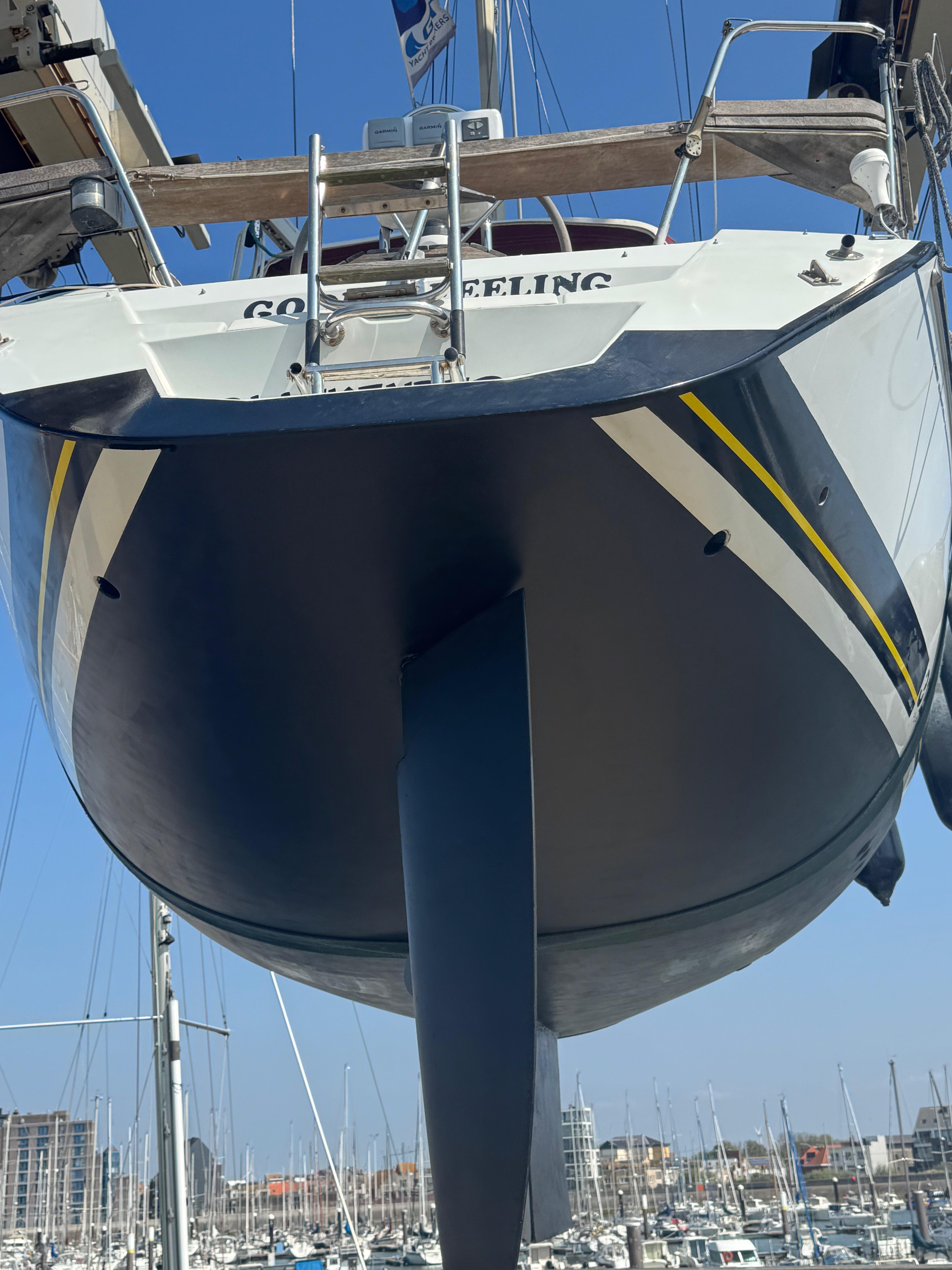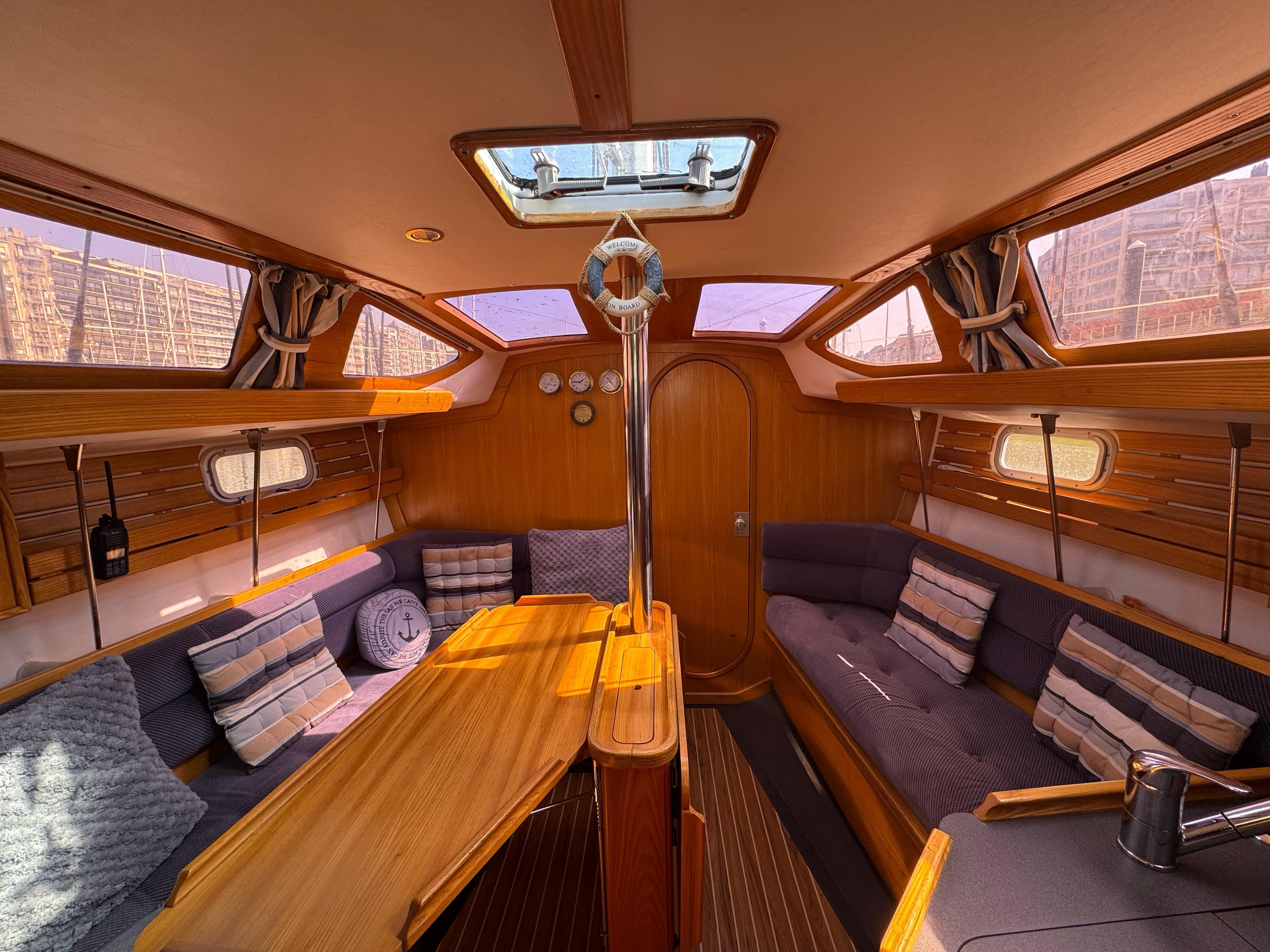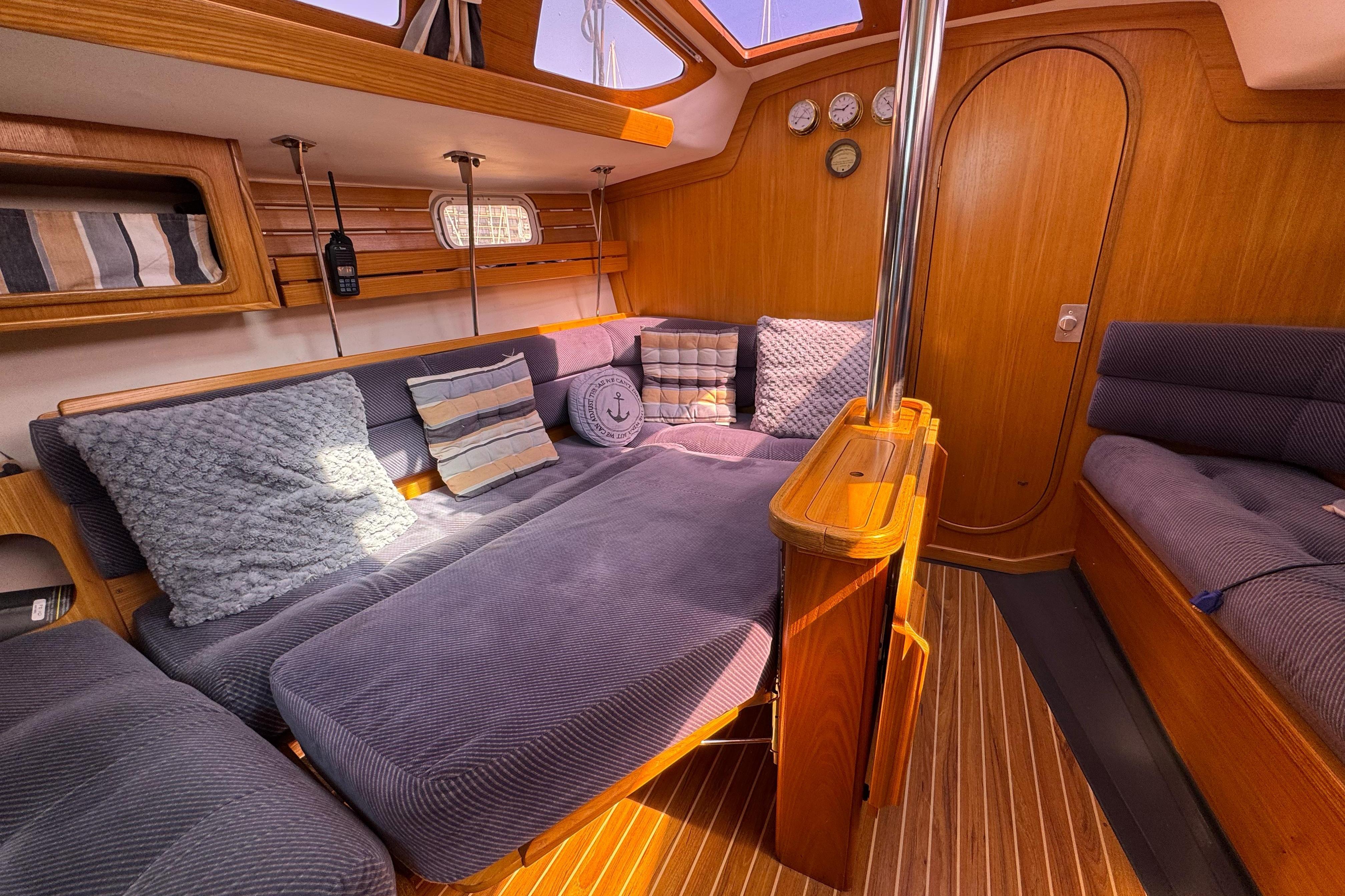 Good Feeling is a Kirie 326 from 1994, carefully maintained by her current owner, a professional mechanic. With a custom-made cockpit bench and all exterior canvas in Bordeaux red, she stands out with character and thoughtful comfort features.
