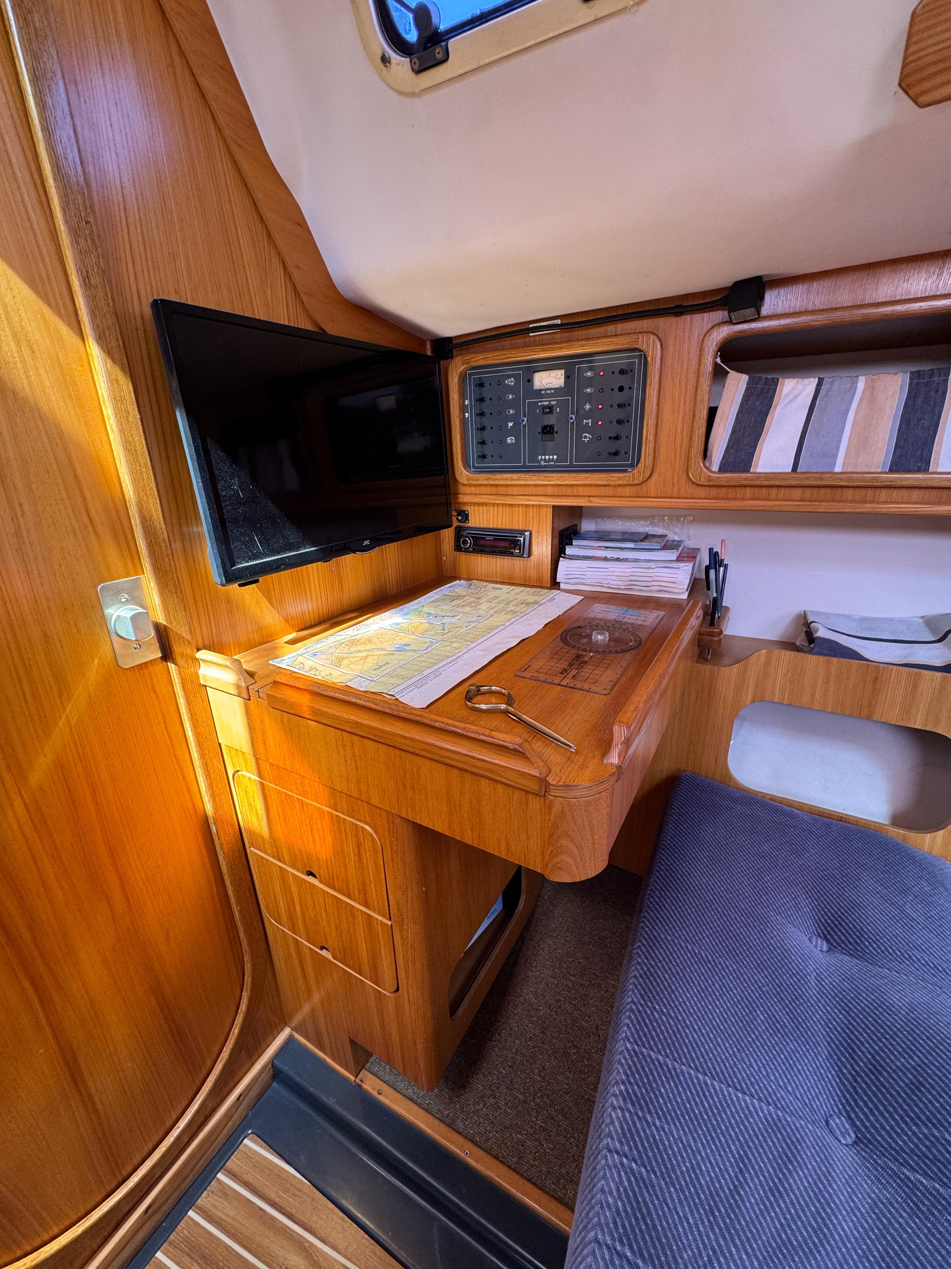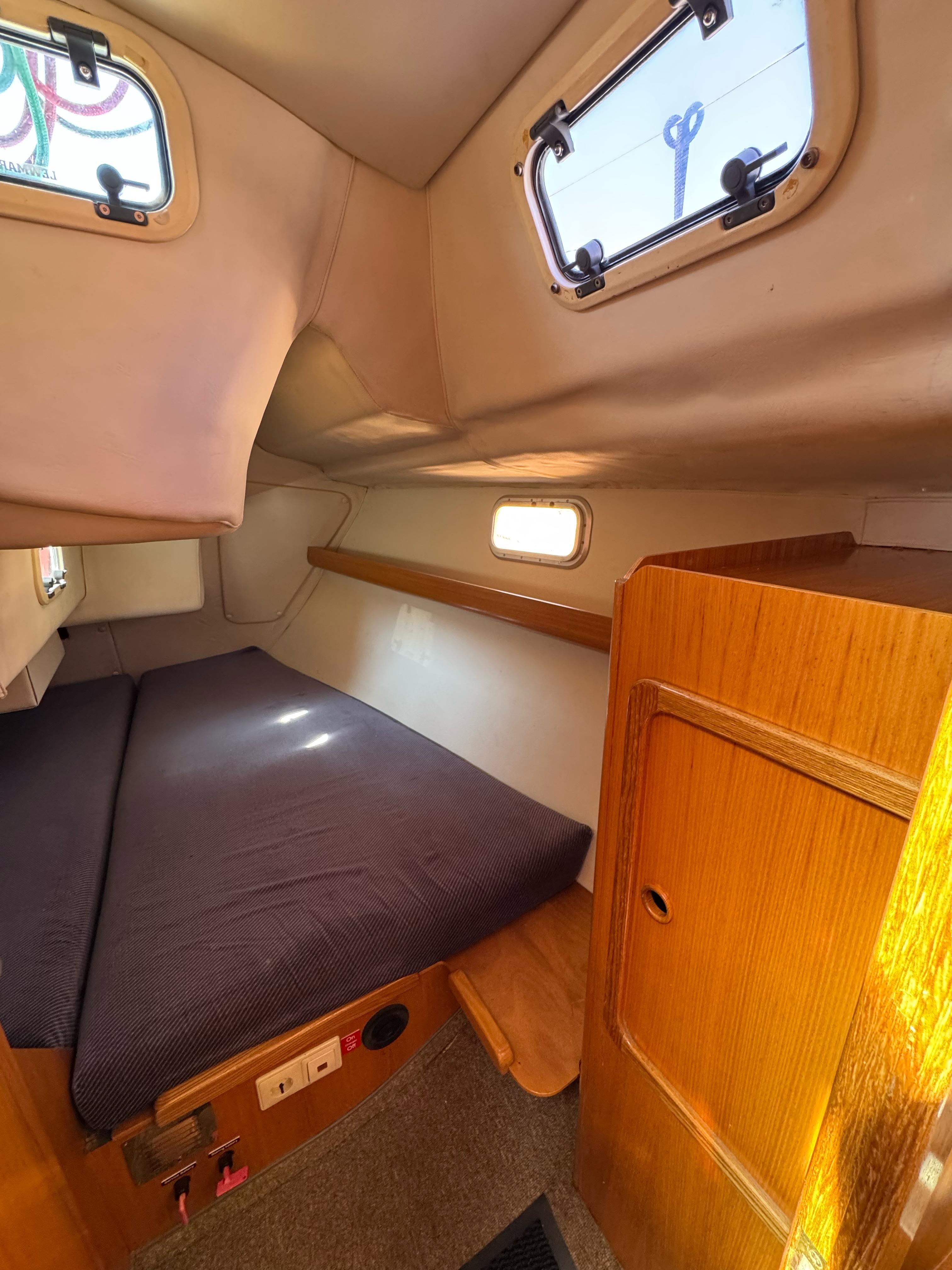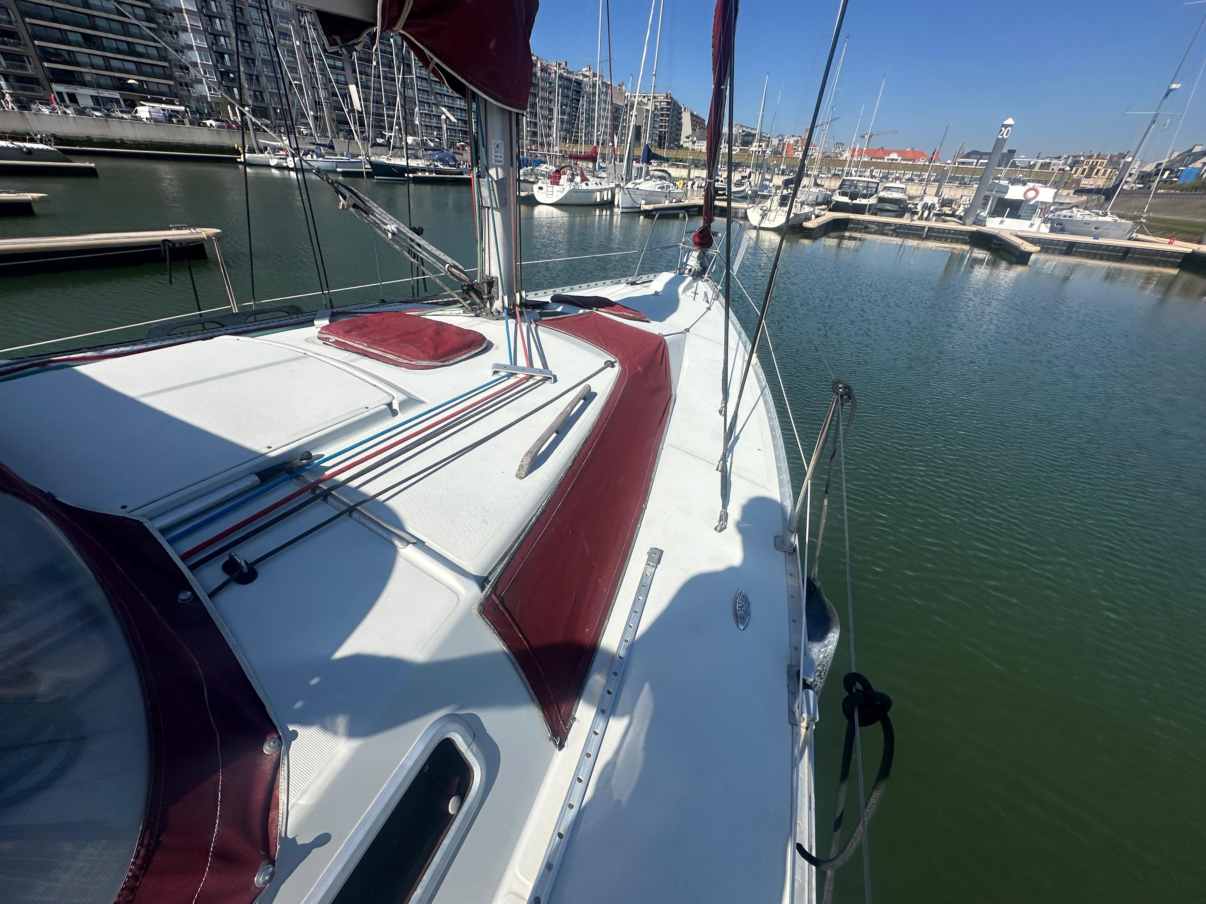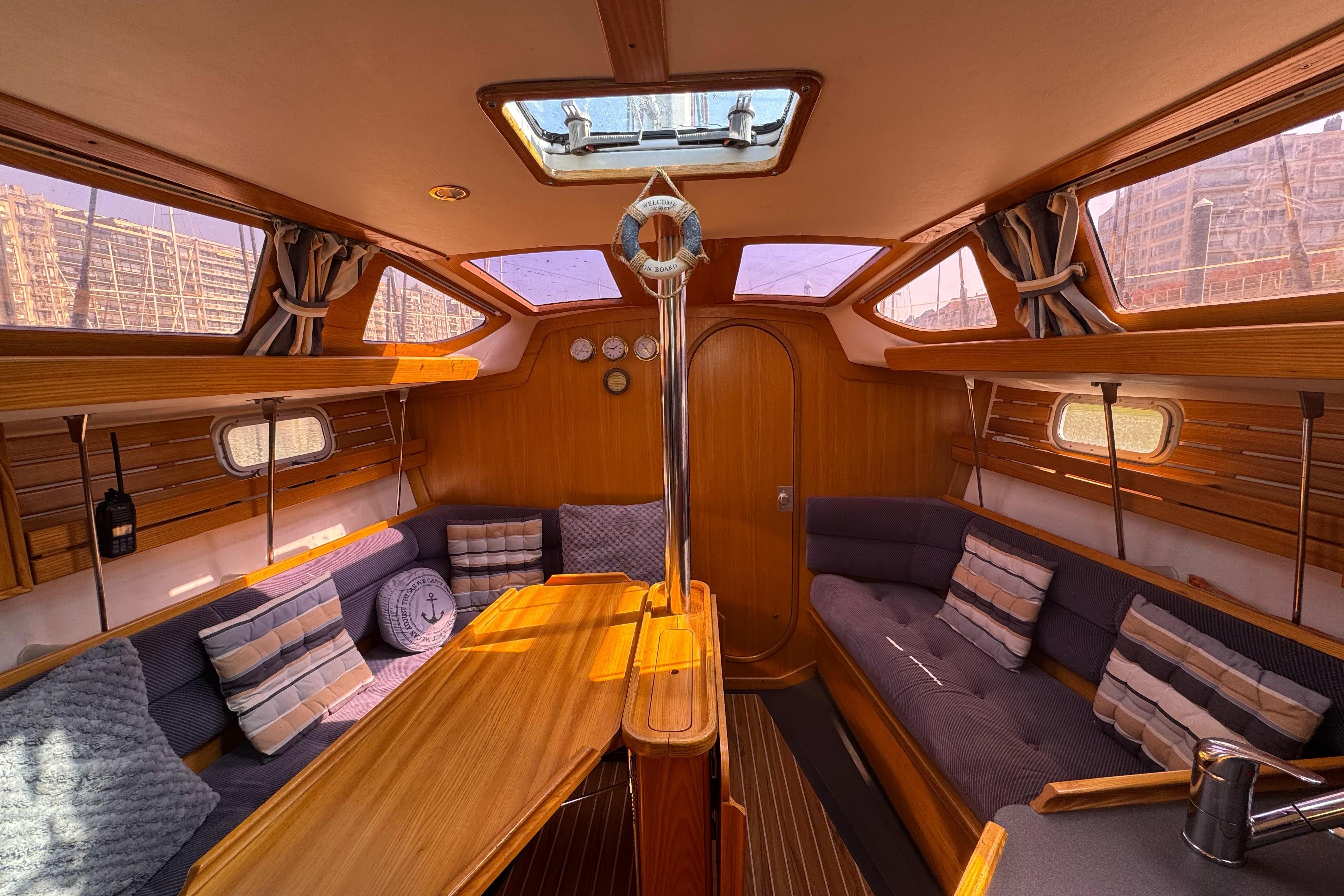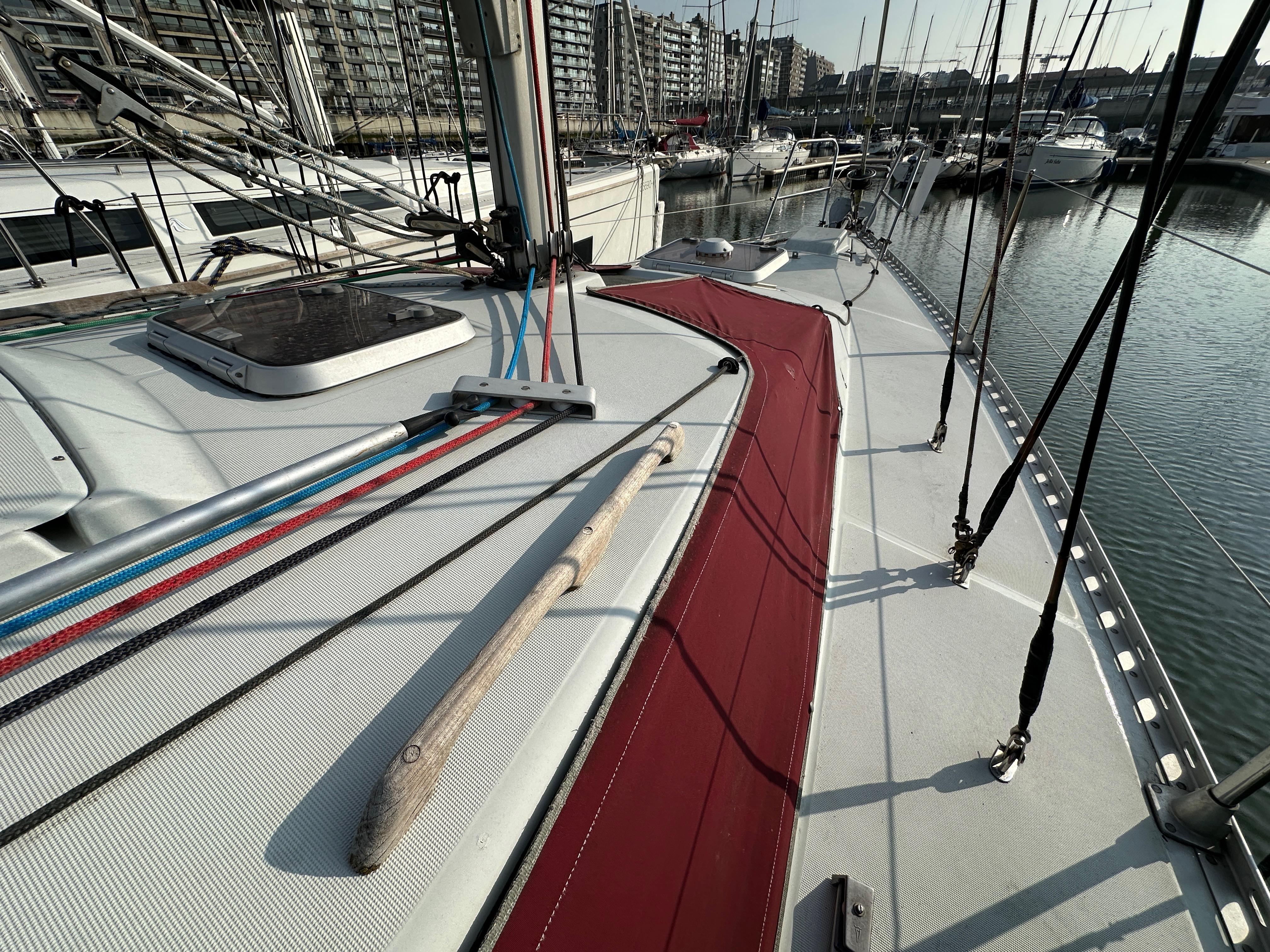 Good Feeling is a Kirie 326 from 1994, carefully maintained by her current owner, a professional mechanic. With a custom-made cockpit bench and all exterior canvas in Bordeaux red, she stands out with character and thoughtful comfort features.