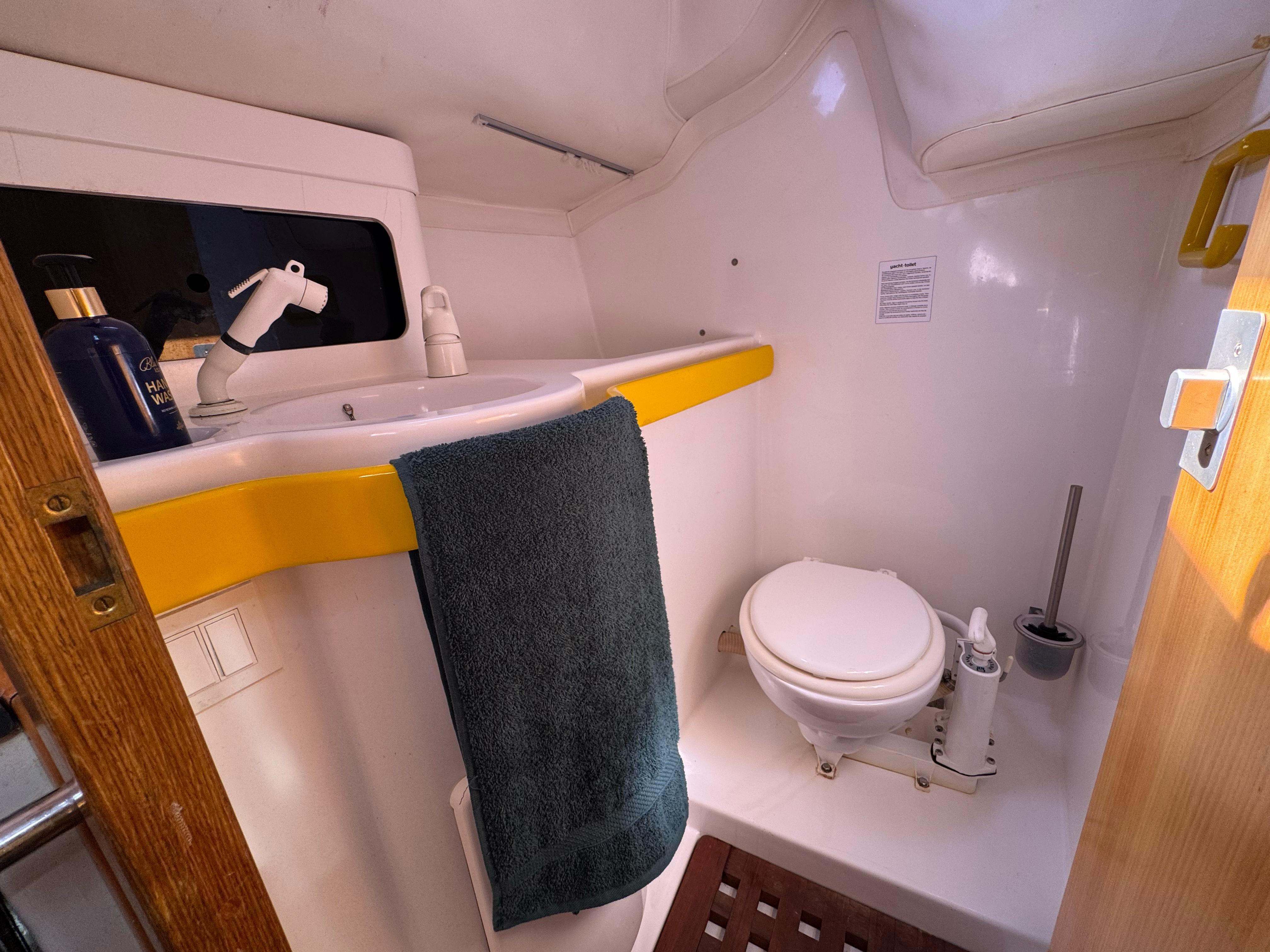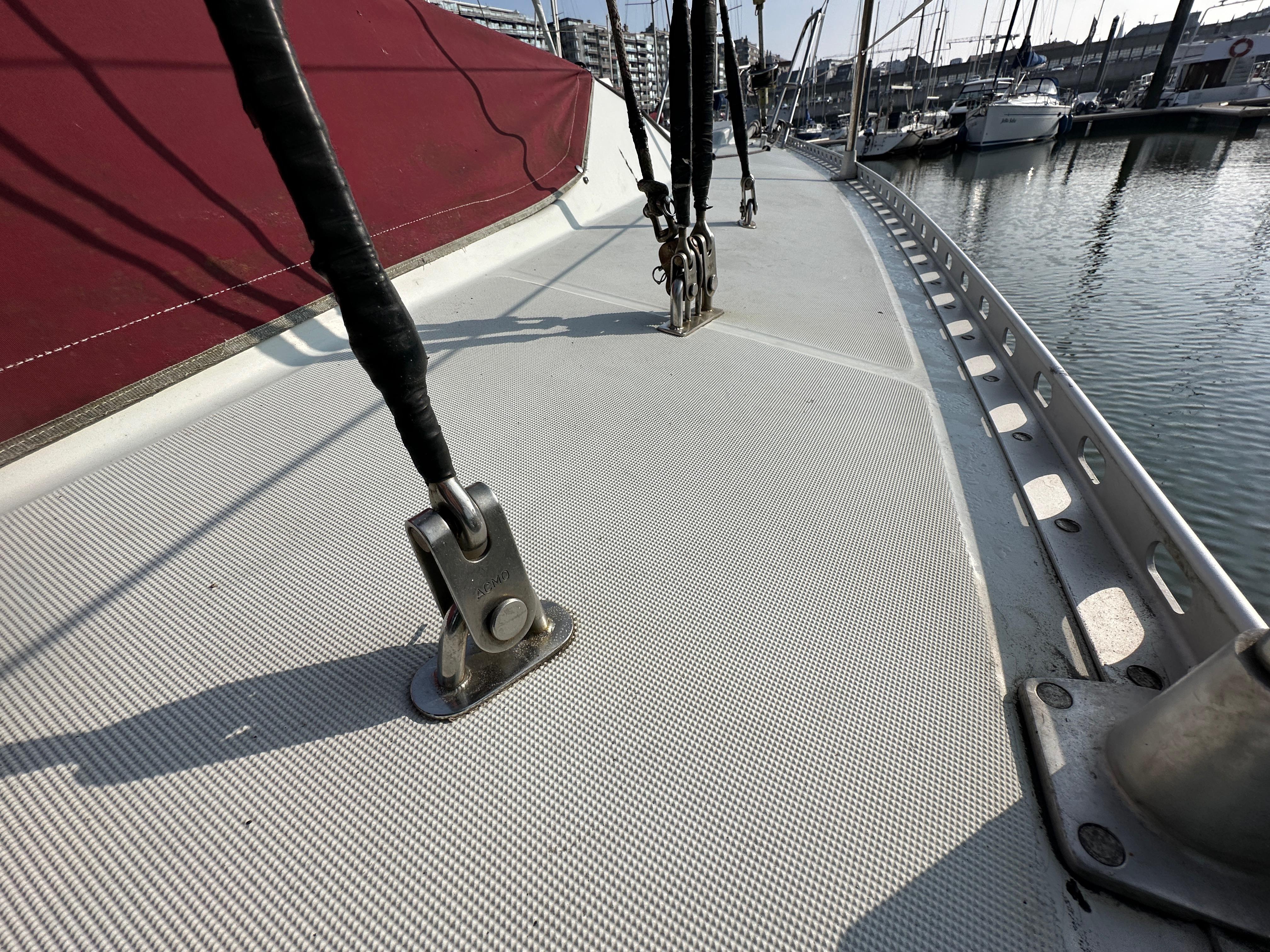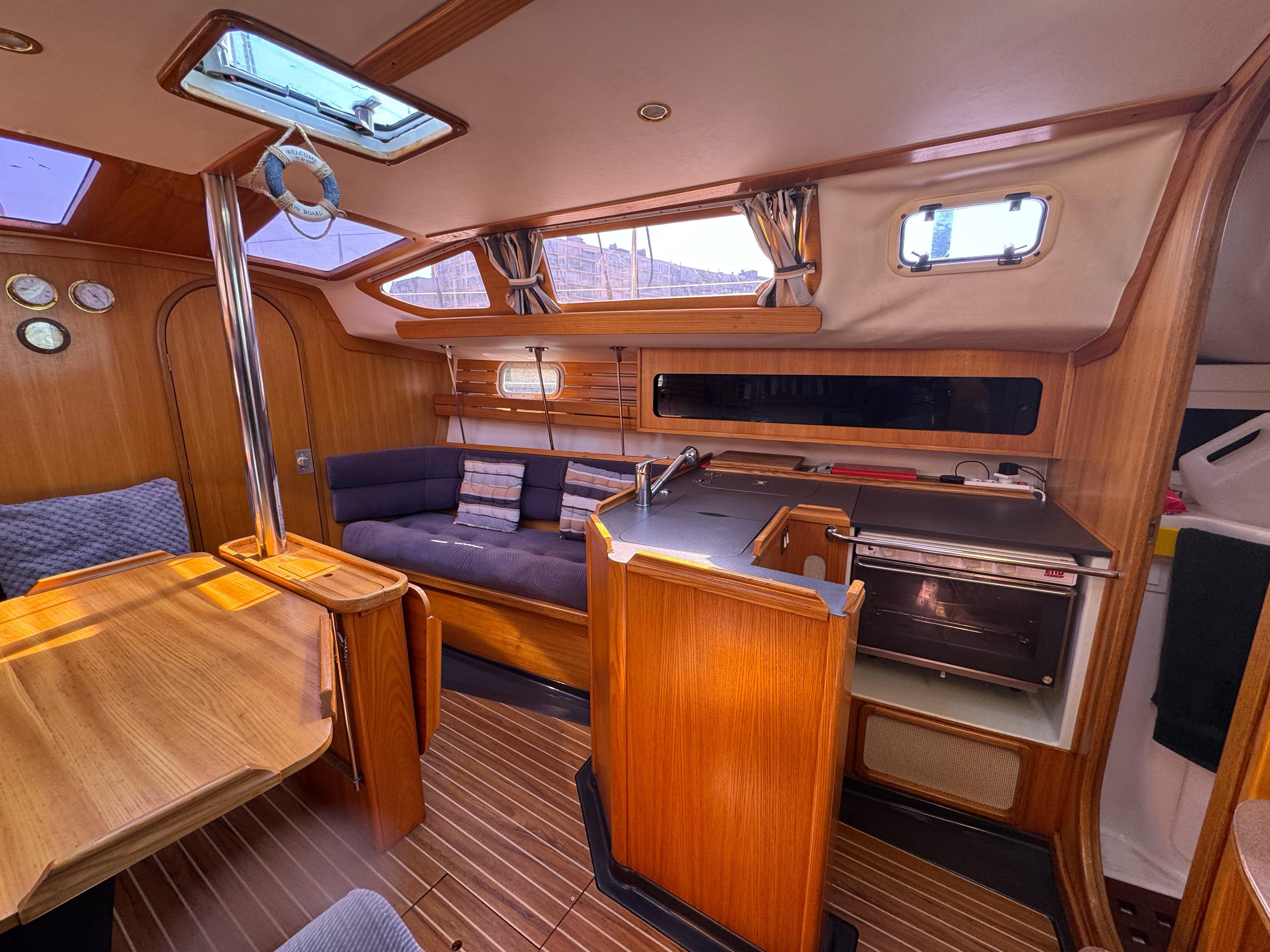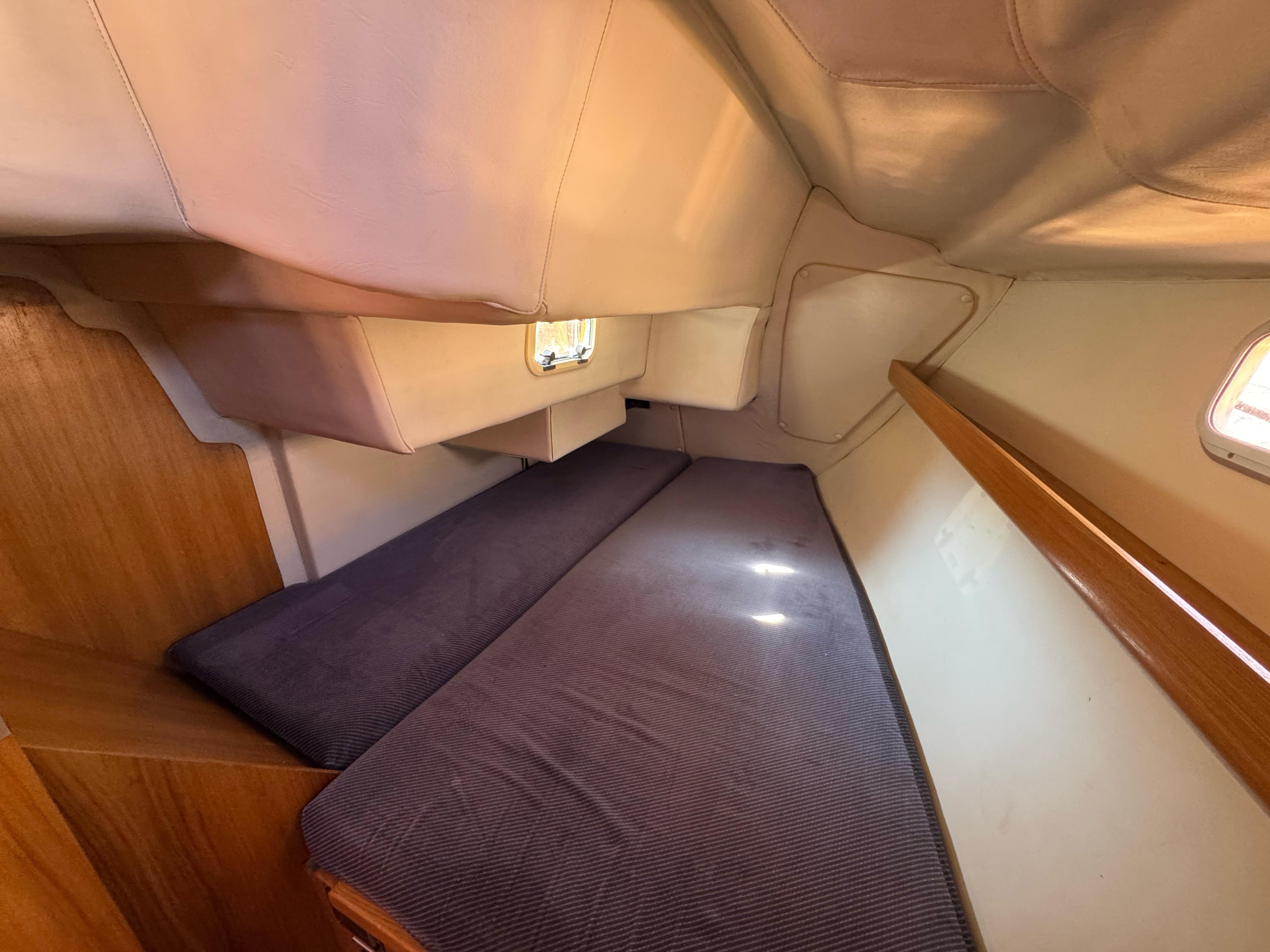 Good Feeling is a Kirie 326 from 1994, carefully maintained by her current owner, a professional mechanic. With a custom-made cockpit bench and all exterior canvas in Bordeaux red, she stands out with character and thoughtful comfort features.