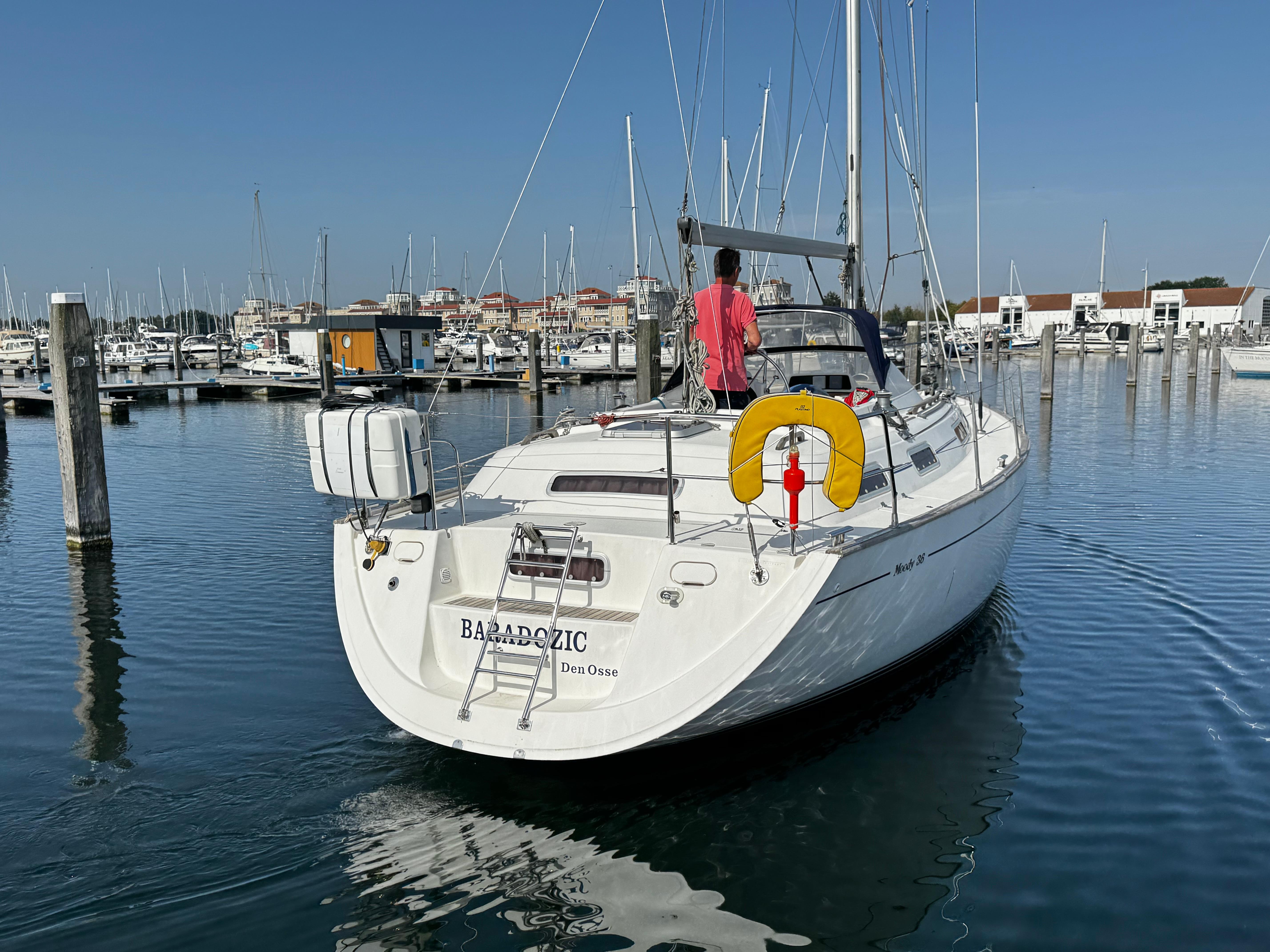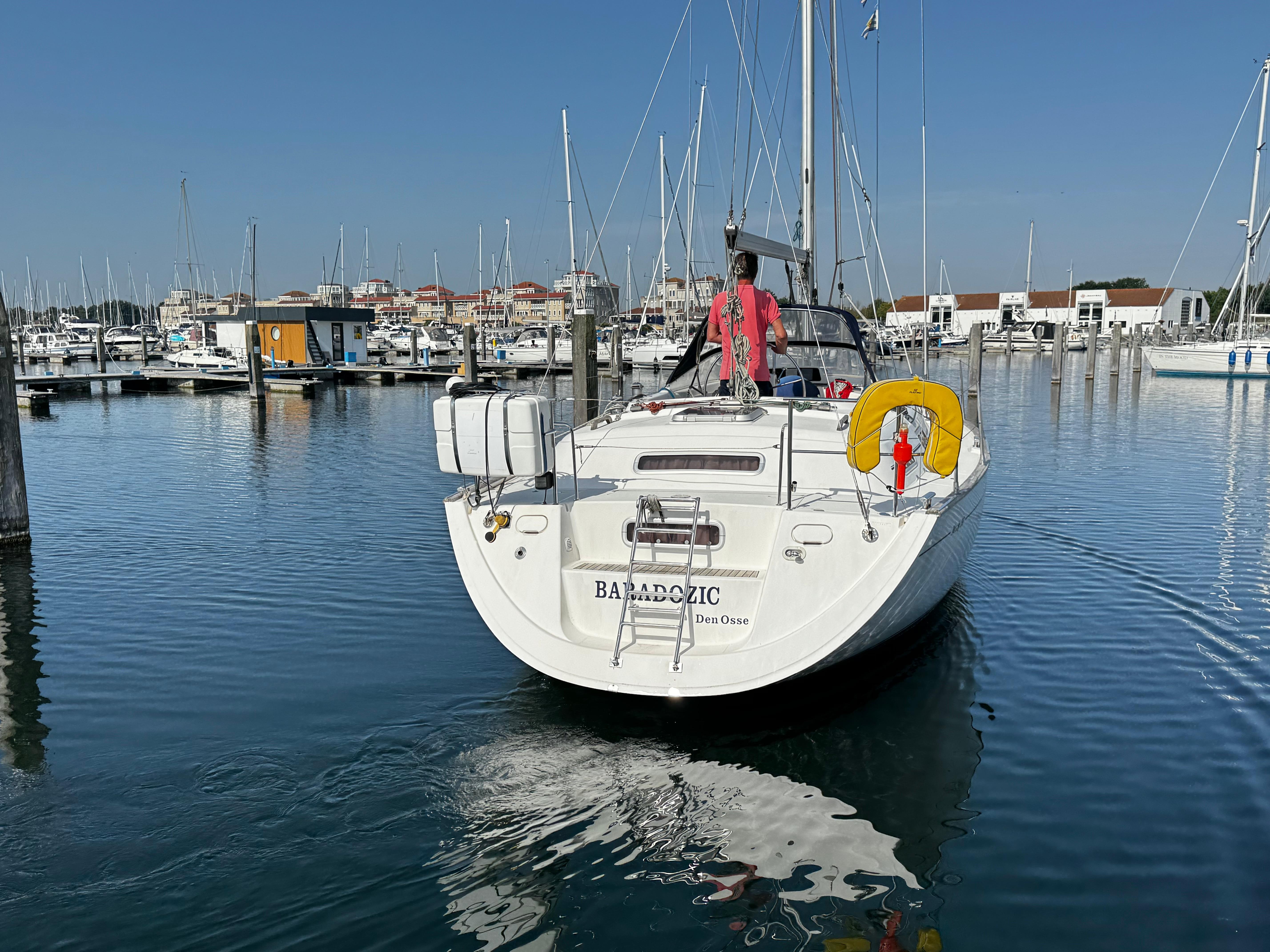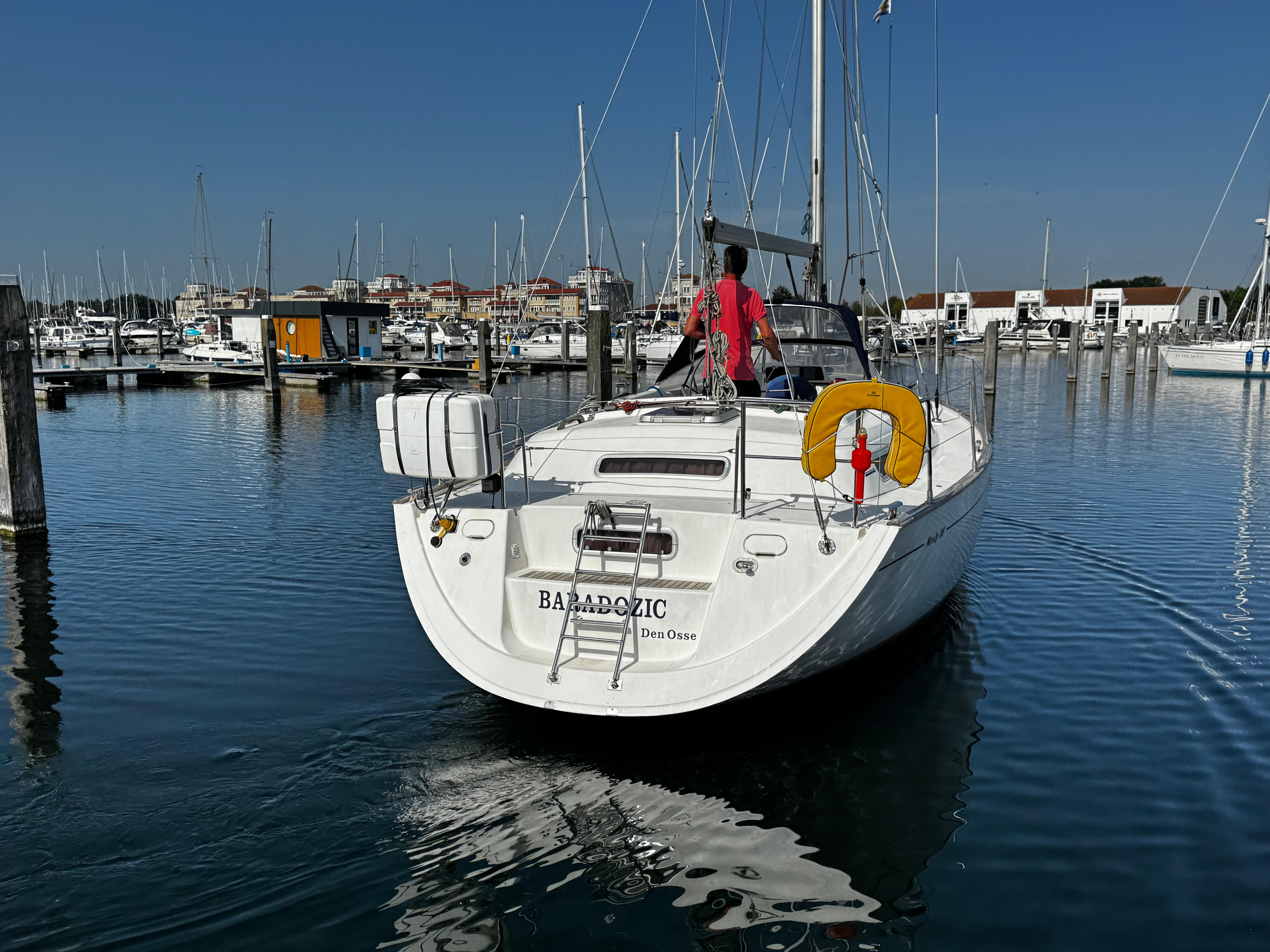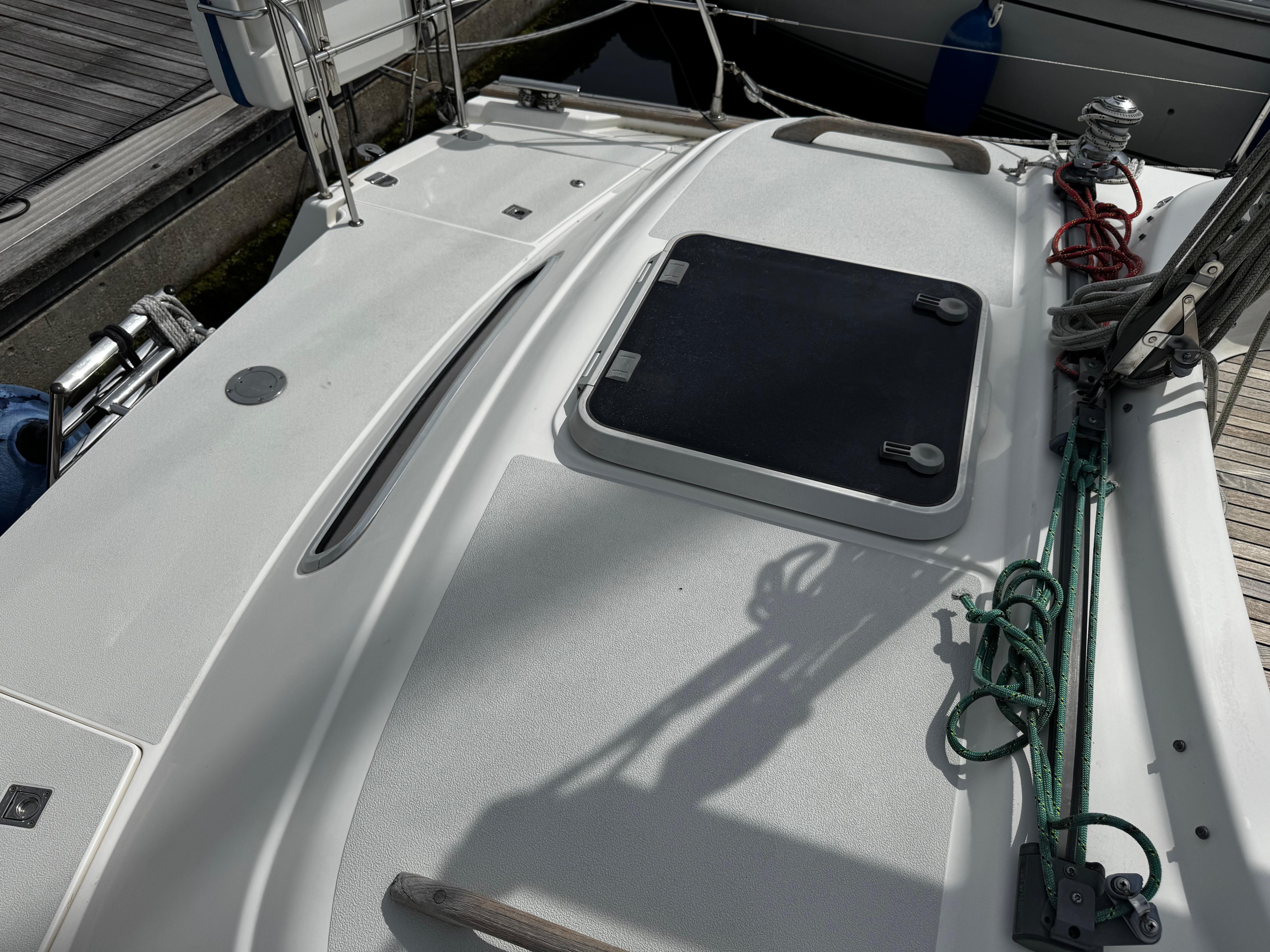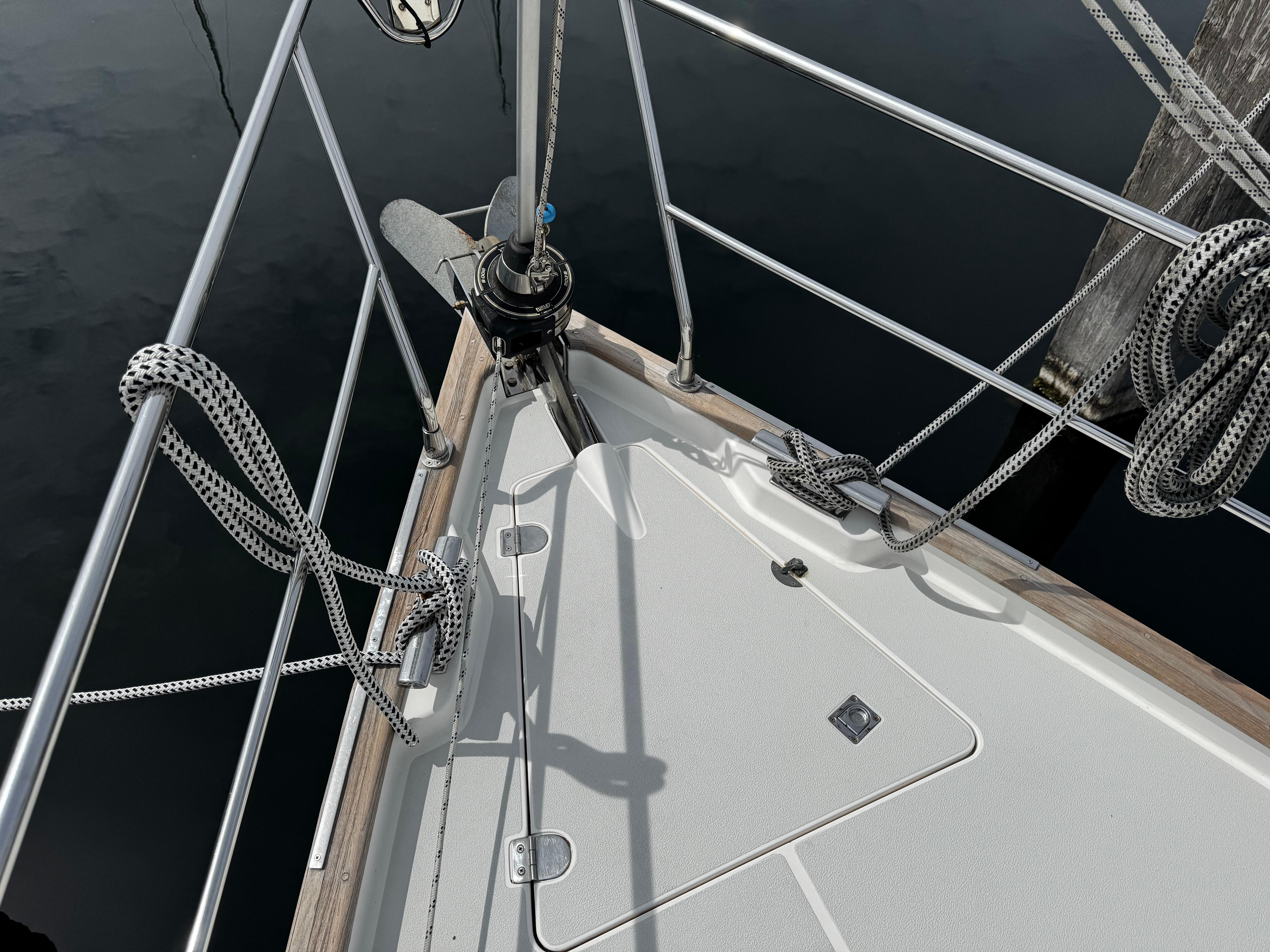 The rig is conservative and well laid out, perfect for sailing with a small crew or even single-handed. All lines lead back to the cockpit, and the winches are within easy reach. A sturdy sprayhood provides protection in bad weather. Maneuvering under sail or power is straightforward, aided by the dependable engine installation and good visibility from the helm.