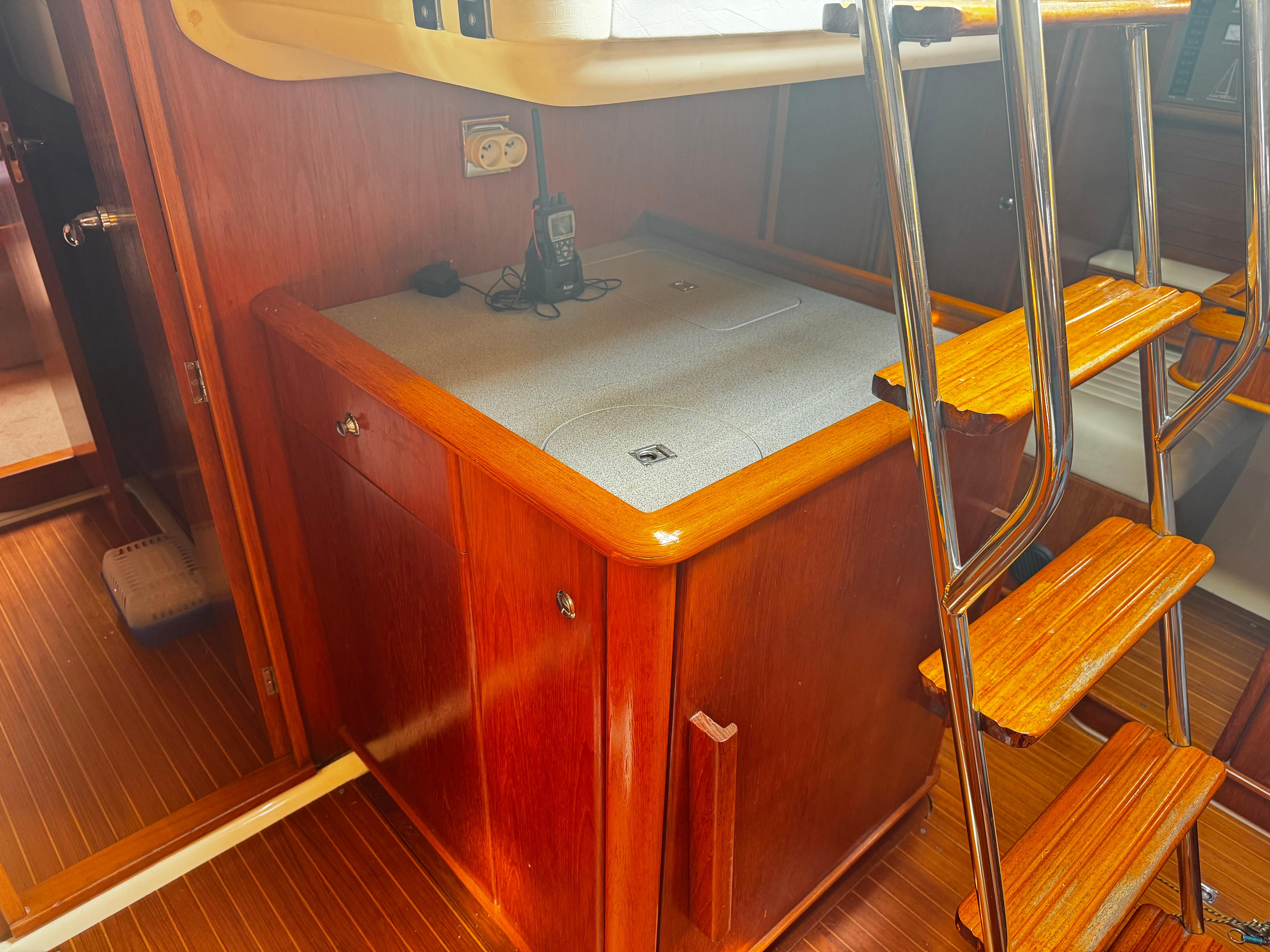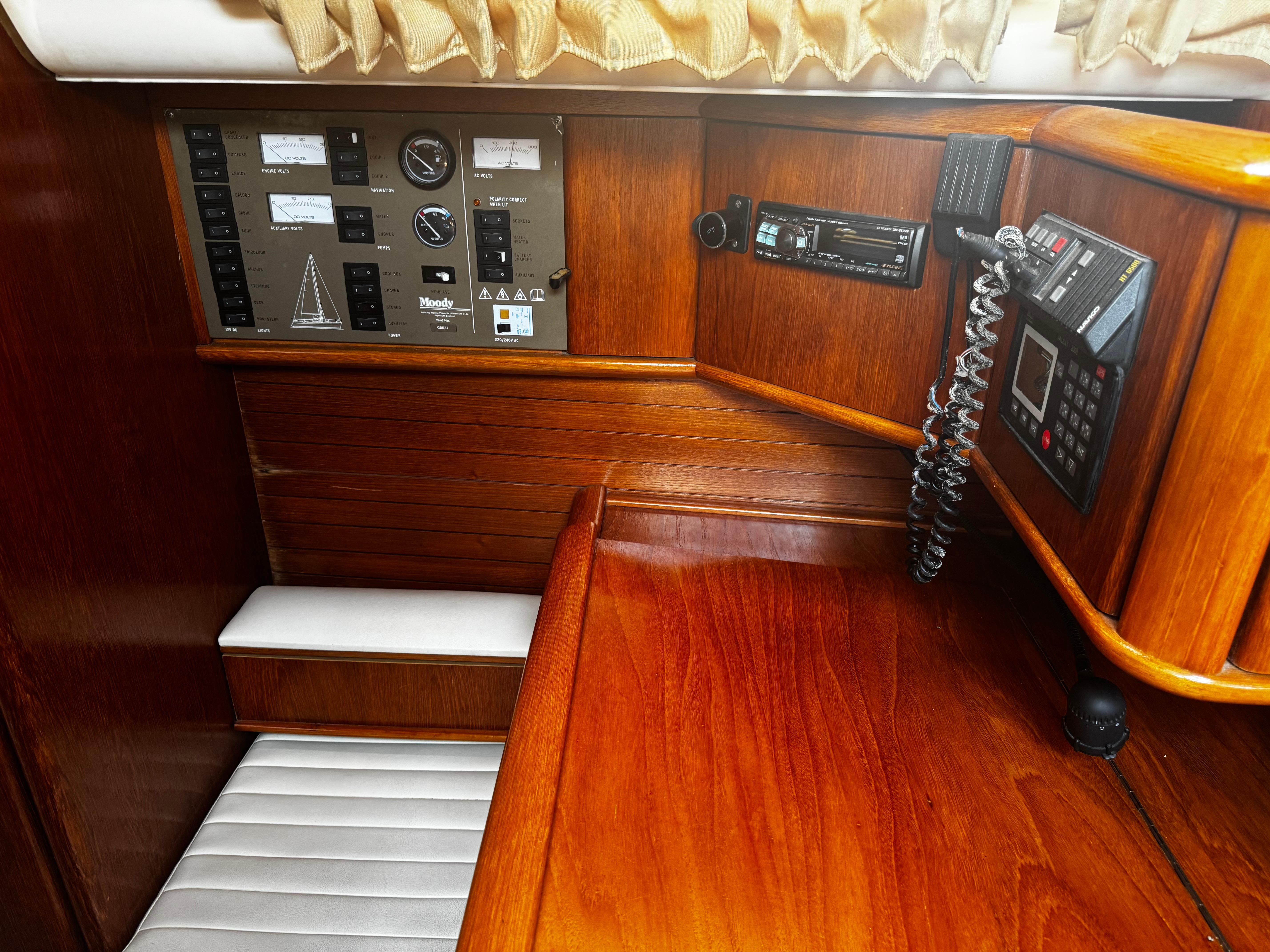 Moody yachts from this era are known for their high build quality. The hull is solid laminate, with an integral keel and reinforced hull-to-deck joint. The interior is traditionally finished in solid wood, showcasing a level of craftsmanship that is rarely found in modern production yachts.