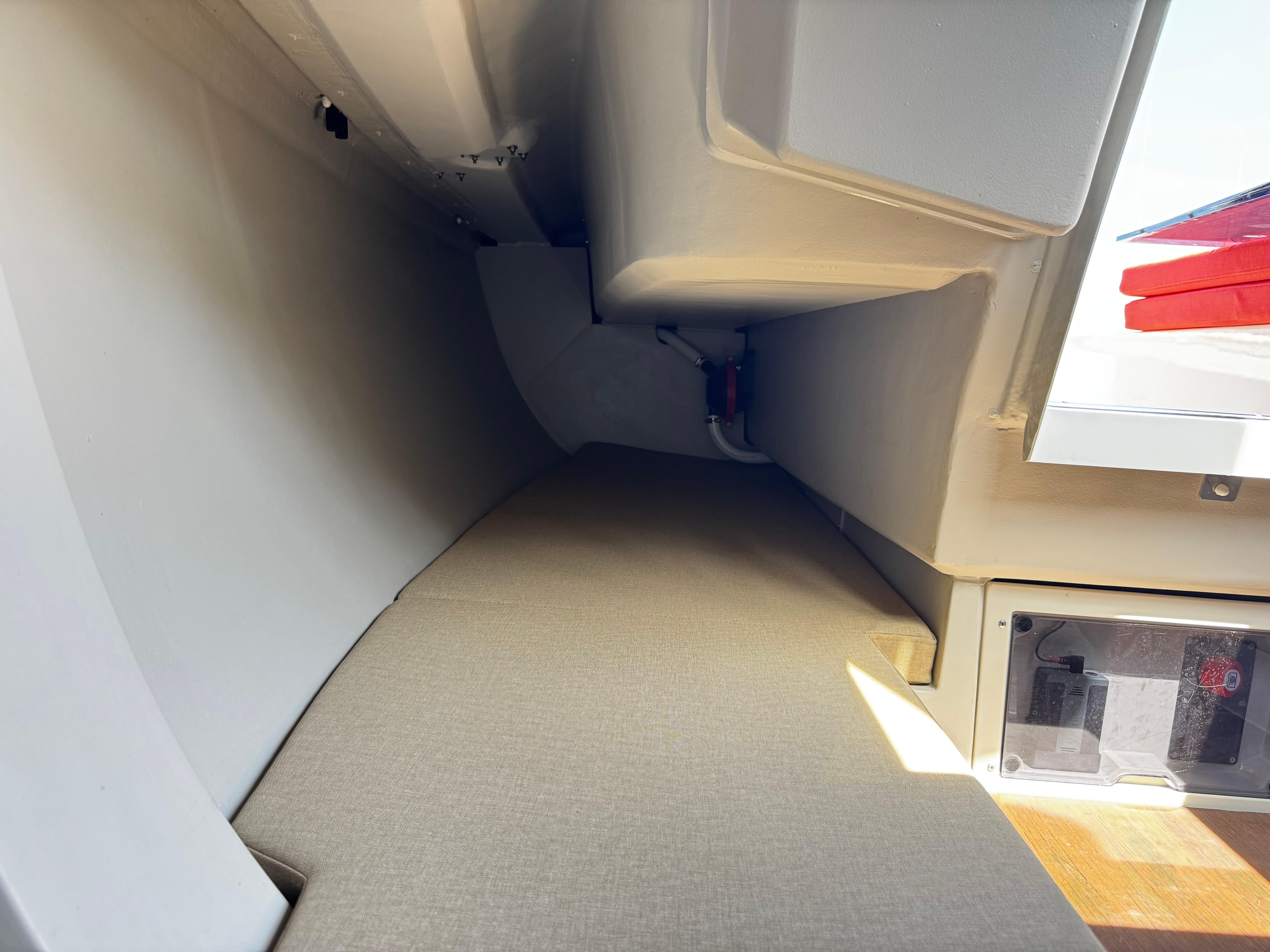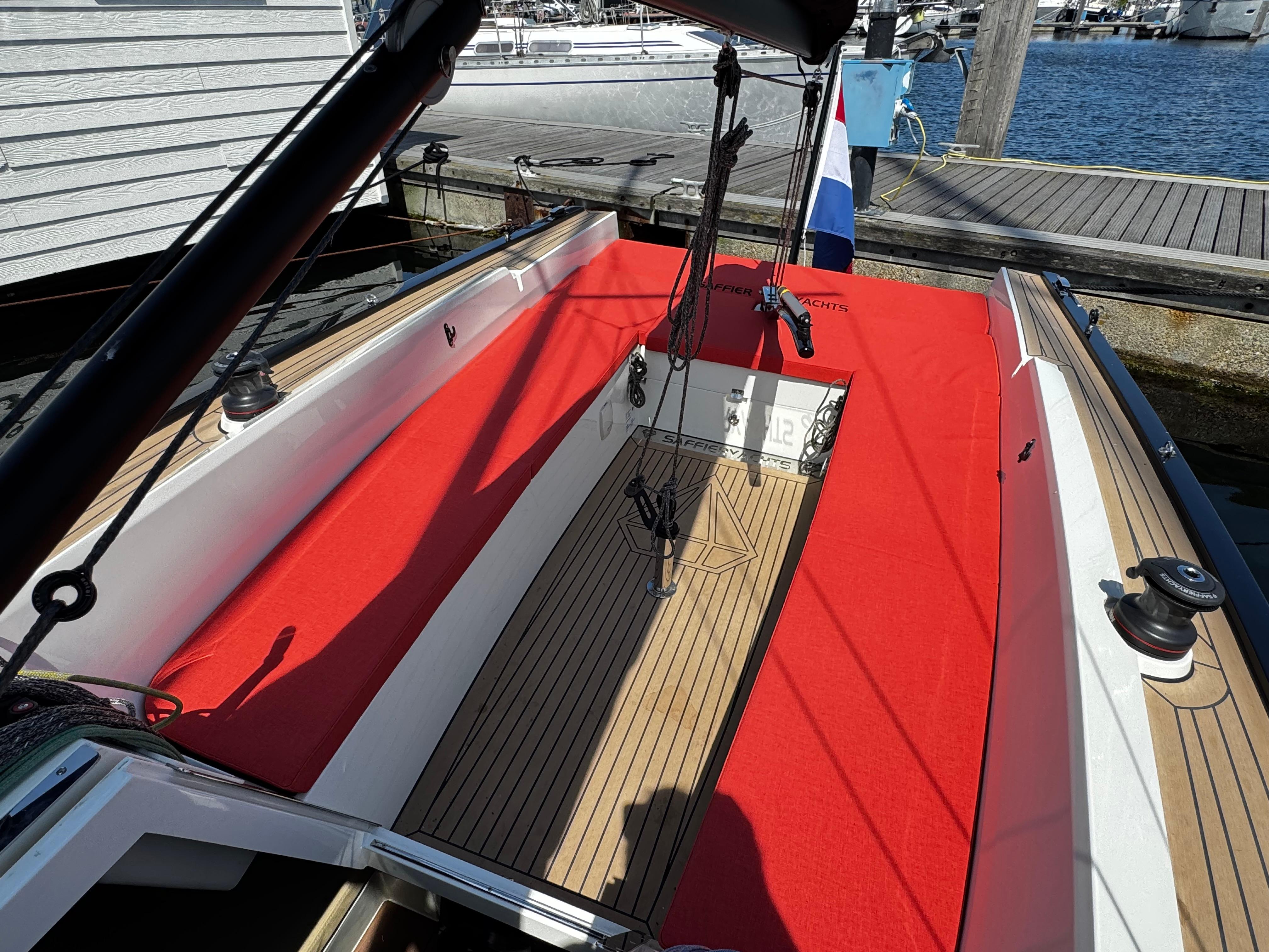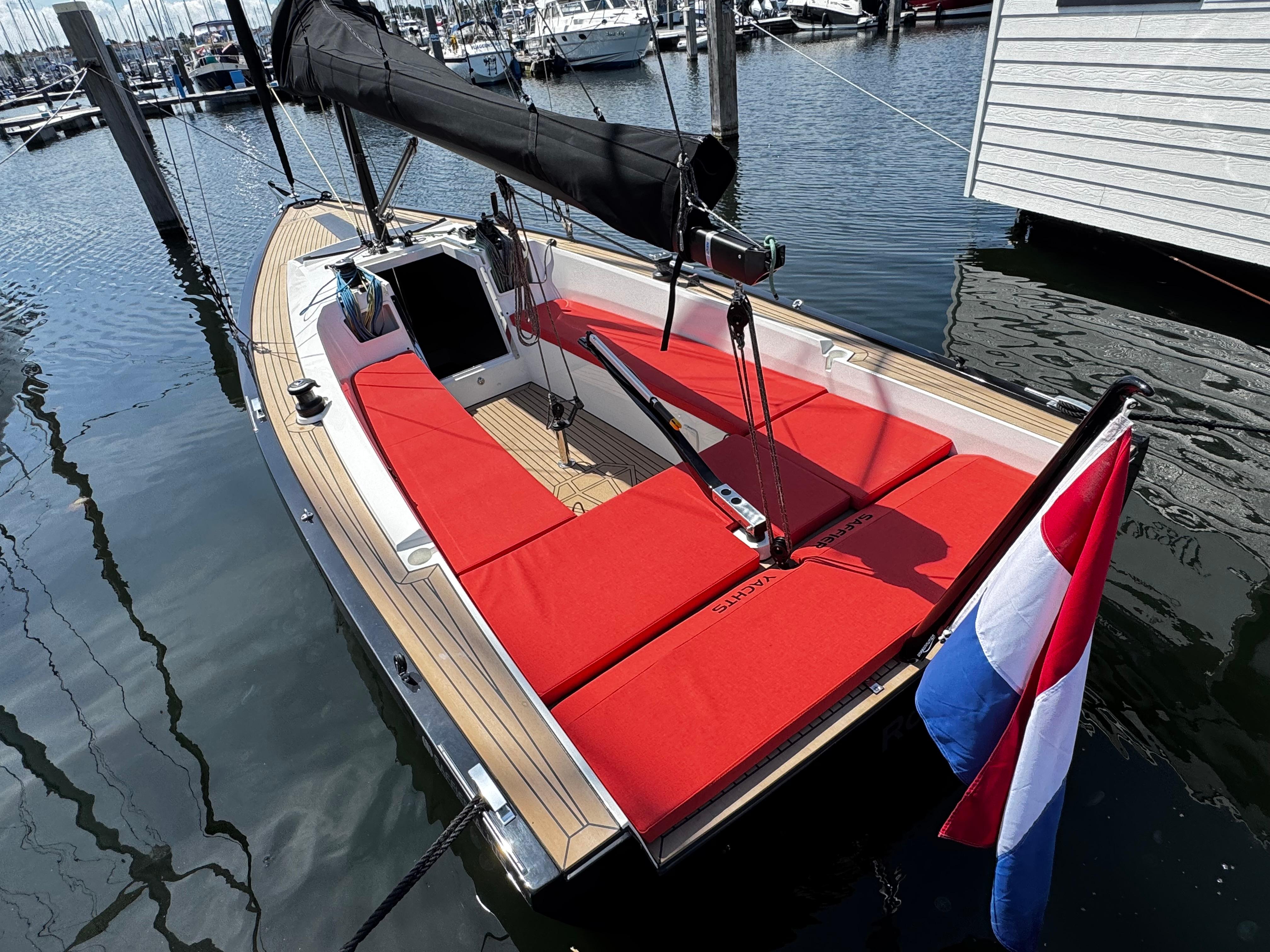 The Saffier SE 24 Lite sailboat features integrated solar panels and is truly self-supporting. To elaborate, the solar panels are custom-made and seamlessly integrated in the design of the foredeck of the SE 24 Lite. These custom solar panels generate enough power to constantly charge the Torqeedo 3.5 kW battery for electric propulsion any time, anywhere. Moreover, Instruments and lights can be removed from the daysailer and can be recharged in your car, back home or with a power bank. The Saffier SE 24 Lite can be sailed in complete silence, only hearing this 24-foot yacht slicing through the water. In other words, this daysailer is powered by nature.