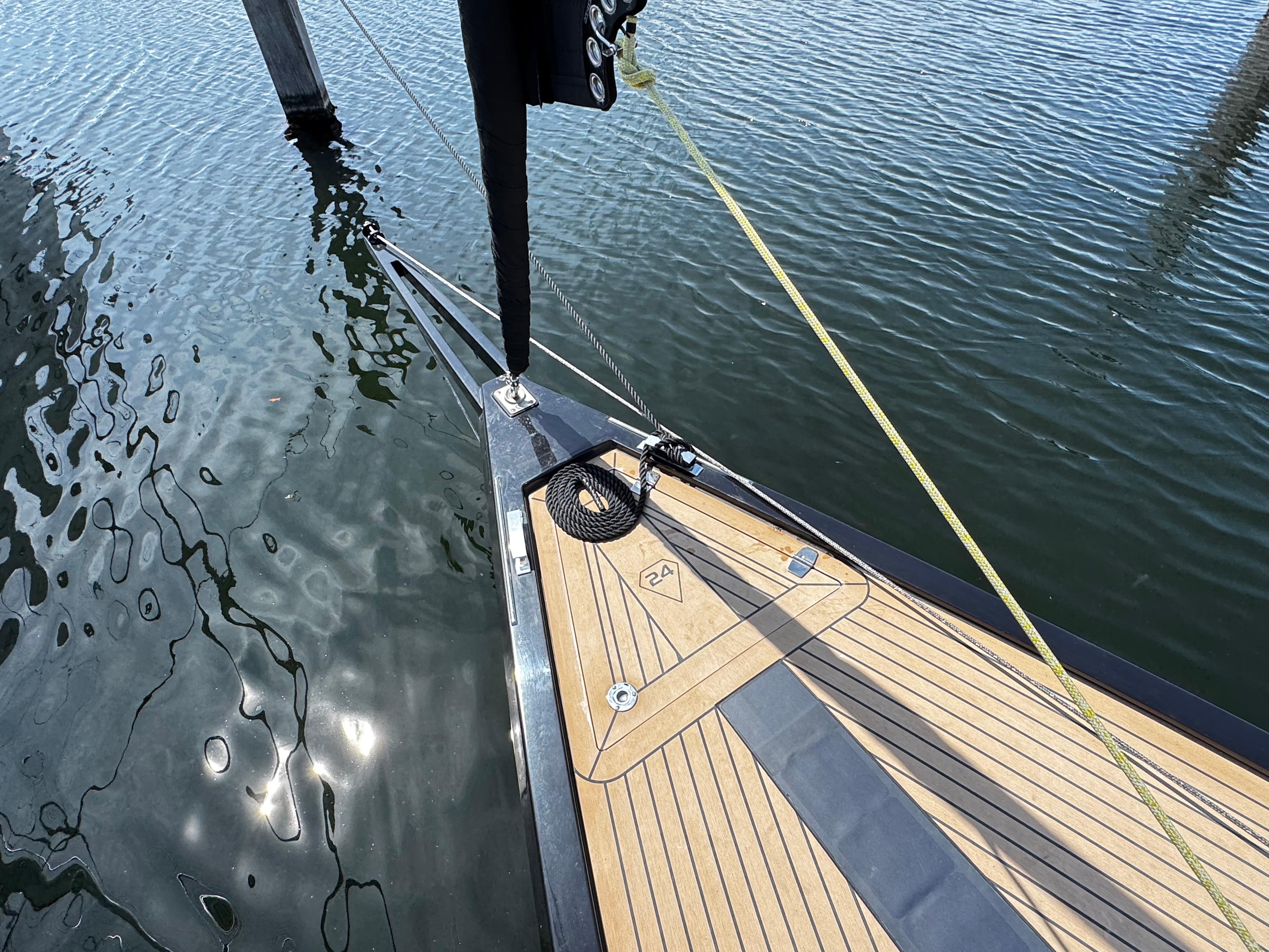 The Saffier SE 24 Lite has a reverse bow. This gives the 24-foot sailboat her modern and sharp look. This sailing yacht with her negative bow cuts through the waves like a knife.