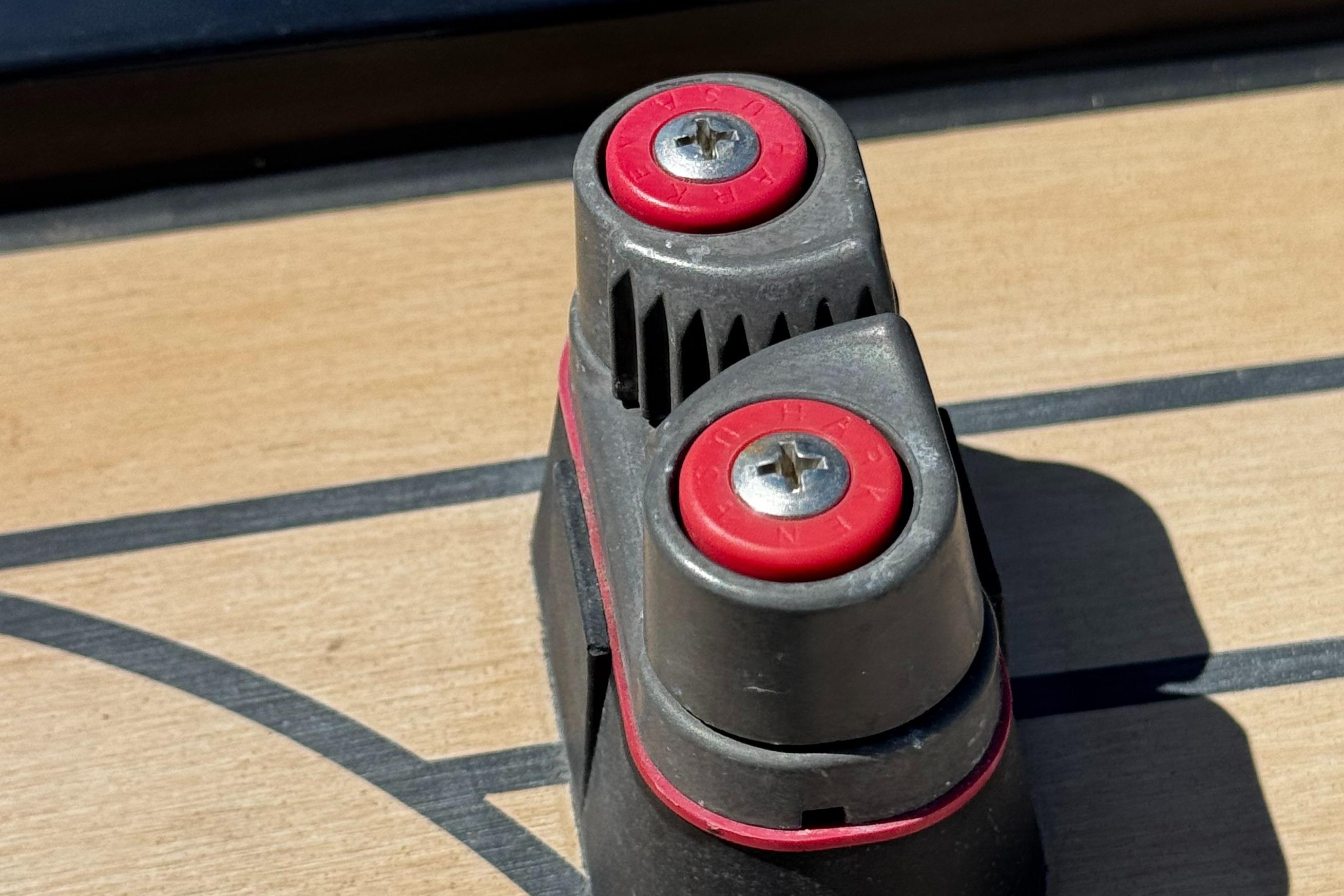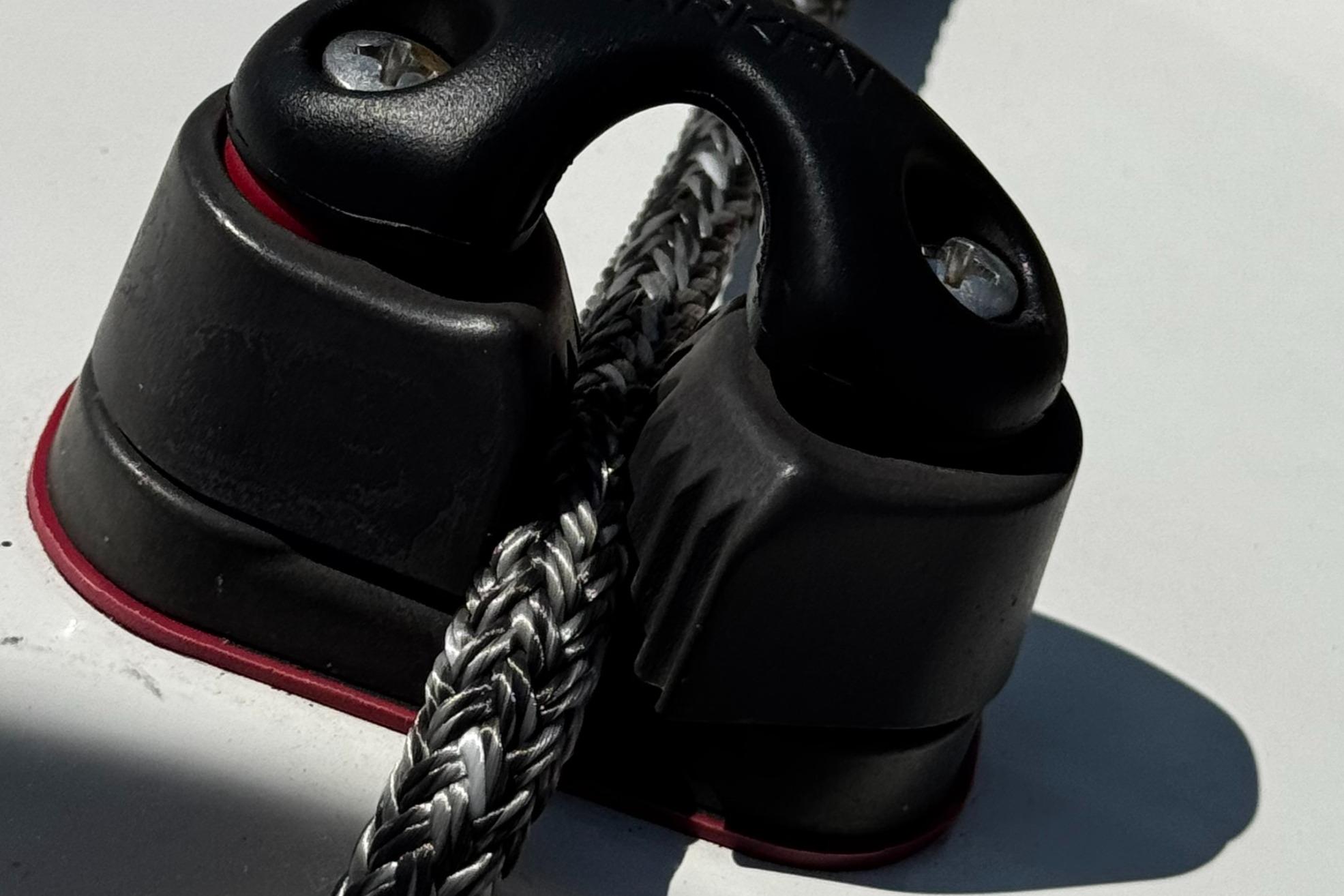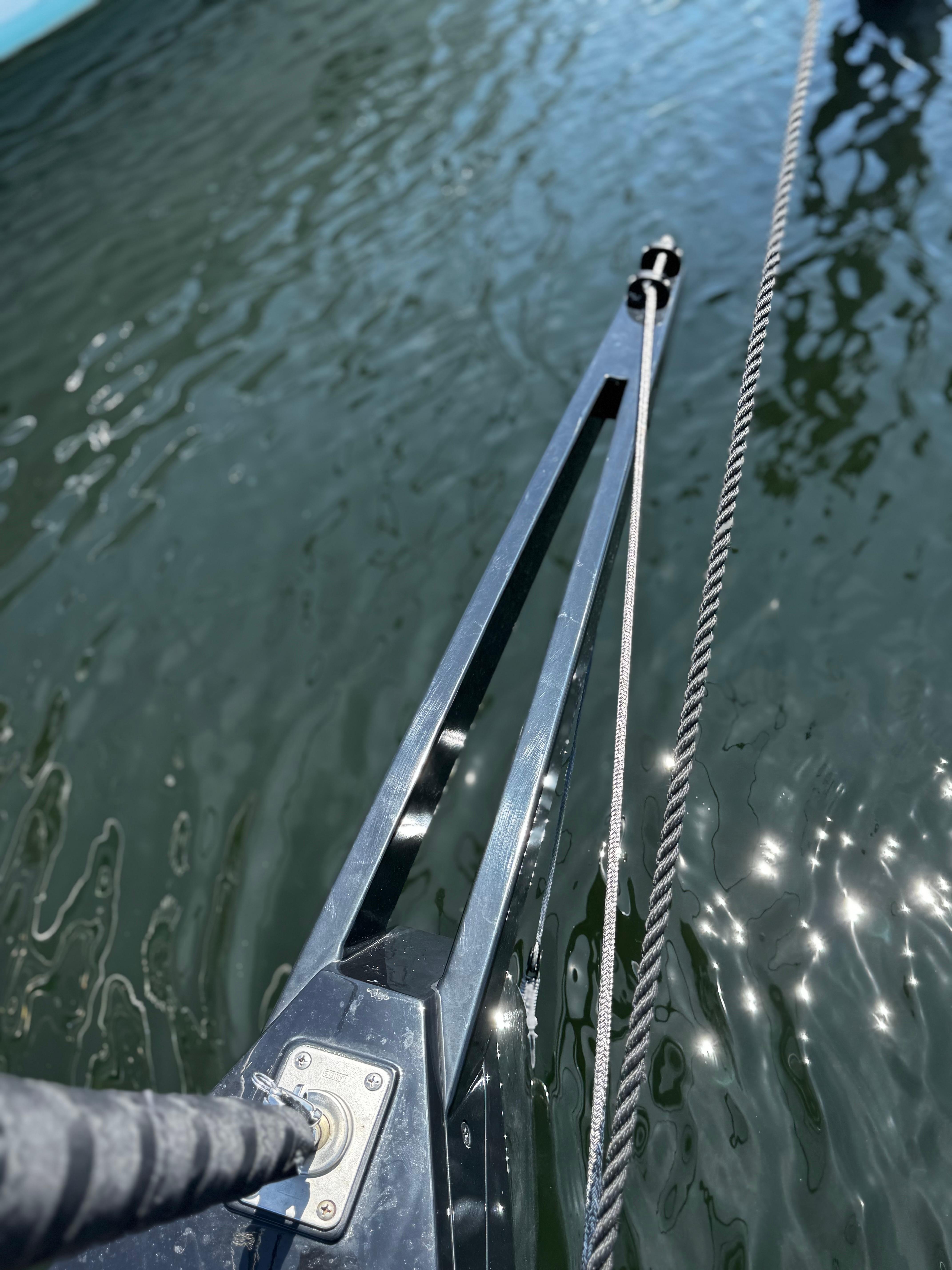 Black anodized aluminium bowsprit, 2x Harken self-tailing winch, all blocks and